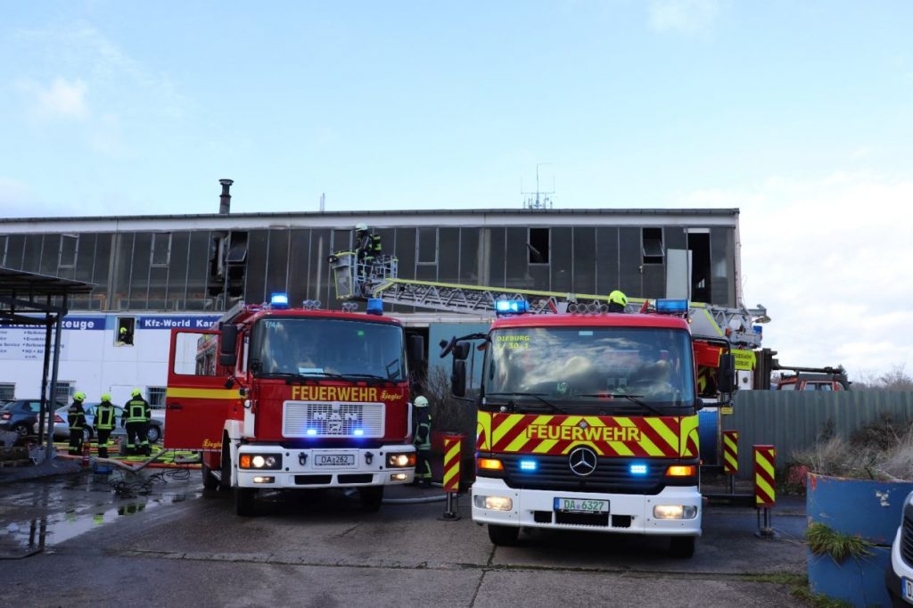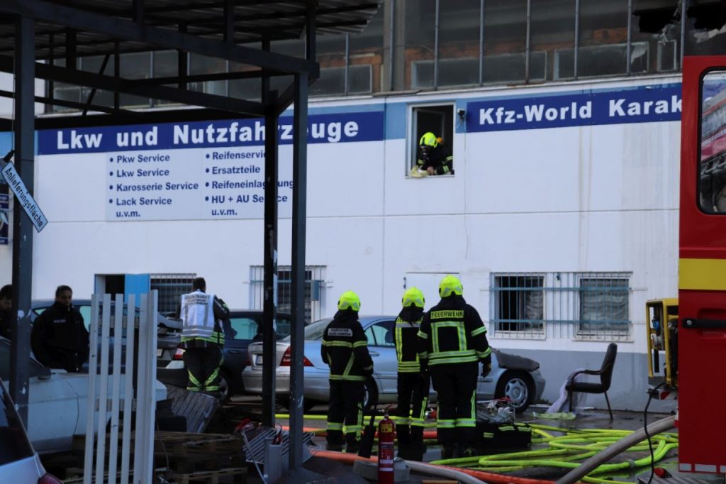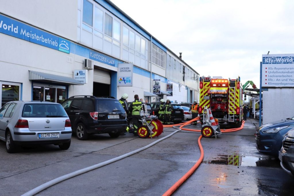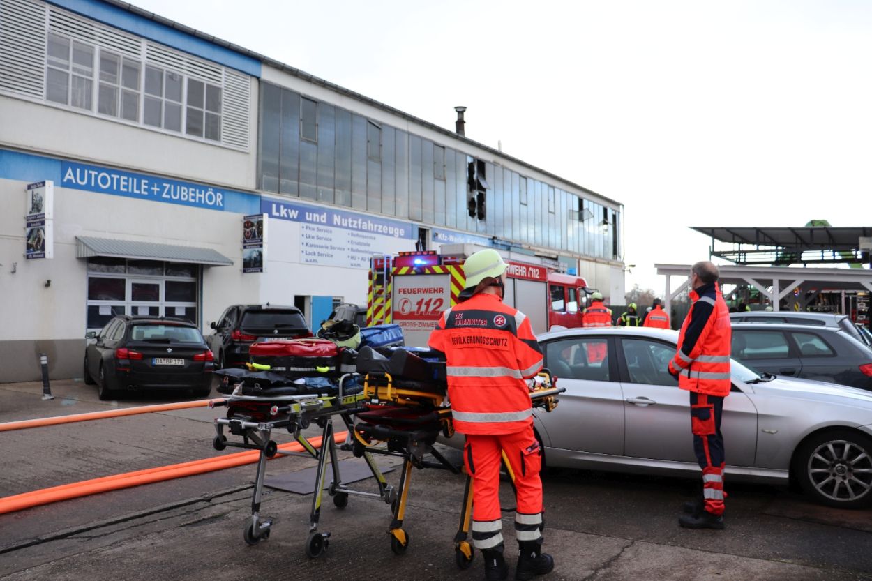 Groß-Zimmern – Am Mittwoch gegen 11:30 Uhr wurden die Einsatzkräfte der Feuerwehren Groß-Zimmern zu einem Brandmeldealarm in einer großen Kartbahn alarmiert. Während der Anfahrt wurde das Alarmstichwort auf Feuer mit Menschenleben in Gefahr erhöht. Vor Ort war die Kartbahn stark verraucht und wurde durch die Feuerwehr evakuiert. Im Laufe der Einsatzmaßnahmen stellte sich heraus, dass das Feuer in der nebenan liegenden KFZ-Werkstatt war. Woraufhin die Einsatzkräfte einen Löschangriff auf der anderen Gebäude Seite aufbauen mussten, so Pressesprecher Tobias Lang (Feuerwehr Groß-Zimmern).