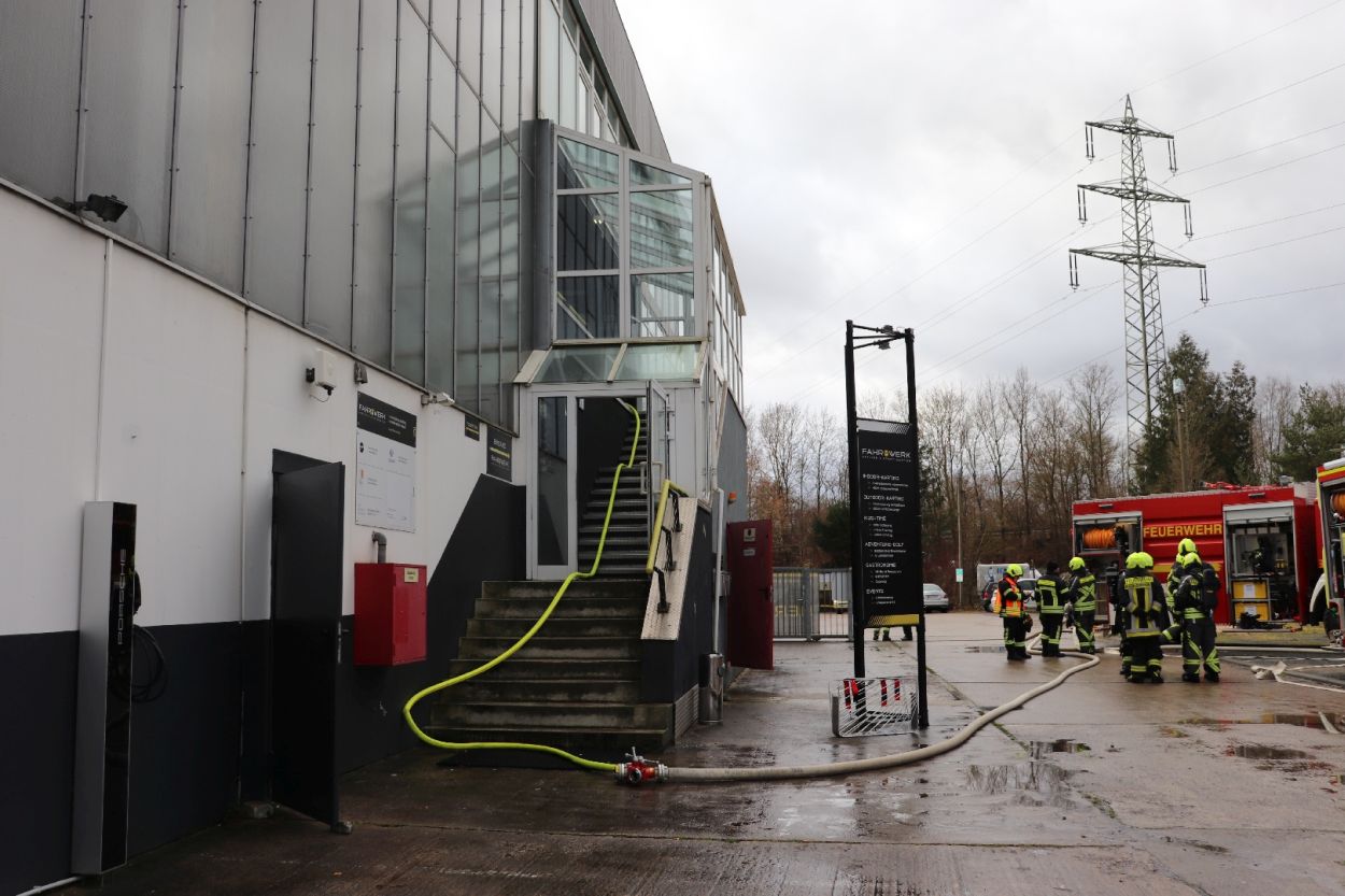 Brandmeldealarm auf Kartbahn führt Einsatzkräfte zum Werkstatt-Brand (VIDEO)