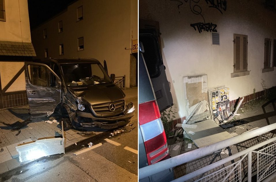 Offenbach – Am Montag kurz nach 23.30 Uhr, war einer Polizeistreife ein schwarzer Mercedes-Sprinter in Dreieich aufgefallen, der mit hoher Geschwindigkeit von der Hainer-Chaussee nach rechts auf die Darmstädter Straße einbog. Aufgrund dessen entschlossen sich die Beamten zu einer Verkehrskontrolle und gaben dem Fahrer des Wagens Anhaltezeichen, die er jedoch missachtete und stattdessen Gas gab. Er flüchtete über die Herrnröther Straße und bog in die Straße „Am Heckenborn“ ab. Dort folgte er der Straße bis zum Fußgängerverbindungsweg, welcher am „Spielplatz Schulstraße“ vorbei auf die Schulstraße führt. Auf dem Weg dahin überfuhr er zwei Begrenzungspfosten. Über die Christoph-Helwig-Straße fuhr der Transporter weiter auf den Lindenplatz, wo er etwa auf Höhe der Hausnummer 8 drei dort parkende Fahrzeuge beschädigte. Letztendlich versuchte er geradeaus über den Fußgängerweg neben dem Hengstbach zurück auf die Darmstädter Landstraße zu gelangen. Hierbei zerstörte er einen Stromkasten, beschädigte eine Hauswand sowie die dortige Fußgängerbrücke und kam schließlich kurz vor der Darmstädter Straße zum Stehen. Das Auto war reichlich demoliert, unter anderem war die Vorderachse gebrochen, ein Rad abgerissen und die Karosserie insgesamt schwer verzogen. An dem Sprinter mit FB-Kennzeichen, den drei weiteren angefahrenen Autos, den Begrenzungspfosten, dem Stromkasten und der Brücke (inklusive Geländer) entstand ein geschätzter Gesamtschaden von weit über 300.000 Euro. Auswirkungen hatte der kaputte Stromkasten auch für Anwohner, denn mehrere Haushalte waren erstmal ohne Strom.