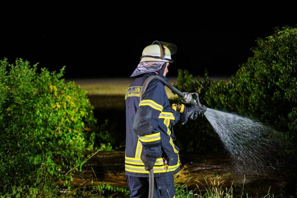 Weiterstadt – In der Nacht zum Donnerstag ist es in Weiterstadt zu einem Feuerwehreinsatz gekommen. Gegen 0:25 Uhr wurden die Feuerwehr Weiterstadt und die Polizei Südhessen in den Schleifweg alarmiert. Dort brannte auf einer Fläche von rund fünf bis zehn Quadratmetern gelagerter Grünschnitt zwischen den Feldern. Beim Eintreffen der Einsatzkräfte drohte das Feuer auf ein angrenzendes Feld überzugreifen. Durch das zügige und koordinierte Eingreifen von etwa 20 bis 25 Feuerwehrleuten konnte die Ausbreitung der Flammen verhindert und der Brand schnell unter Kontrolle gebracht werden. Personen kamen nach ersten Erkenntnissen nicht zu Schaden. Die Brandursache ist derzeit noch unklar.