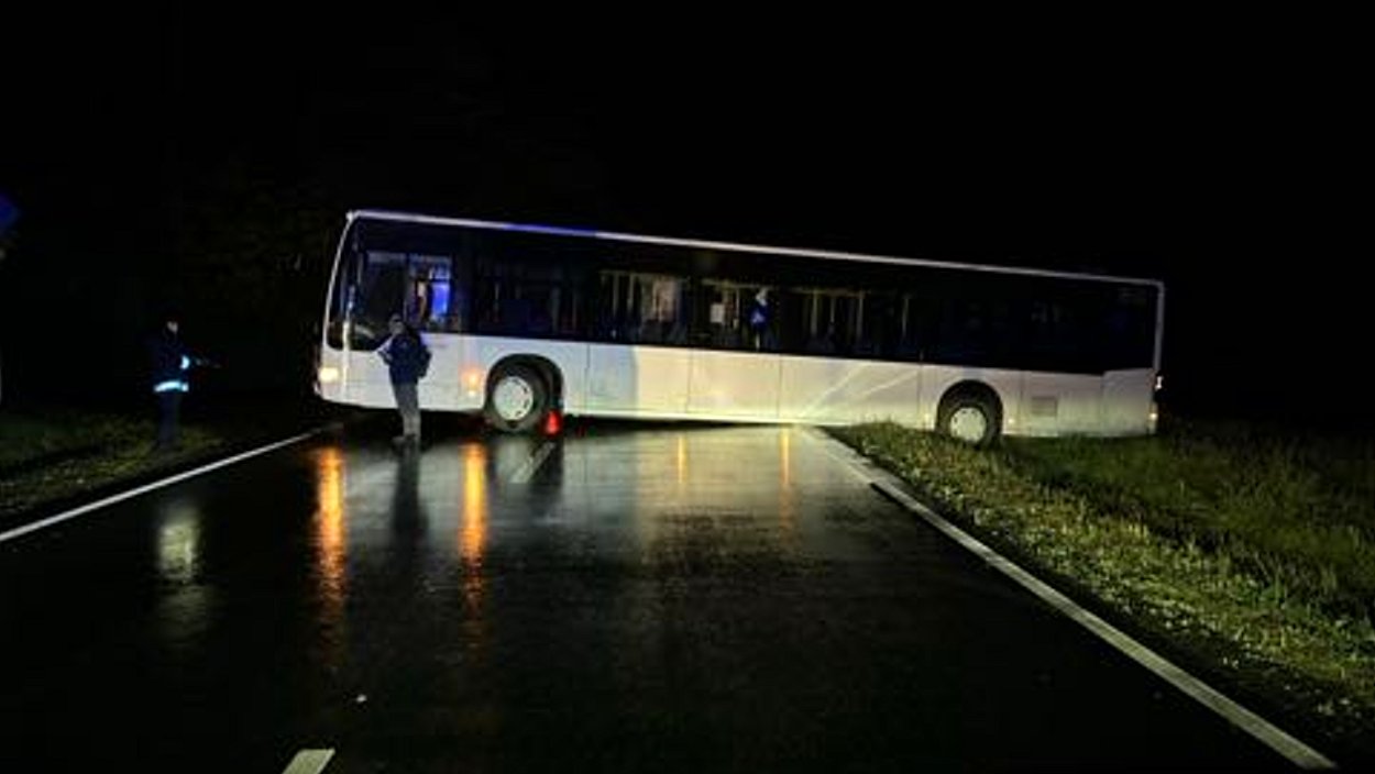 Ein Abschleppunternehmen musste schließlich einen Autokran einsetzen, um den Bus zu bergen. Die aufwendige Aktion dauerte bis etwa 3.30 Uhr an, sodass die Landesstraße rund sechs Stunden lang vollständig gesperrt blieb. Fahrgäste befanden sich zum Zeitpunkt des Vorfalls nicht im Bus, verletzt wurde niemand. Ob am Fahrzeug ein Schaden entstanden ist, wird derzeit geprüft.