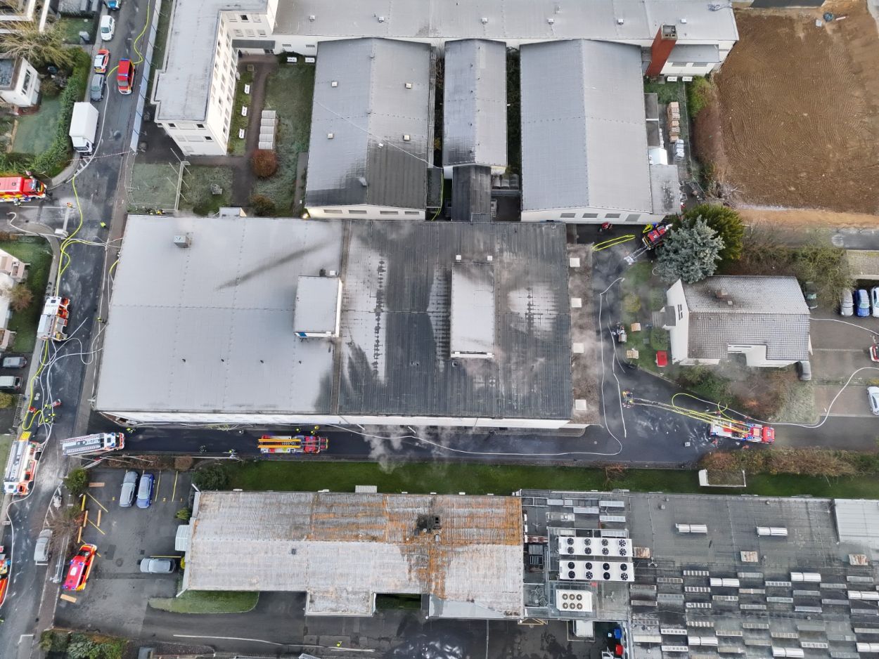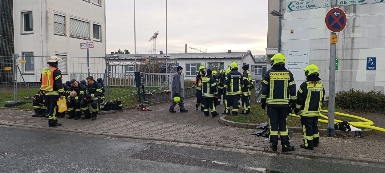 Hattersheim am Main – Nach dem ausgedehnten Brand in einem Gewerbeobjekt in der Schulstraße konnte der Einsatz der Feuerwehr am Dienstagnachmittag vollständig beendet werden. Das Feuer hatte in der Nacht um 01:34 Uhr mit der Auslösung der Brandmeldeanlage eines zweistöckigen Büro- und Lagergebäudes begonnen und sich schnell zu einem Großbrand entwickelt. Zeitweise waren rund 170 Einsatzkräfte aus Hattersheim, Okriftel, Eddersheim sowie zahlreiche überörtliche Feuerwehren und Hilfsorganisationen vor Ort.
