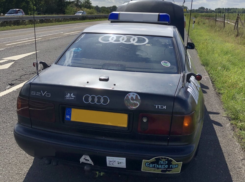 Dass es sich nicht um einen niederländischen Polizeiwagen samt Besatzung handelte, stellten die Polizeibeamten bei der anschließenden Kontrolle fest. Die beiden Männer im Alter von 53 und 24 Jahren gaben an „Bastler“ zu sein und dass es sich bei dem Audi A 8 um ein „Showfahrzeug“ handele. Die Benutzung des Blaulichtes und der Sirene diente nach Angaben der beiden Männer zur Bespaßung der anderen Verkehrsteilnehmer und nicht zum Zweck des schnelleren Vorwärtskommens. Dies änderte jedoch nichts daran, dass auf den Fahrer und den Beifahrer nun Strafverfahren wegen Nötigung im Straßenverkehr und Amtsanmaßung zukommen. Die Weiterfahrt wurde zunächst untersagt. Die wesentlichen Teile des Blaulichtes, die Steuerung, sowie die dafür vorgesehene Fernbedienung stellten die Beamten sicher. Auf der Dienststelle durchgeführte freiwillige Tests im Zusammenhang mit der Fahrtüchtigkeit fielen negativ aus. Nach den polizeilichen Maßnahmen wurden die beiden Männer, nachdem sie eine Sicherheitsleistung in Höhe von 700 Euro hinterlegt hatten, entlassen werden.