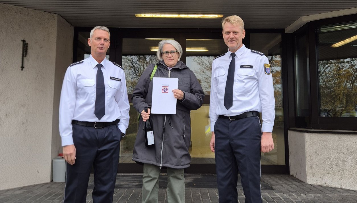Eltville – Für ihr vorbildliches und entschlossenes Handeln wurde am Freitag die Bankmitarbeiterin Anke Berlinger aus Eltville vom Leiter der Polizeistation Eltville, Volker Freiding, sowie dessen Stellvertreter Robert Krallmann ausgezeichnet. Durch ihr umsichtiges Eingreifen konnte sie verhindern, dass ein 85-jähriger Kunde Opfer eines dreisten Telefonbetrugs wurde.