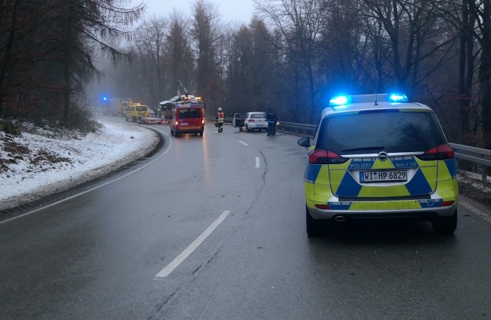 Wiesbaden – Vermutlich durch ein akutes Kreislaufversagen verlor der Fahrer eines Porsche SUV in der Burgstraße in Fahrtrichtung Wilhelmstraße die Kontrolle über sein Fahrzeug. Er kam von der Fahrbahn ab und prallte auf seiner Fahrbahnseite in mehrere parkende Fahrzeuge die teilweise auch auf den hinter der Parkfläche liegenden Gehweg geschoben wurden. Im weiteren Verlauf seiner Fahrt wechselte das Fahrzeug die Straßenseite und kollidierte dort mit einem Fahrzeug des Gegenverkehrs.