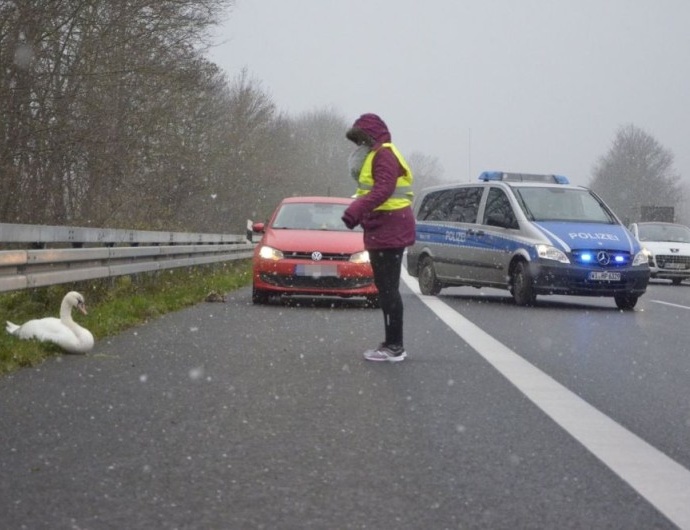 A49: Schwan machte auf Autobahn kurz Pause