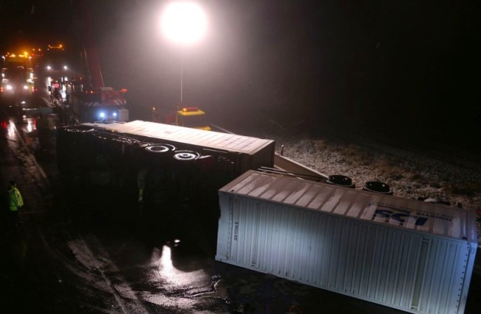 A7: LKW-Unfall – Feuerwehr befreit Fahrer und Beifahrer aus Führerhaus