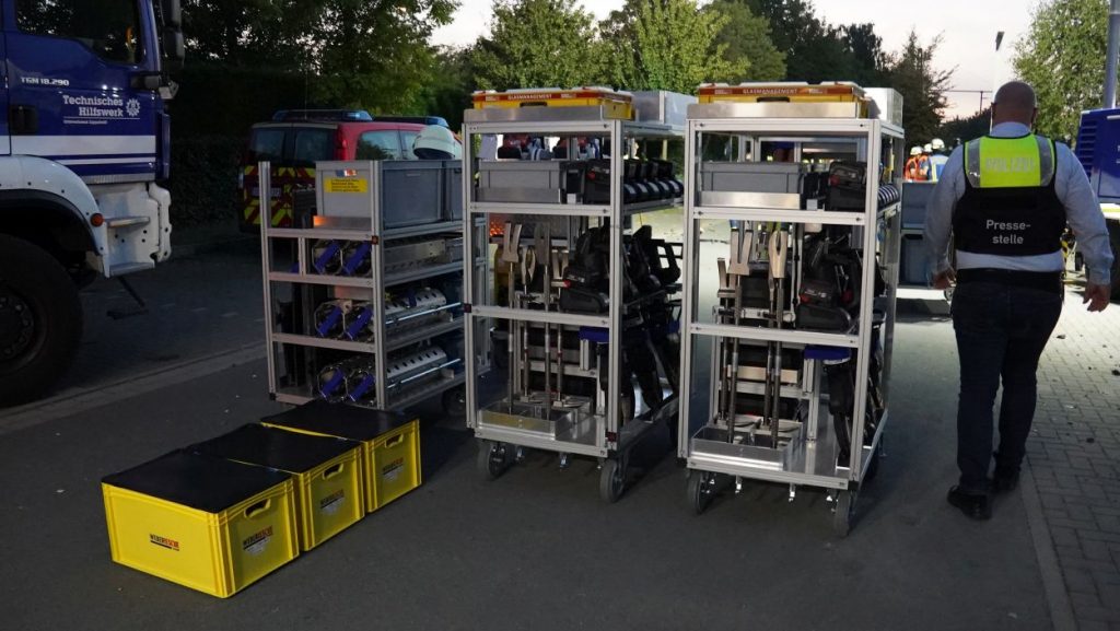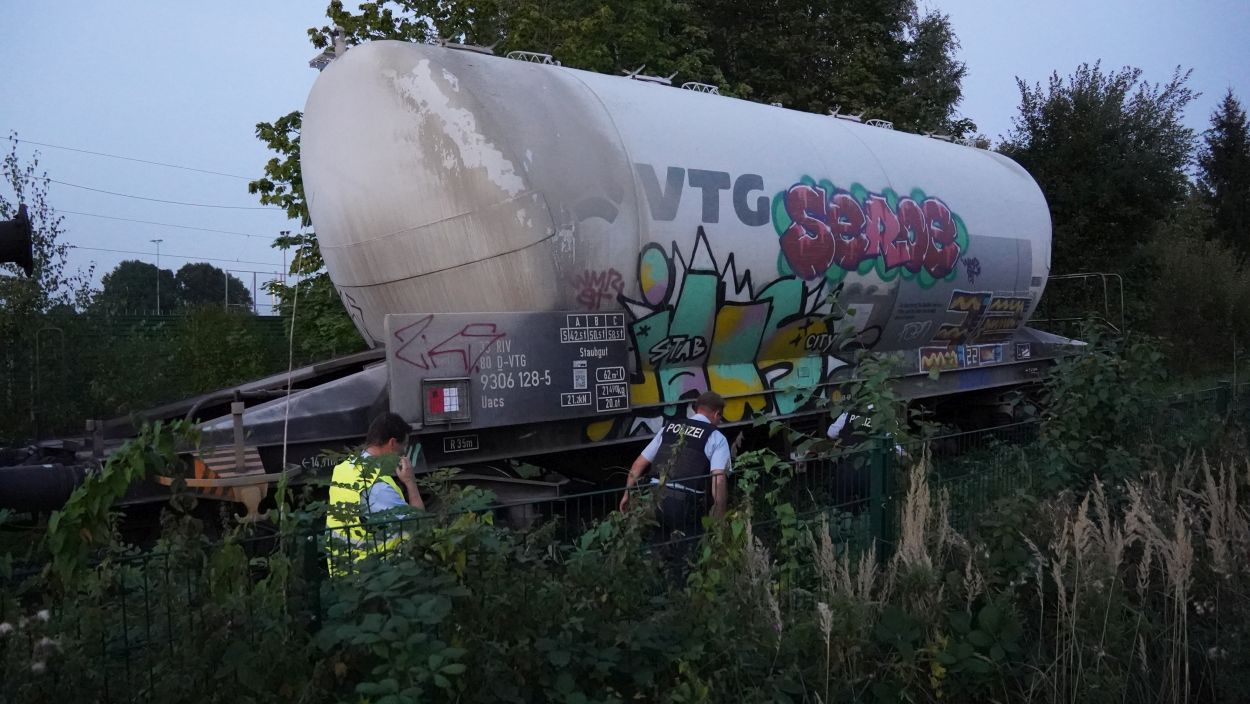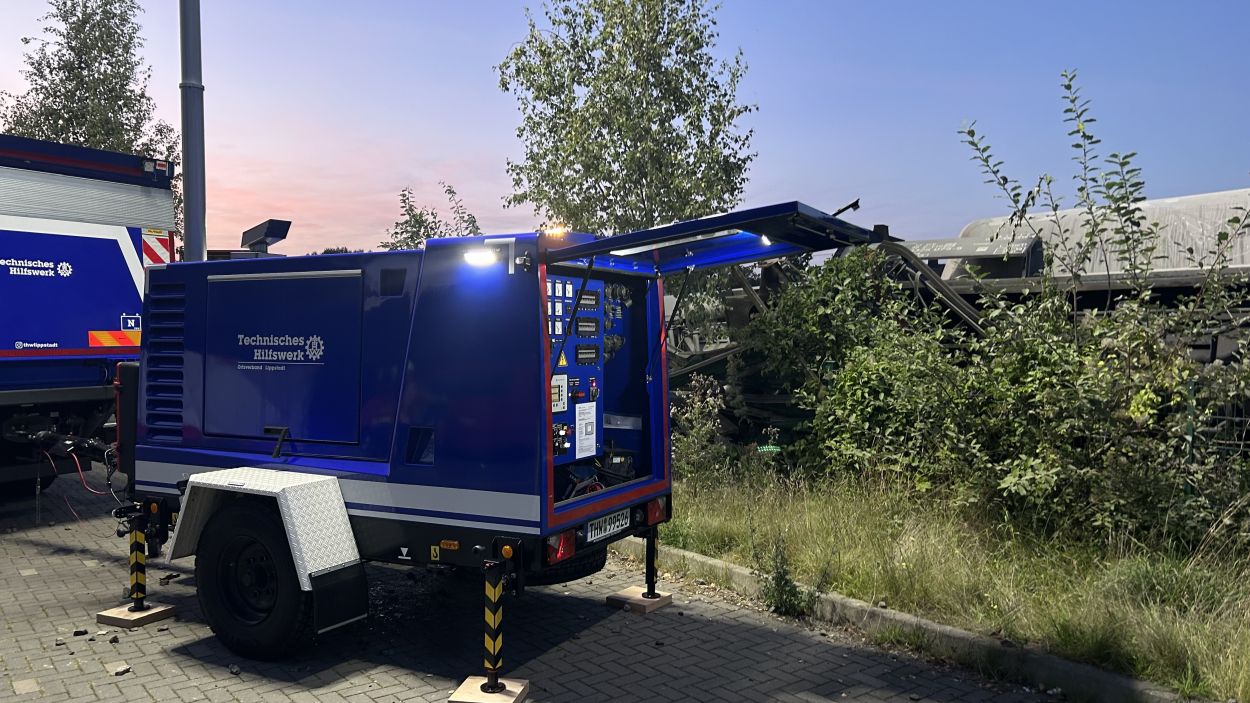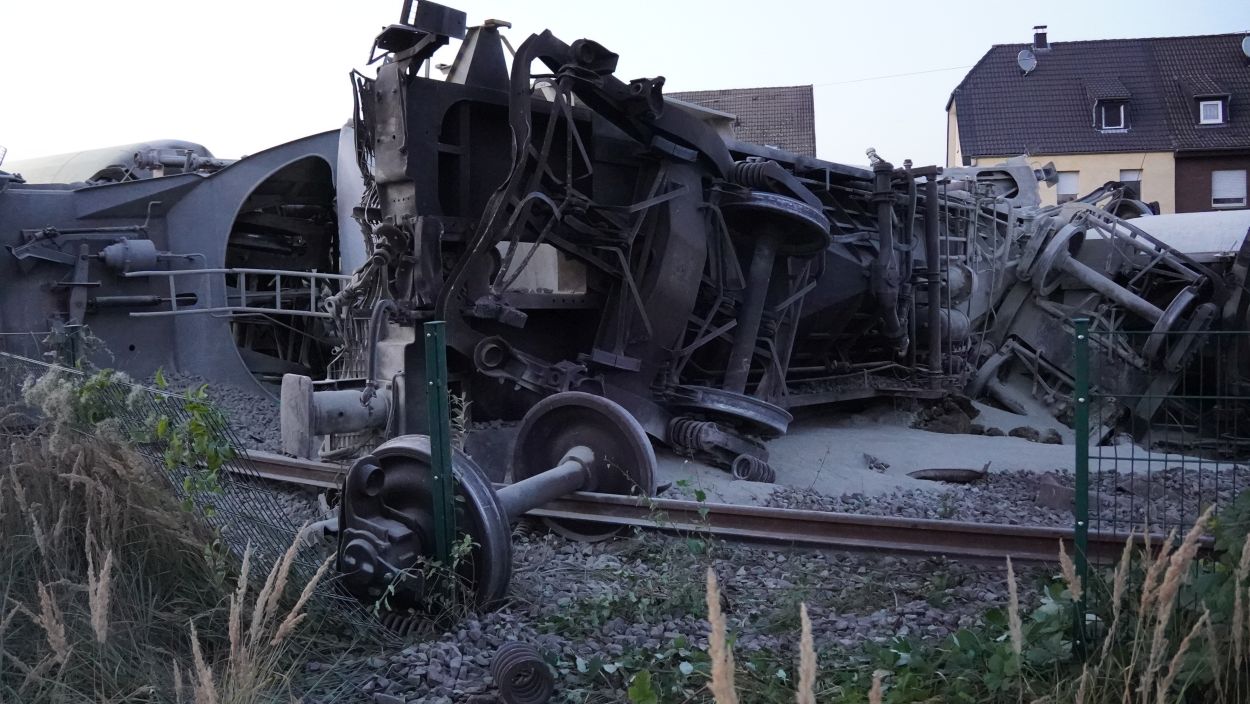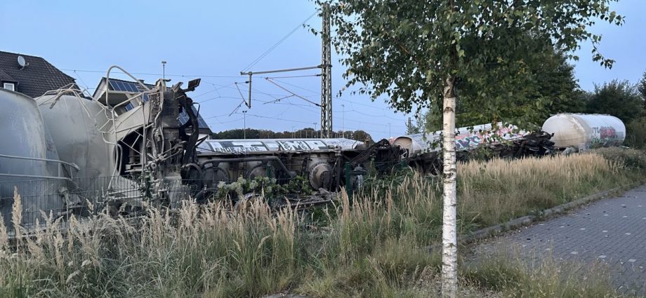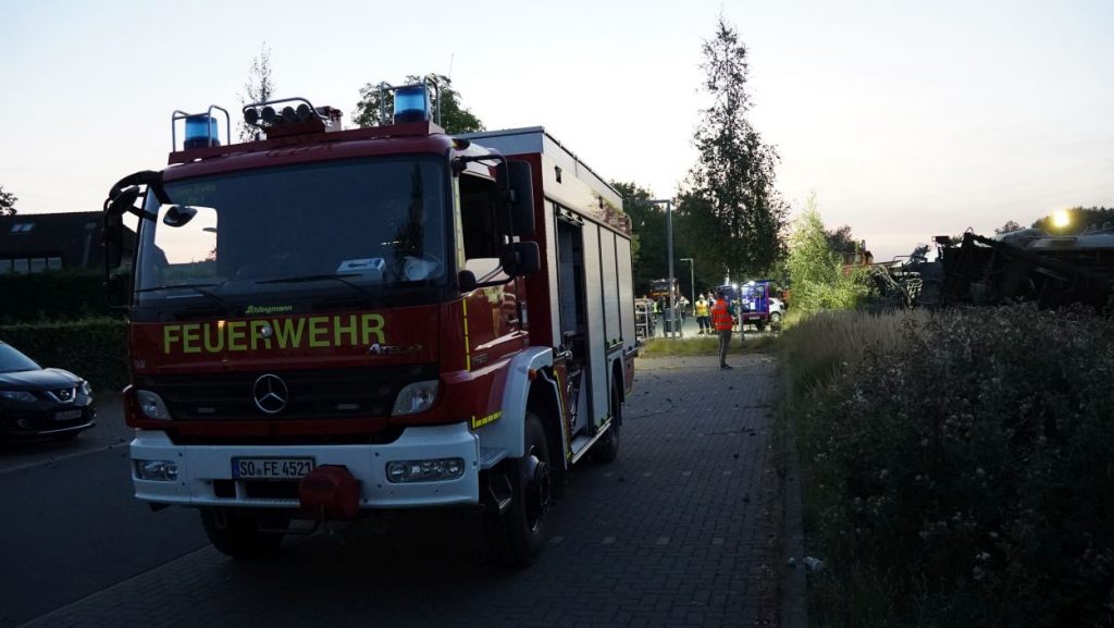 Soest (NRW) – Am Sonntag gegen 15:30 Uhr kam es in Geseke auf der Bahnstrecke zwischen Soest und Paderborn zur Entgleisung eines Güterzuges. Der Bereich ist weiträumig abgesperrt. Der Zug hatte Zement geladen und es besteht keine Gefahr für die Anwohner. Die Ursache der Entgleisung steht noch nicht fest. Eine Person ist bei dem Unfall ums Leben gekommen. Aktuell ist ein Großaufgebot an Einsatzkräften vor Ort und es wird mit Hochdruck ermittelt.
