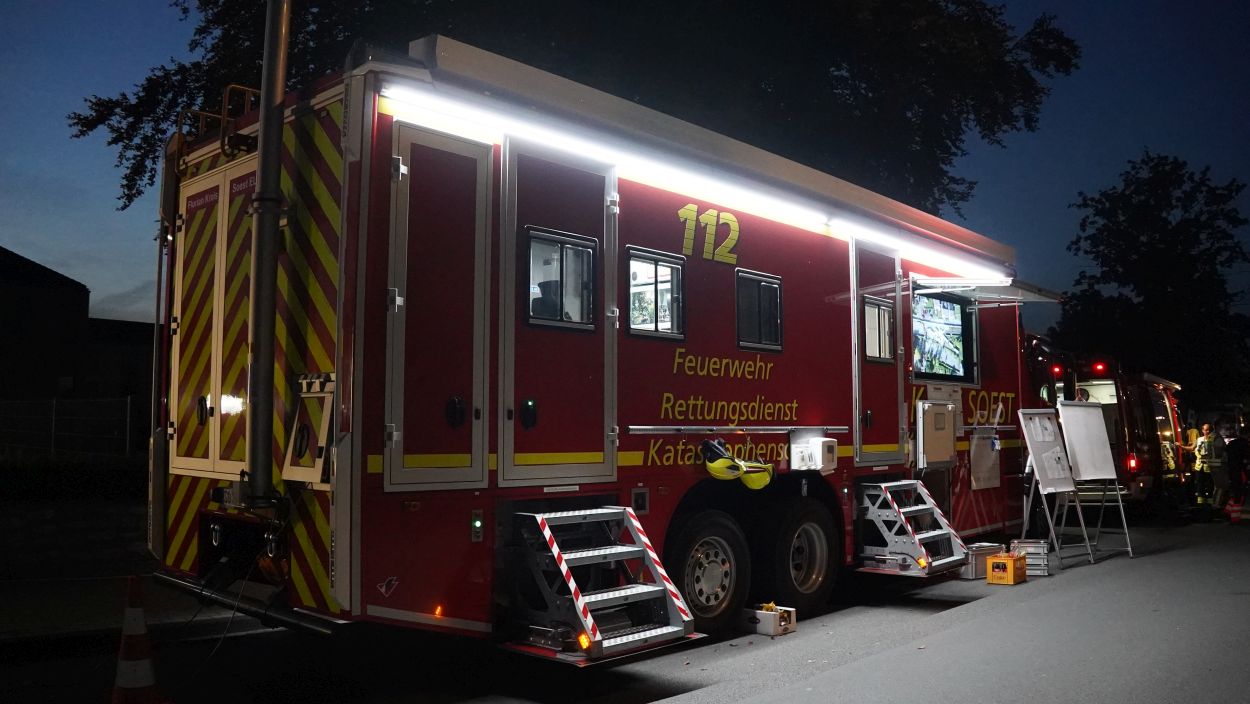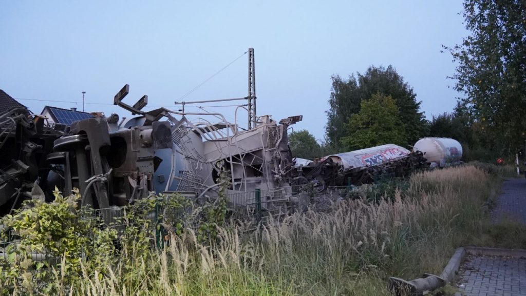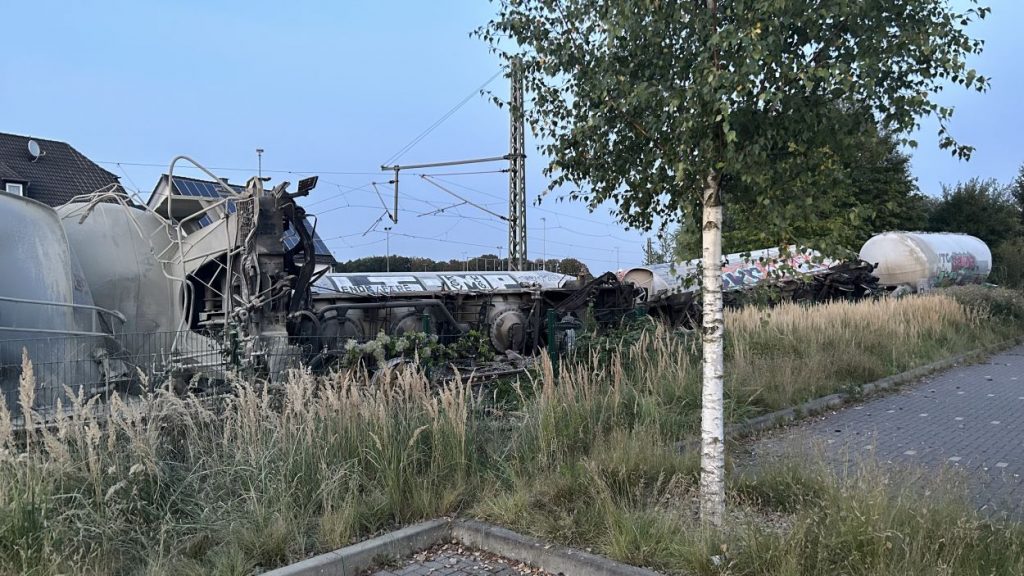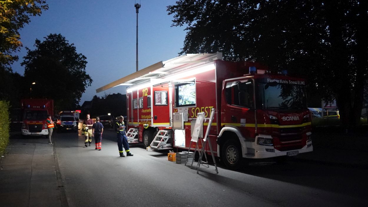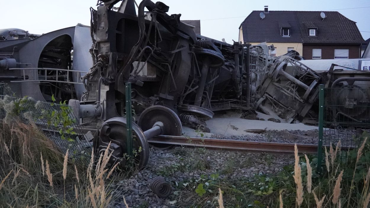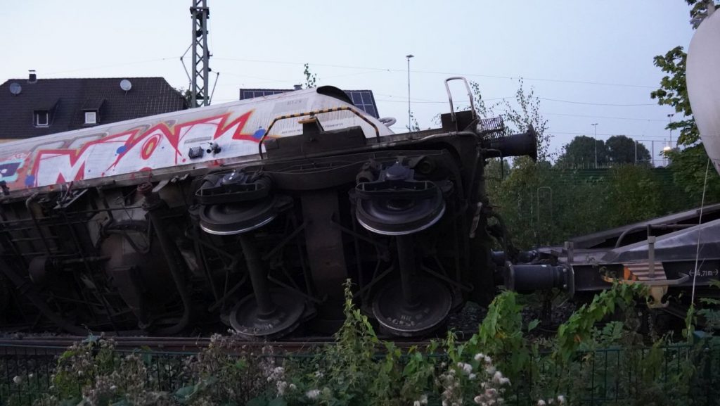 Soest (NRW) – Am Sonntag gegen 15:30 Uhr kam es in Geseke auf der Bahnstrecke zwischen Soest und Paderborn zur Entgleisung eines Güterzuges. Der Bereich ist weiträumig abgesperrt. Der Zug hatte Zement geladen und es besteht keine Gefahr für die Anwohner. Die Ursache der Entgleisung steht noch nicht fest. Eine Person ist bei dem Unfall ums Leben gekommen. Aktuell ist ein Großaufgebot an Einsatzkräften vor Ort und es wird mit Hochdruck ermittelt.