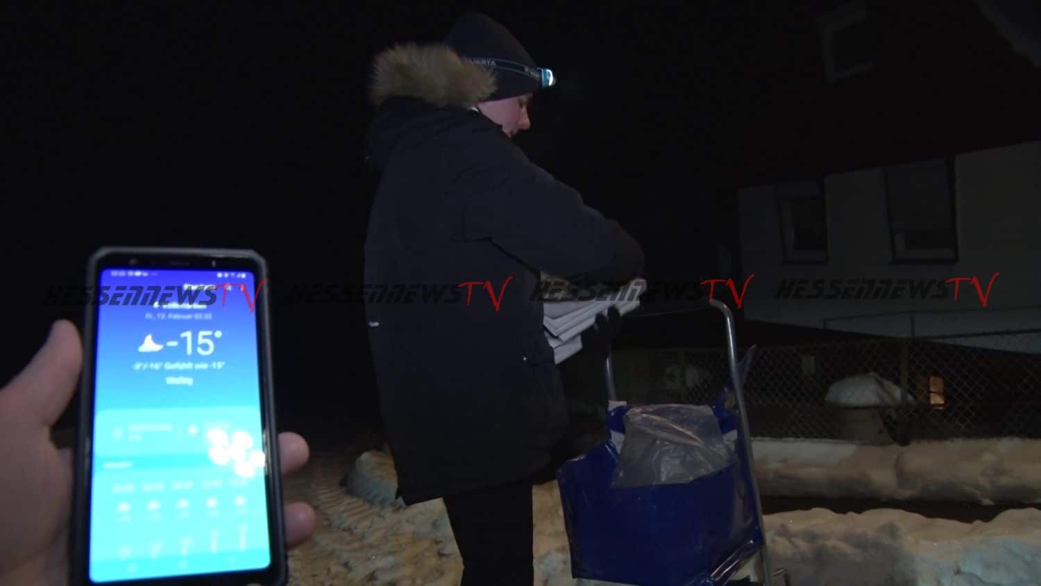 Nordhessen – Teilweise finden wir in Hessen Temperaturen bis -25C° was für viele Menschen schon ein wenig an die Grenzen dessen geht was man sich unter einem schönen Winter vorstellt. Weiße Landschaften und viel Schnee sind für den einen Leid für den anderen eher ein Spaßfaktor. Besonders für die Feuerwehr sind aktuelle Einsätze wie hier bei einem Brand in Kaufungen bei Kassel eine ganz besondere Herausforderung. Wasserleitungen frieren ein, die Wege sind glatt und zu dem regulären Einsatzgeschehen müssen noch die Straßen gestreut und teilweise geräumt werden. Während die meisten noch im Land der Träume sind, ist Adrian Spichal in Volkmarsen unterwegs die Zeitungen auszutragen. Für ihn ein alltägliches Geschäft. Nur einige Straßen weiter ist Frau Bernhard mit Ihrem Hund unterwegs. Während Mann und Sohn vollen Einsatz beim Räumen der Schneemassen zeigen, hat sich ergeben, dass sie heute wohl zuhause bleiben kann. Für Adrian Spichal geht es auch bei widrigen Umständen immer weiter, denn die Kunden wollen Ihre Zeitung möglichst pünktlich haben, was für ihn aber eine Selbstverständlichkeit ist. Und so geht es für alle immer weiter und weiter, ganz egal ob uns der Winter extremen Frost, Regen oder Sturm liefert, denn Brände müssen gelöscht, Straßen geräumt und Zeitungen ausgetragen werden.