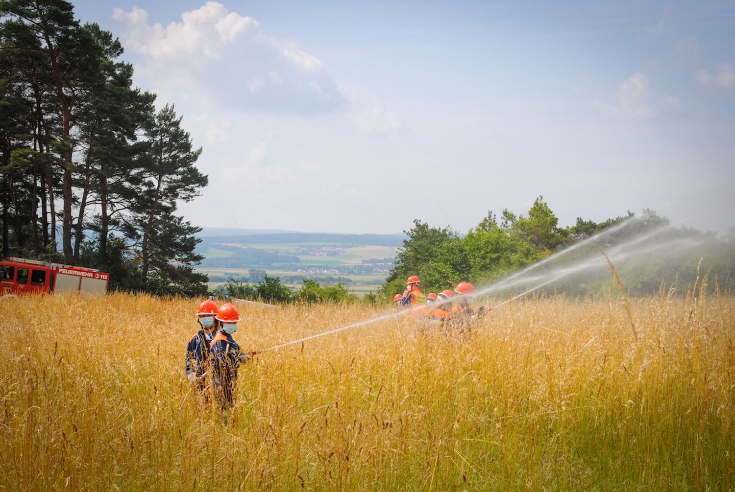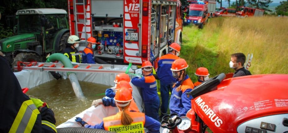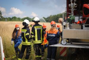 Volkmarsen – Am vergangenen Samstag fand eine große Waldbrandübung der Jugendfeuerwehren der Stadt Volkmarsen statt. Über 60 Nachwuchsbrandschützer und -brandschützerinnen eilten am frühen Samstagmorgen mit Blaulicht und Martinhorn auf den Iberg bei Hörle. Nachdem die ersten Fahrzeuge an der Einsatzstelle eintrafen, wurde umgehend der Löschangriff mit mehreren C-Strahlrohren und D-Strahlrohren aufgebaut. Nebenbei wurde die Wasserversorgung aufgebaut, welche durch 3 Trecker mit Güllerfässern im Pendelverkehr sichergestellt wurde. Als Zwischenpuffer wurde ein Abrollbehälter genutzt, aus dem das Löschwasser anschließend mit 2 Feuerlöschkreiselpumpen weiter gefördert wurde. Gegen Mittag wurde dann „Feuer aus“ und Übungsende gemeldet. Stadbrandinspektor Kai Wiebusch und sein Stellvertreter Andreas Wilke verschafften sich ebenfalls mit Bürgermeister Hartmut Linnekugel ein eigenes Bild von der Arbeit der Jugendfeuerwehren und waren stolz, wie reibungslos die Übung ablief und wie hervorragend die Zusammenarbeit unter den einzelnen Jugendfeuerwehren ist. Im Anschluss wurden die Fahrzeuge gereinigt und wieder mit neuem Schlauchmaterial bestückt. Außerdem gab es dann für die fleißigen Kinder und Jugendlichen eine Stärkung am Feuerwehrhaus in Hörle.