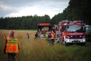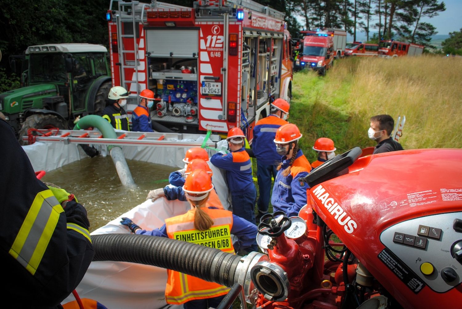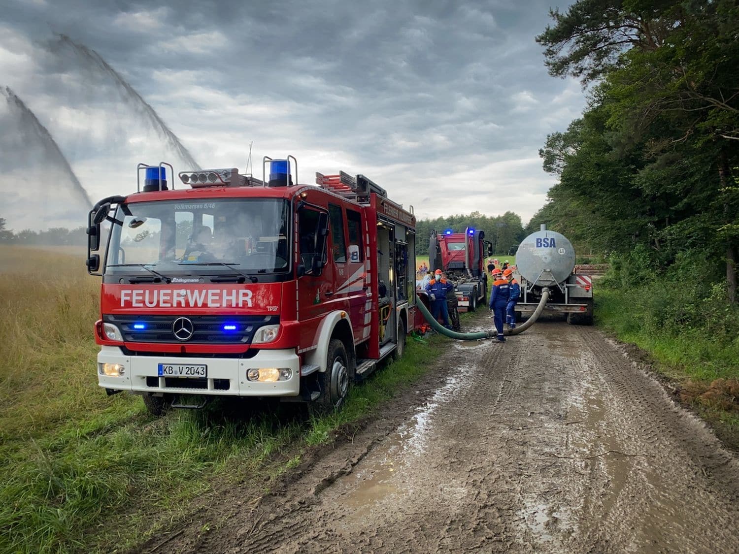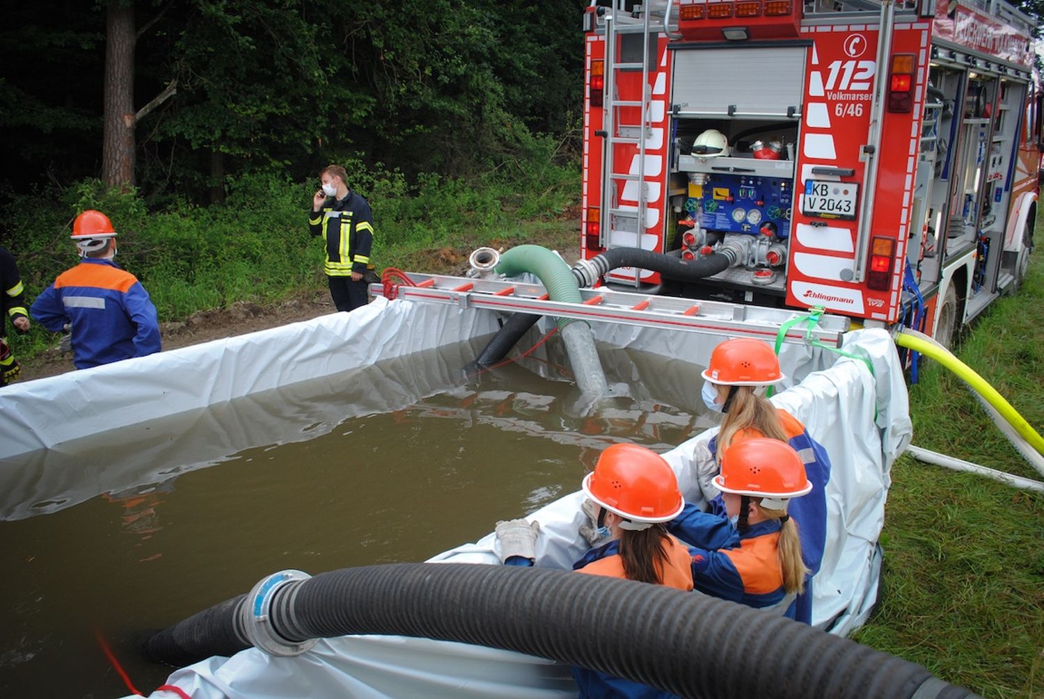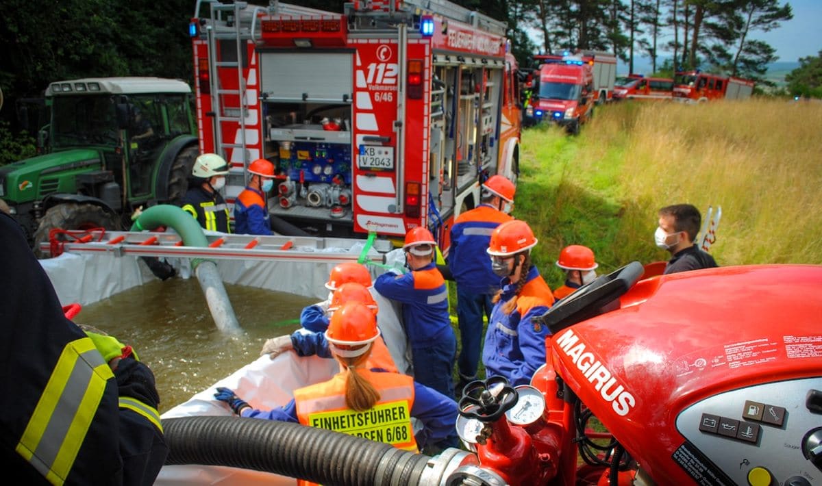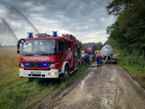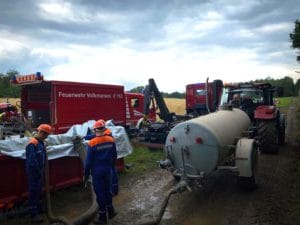 Auch die ortsansässigen Landwirte, haben mit ihren Treckern und Güllefässern die Übung unterstützt. Die Zusammenarbeit mit Landwirten ist wichtig, damit im Ernstfall alles reibungslos ablaufen kann.