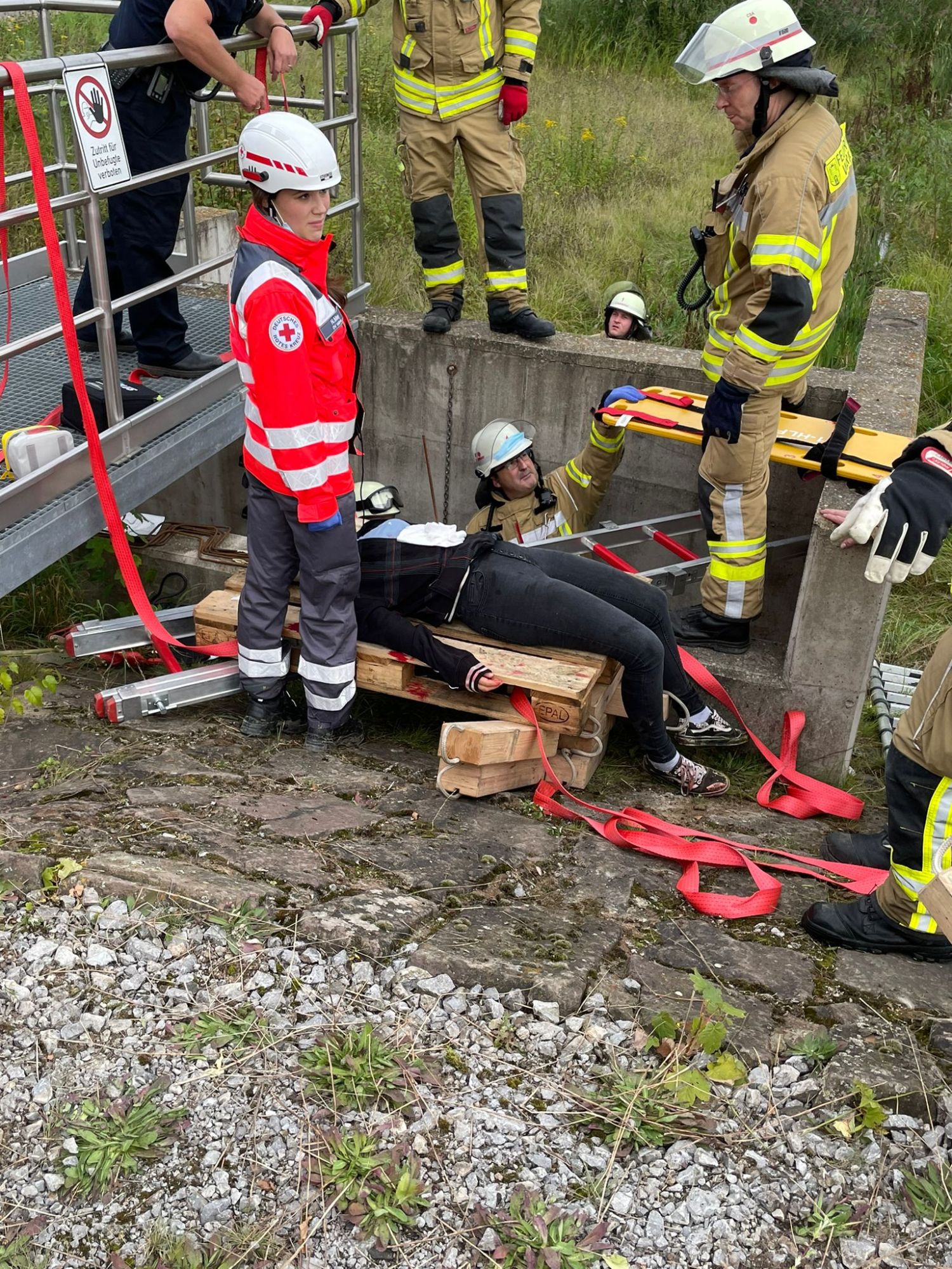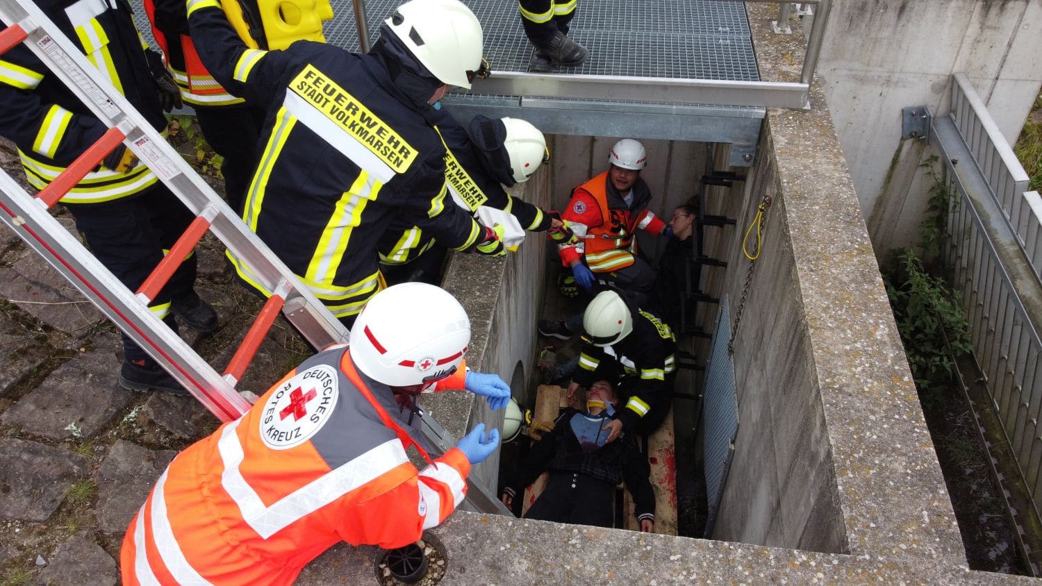 – Verletzte Person in Regenrückhaltebecken