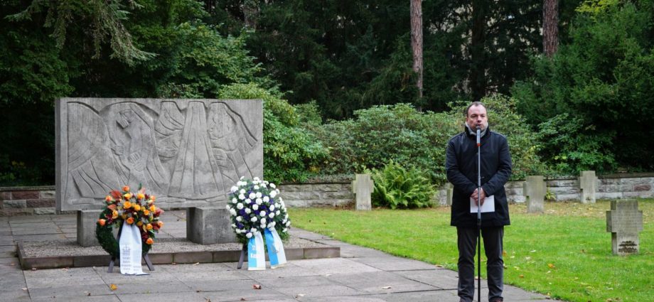 Kassel – In der Nacht des 22. Oktober 1943 hagelten über 400.000 Brandbomben auf Kassel nieder. Nahezu die gesamte Kasseler Innenstadt wurde bei dem verheerenden Luftangriff zerstört. Im Bombenhagel und dem anschließenden Feuersturm verloren rund 10.000 Kasseler Bürgerinnen und Bürger ihr Leben – in einem Krieg, der von Nazi-Deutschland begonnen wurde. Mit einer Kranzniederlegung am Ehrendenkmal auf dem Kasseler Hauptfriedhof wurden am Freitag der Opfer der Zerstörung Kassels vor 78 Jahren erinnert.