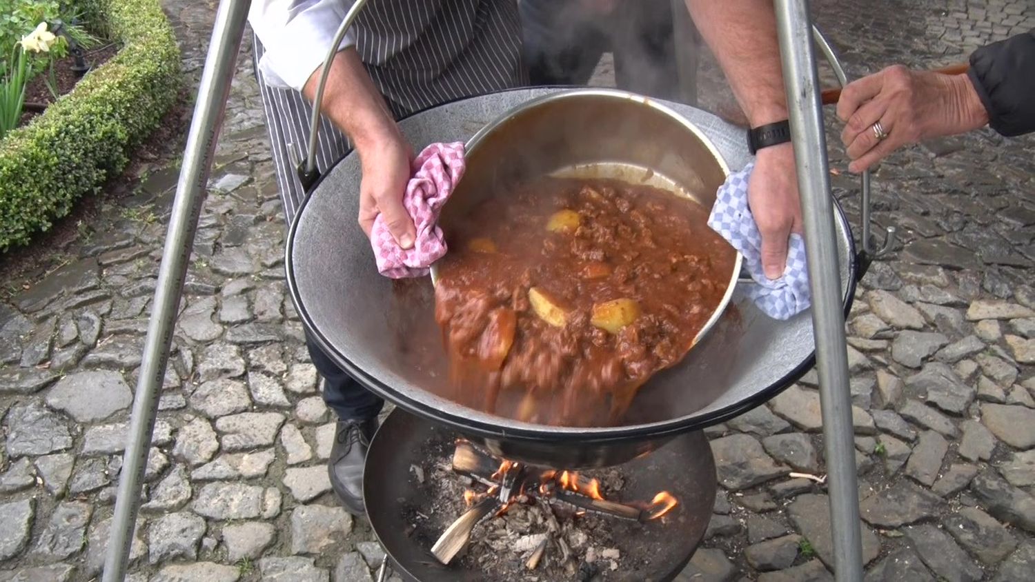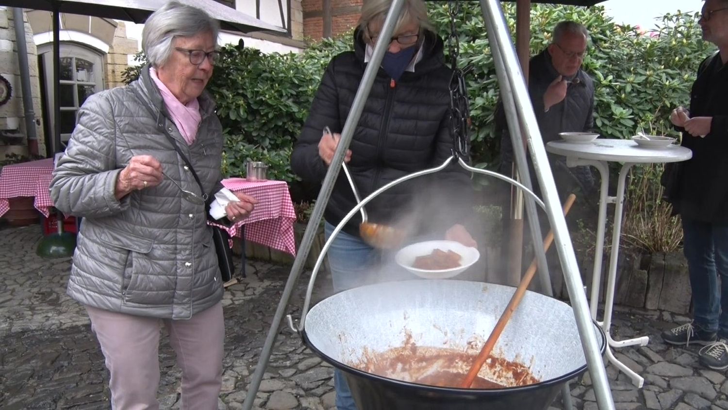 Felsberg – Eine leckere Suppe essen und dabei noch was Gutes tun? Das geht heute 30. April und morgen 1. Mai im Rosenhof in Felsberg-Hesserode. Küchenchefin Hannelore Meyer-Stahl hat 400 Portionen Gulasch vorbereitet. Auch für die, die kein Fleisch mögen, gibt es Kartoffelsuppe. Über offenem Feuer wird das Kesselgulasch geschmort. Das Besondere an dem Kesselgulasch ist, dass die Kartoffeln gleich mit gekocht werden und damit ihre Stärke an die Suppe weiter gibt. Der gesamte Erlös geht an die Ukraine-Flüchtlinge, die in den Schwalm-Eder angekommen sind. Eine Portion Kesselgulasch kostet 9 Euro und eine Portion Kartoffelsuppe 7 Euro.