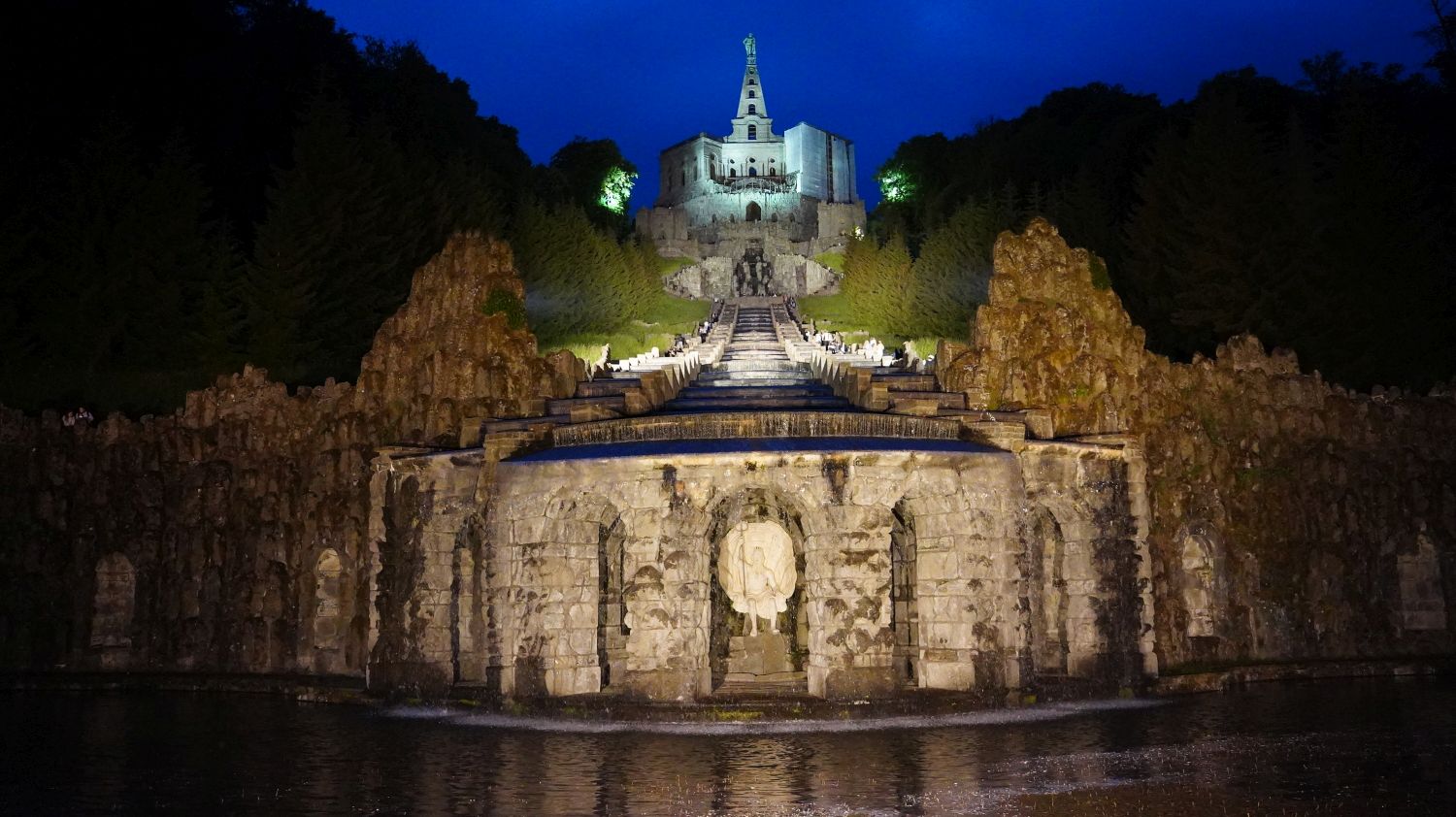 Kassel – Nach zwei Jahren Corona-Pause sind die beleuchteten Wasserspiele seit Samstag zurück im Bergpark Wilhelmshöhe. Auch am Samstag (Heute, 04.06) Werden die Wasserspiele ab 21.45 Uhr wieder beleuchtet werden. Ein Vorgeschmack auf das BergparkLeuchten vom 29. September bis 1. Oktober 2022. Ende September verwandelt sich Europas größter Bergpark dann zum ersten Mal für drei Tage in eine illuminierte Traumlandschaft mit faszinierenden Lichtkunstinstallationen und Videoprojektionen.