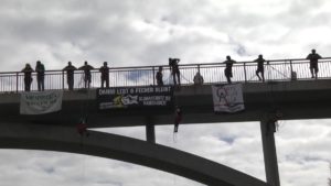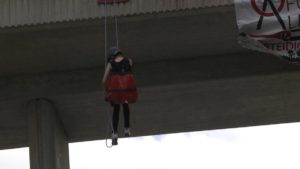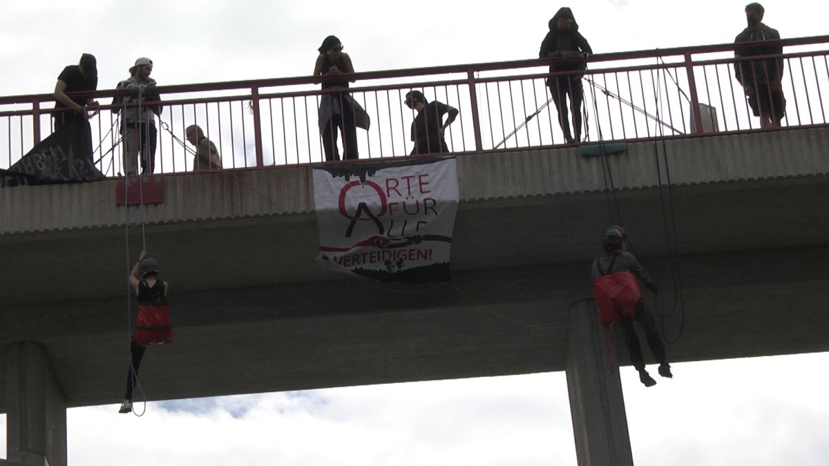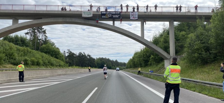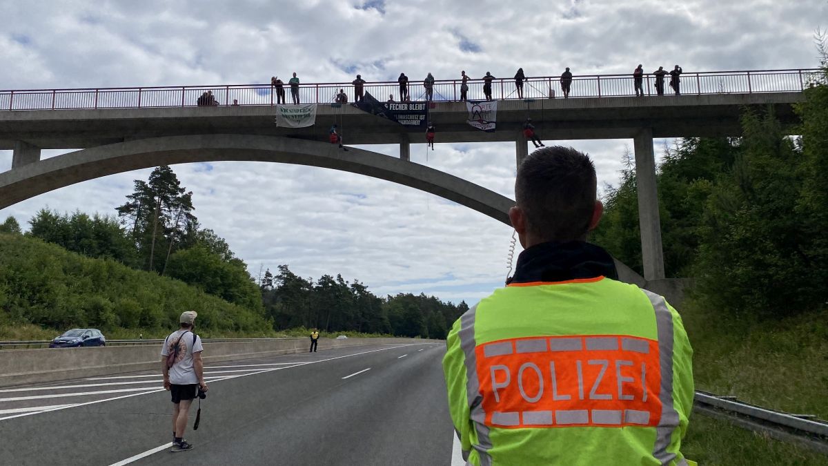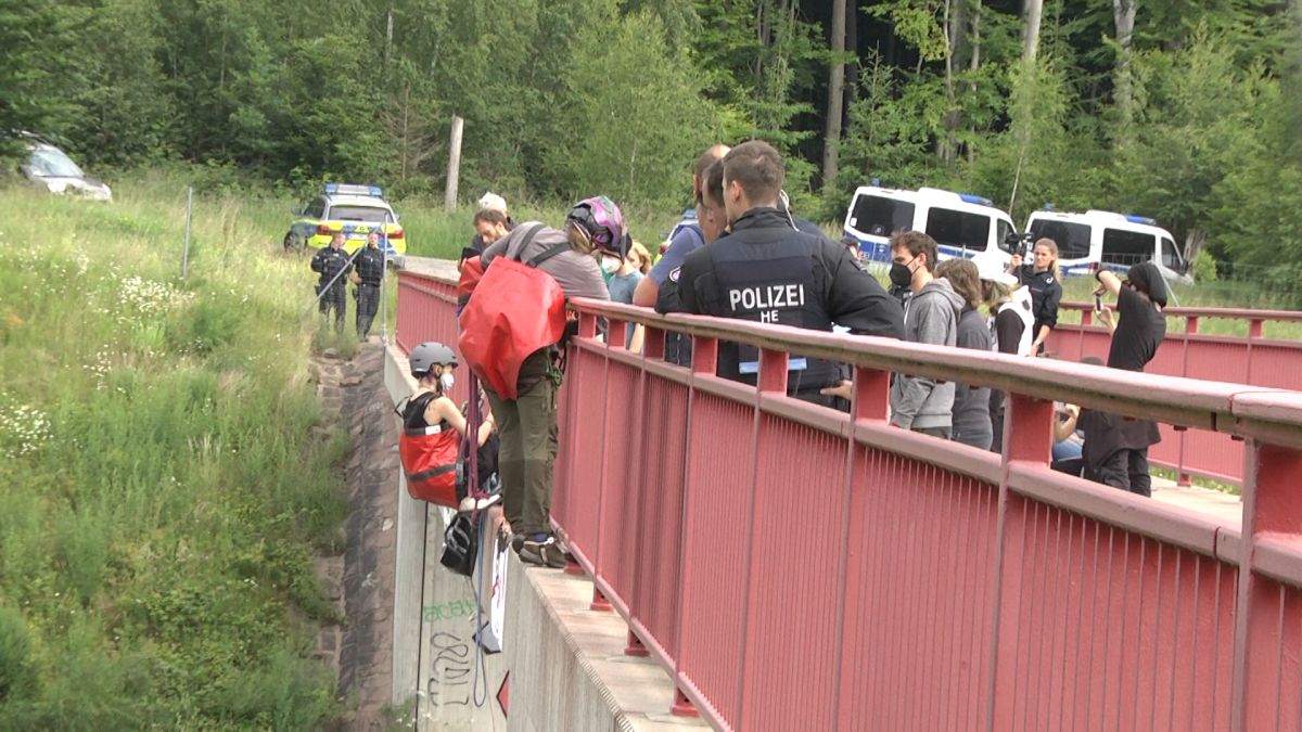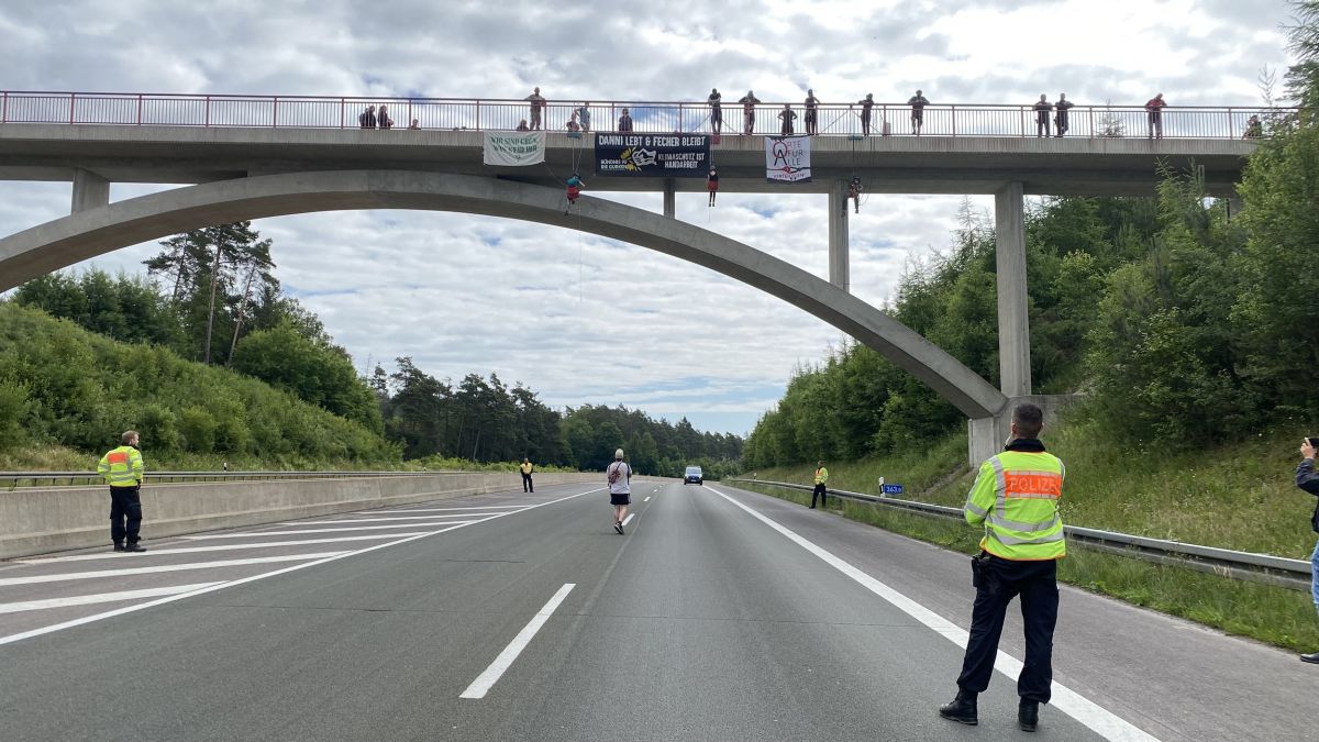 Kirchheim – Am Samstagmorgen wurde die A4 zwischen Kirchheim und Bad Hersfeld in Fahrtrichtung Osten wegen einer angemeldeten Aktion von Umweltaktivisten von 9.30 Uhr bis 10.30 Uhr voll gesperrt. Die Aktivisten wollten mit ihrer Abseilaktion von einer Autobahnbrücke westlich der Auerhahnkuppe unter Anderem gegen die Grünen und ihre Verkehrspolitik durch den hessischen Verkehrsminister Al-Wazier demonstrieren. Anlass ist die Landesmitgliederversammlung der Grünen, die derzeit in der Bad Hersfelder Schildehalle stattfindet. Polizeikräfte im mittleren zweistelligen Bereich und ein Polizeihubschrauber sicherten die gesamte Aktion ab. Die Aktion war mit Auflagen der Behörden verbunden.