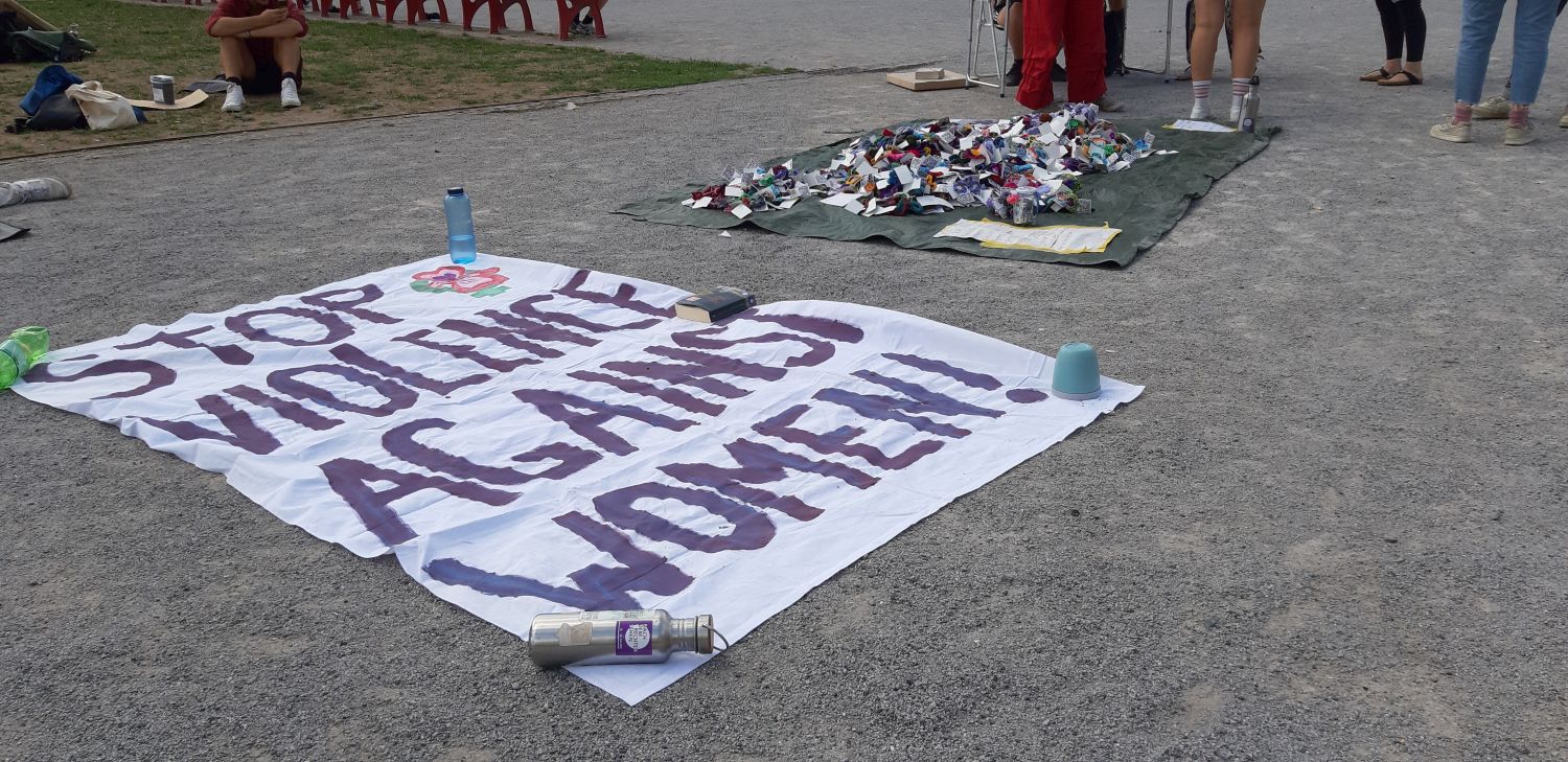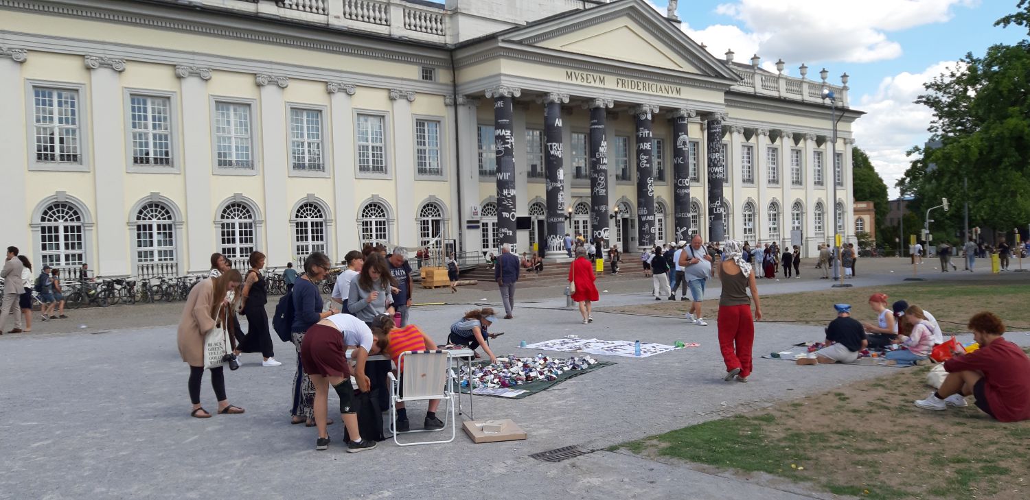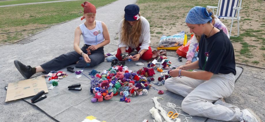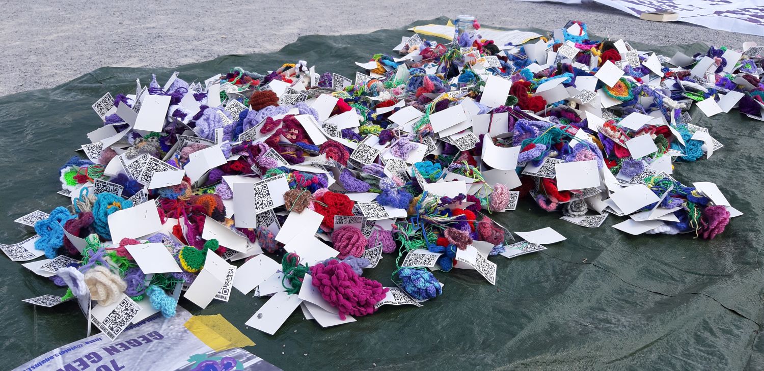 Hintergrund: Ziel der Initiative „Violets.Against.Violence“ ist es, 7.000 Blumen zu häkeln und diese noch während der documenta fifteen in Kassel aufzuhängen. Die Aktion ist angelehnt an Joseph Beuys „7.000 Eichen“, die das Stadtbild prägten. Die Initiative will Aufmerksamkeit auf das Thema „Gewalt gegen Frauen“ lenken.