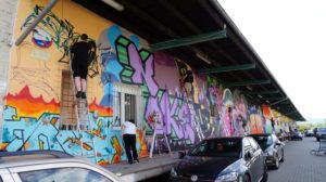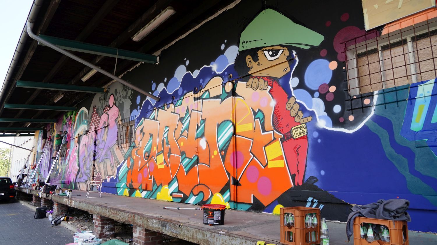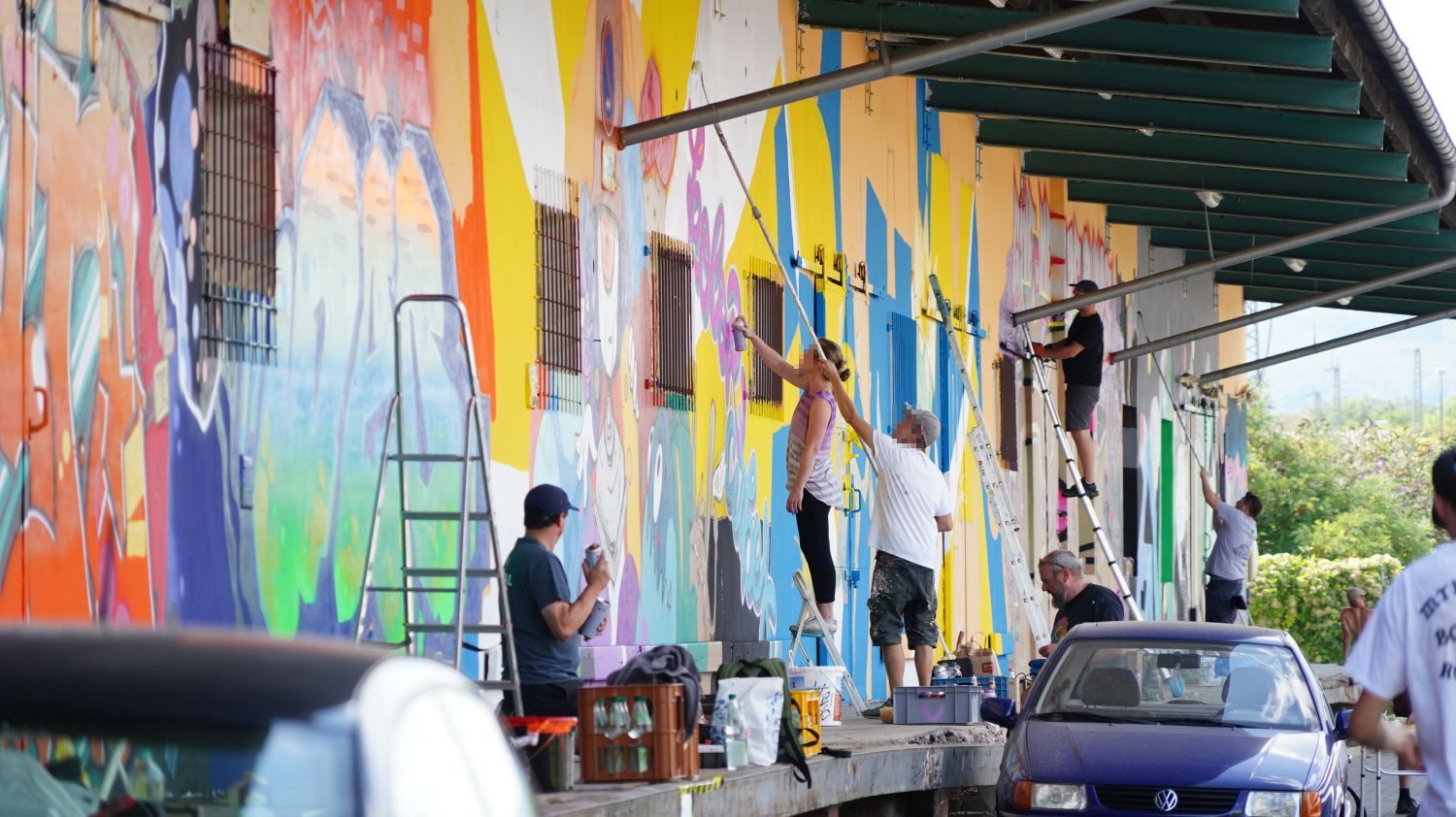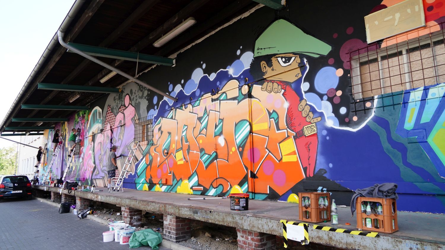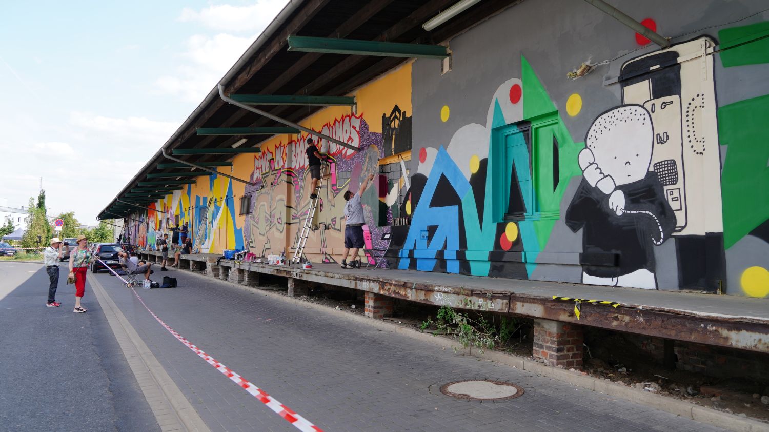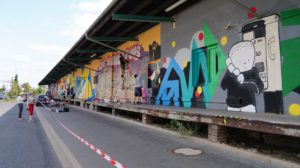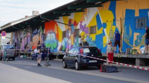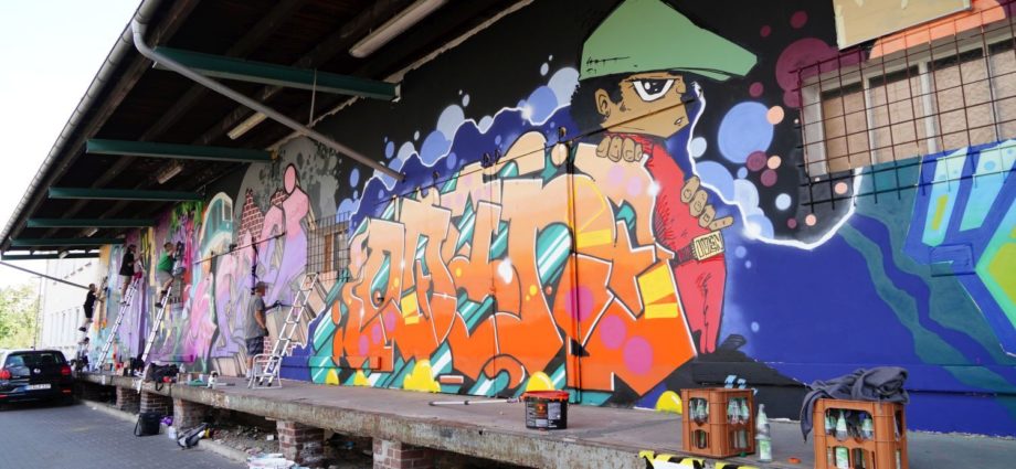 Kassel – KolorCubes e.V. und Never Enough Streetstore haben KünstlerInnen aus ganz Deutschland eingeladen, um die knapp 100 Meter lange Fassade der ehemaligen Expressguthalle der Deutschen Bahn am Kultur Bahnhof Kassel zu bemalen. Vom 12. Bis 14. August wird die Wand von rund 15 KünstlerInnen im Rahmen des Veranstaltungsformats „Kultur in Bewegung“ bemalt. Der Entstehungsprozess wird dokumentiert, aufgearbeitet und im Herbst Teil einer umfassenden „Reviews“-Ausstellung bei KolorCubes.