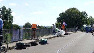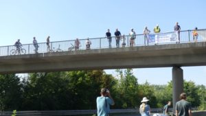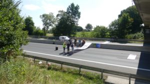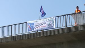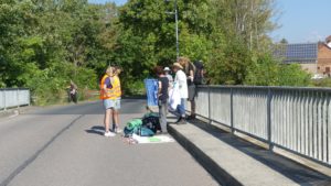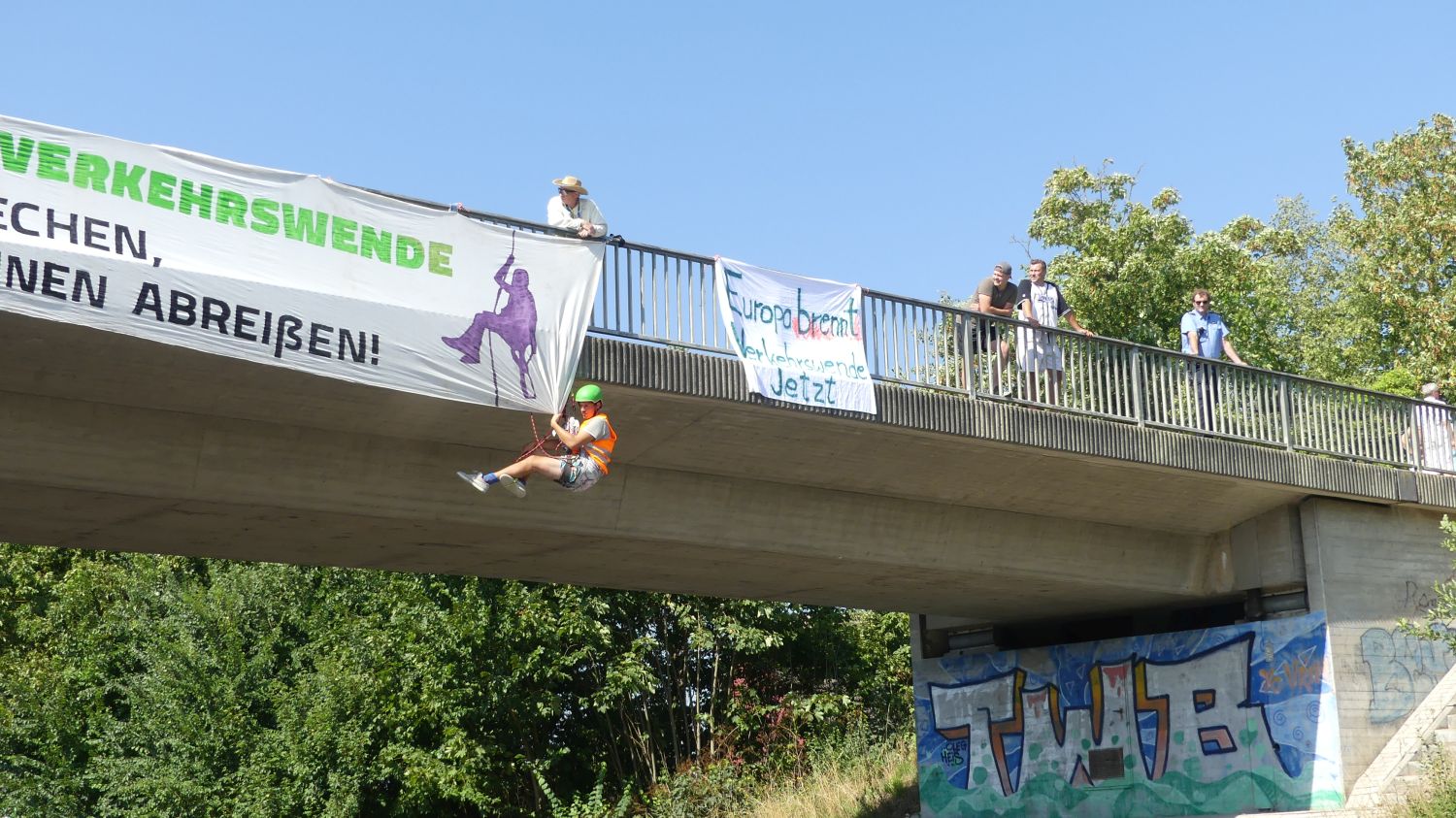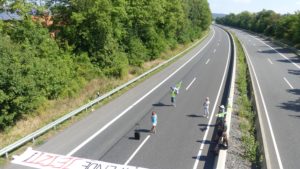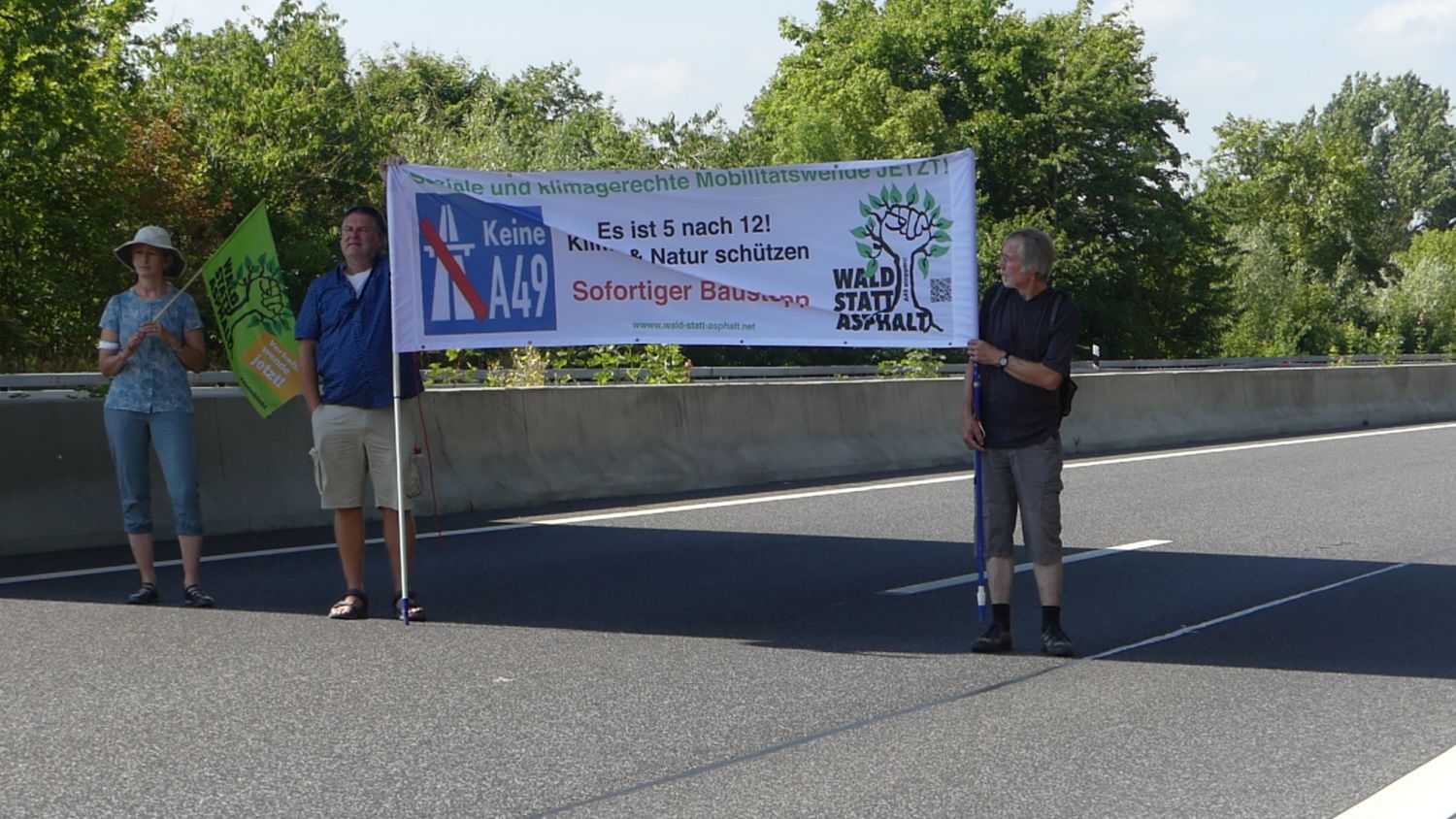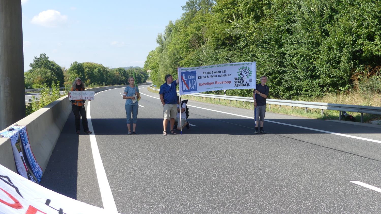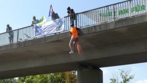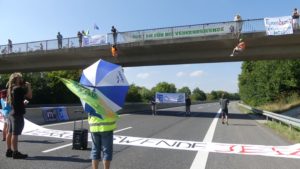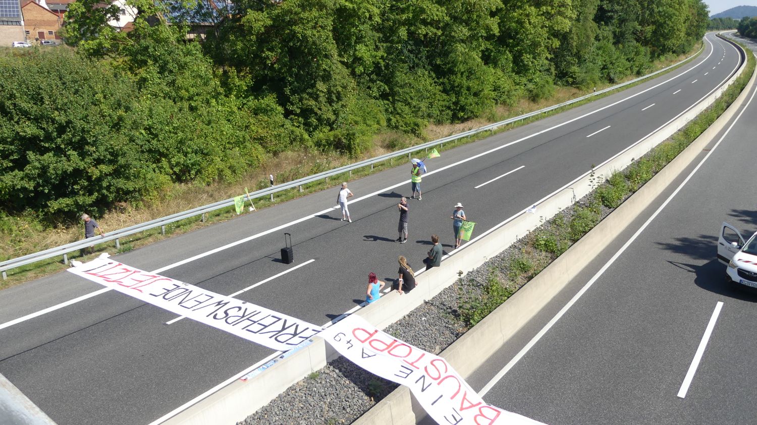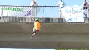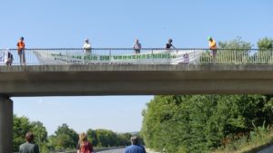 Gudensberg – Am Sonntag kam es zu einer angemeldeten Abseilaktion auf der Autobahn A 49. Diese war für den Zeitraum der Aktion zwischen Gudensberg und Fritzlar in beiden Richtungen voll gesperrt und die Fahrzeuge wurden über die Bundesstraße nebenan umgeleitet. Getroffen haben sich die rund 20 Aktivisten um 10:30 Uhr vor der Brücke am Ortsausgang von Dorla. Nach Rücksprache mit der Polizei gingen sie dann gemeinsam zur Autobahnbrücke und die Aktivisten hingen ihre Banner auf, im weiteren Verlauf wurden zwei Personen für rund 30 Minuten von der Brücke abgeseilt. In dieser Zeit gab es einige Redebeiträge von den Aktivisten und die Abseilaktion wurde kommentiert. Ausgangspunkt für die Aktion ist der Ausbau der A49 und ein Gerichtstermin am 18.08. in Kassel, wo es um eine Abseilaktion auf der A7 von Mitte Oktober 2020 geht. Ein paar Gegner der Aktion zeigten ihr dar sein mit Zwischenrufe. Gegen 12 Uhr war die Aktion vorbei und die Autobahn konnte in beide Richtungen wieder freigegeben werden. Die Polizei musste nicht eingreifen und es verlief alles friedlich. Die Aktion wurde diesmal angemeldet, da sie dann unter Versammlungsrechtlichen Schutz steht. Eins der nächsten Ziele ist der Baustopp der A49, die bis 2024 fertig gebaut sein soll.