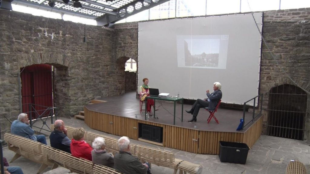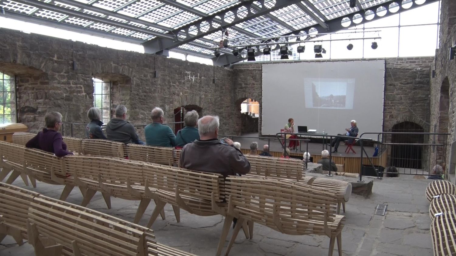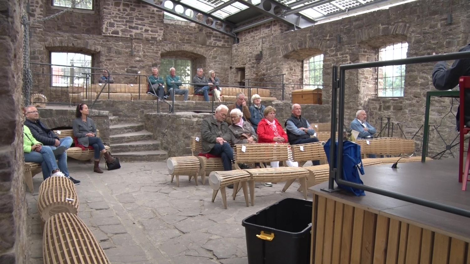 Trendelburg – Das Wasserschloss Wülmersen lockt mit seinen rustikalen Sandsteingebäuden, dem Glockenturm und dem exzellenten Café Mehlschwalbe regelmäßig viele Besucher und ist zu einem beliebten Ausflugsziel bei Jung und Alt geworden. Doch dem ging eine lange Phase des Wiederaufbaues voraus, nachdem die einst landwirtschaftlich genutzten Gebäude bis zur Unkenntlichkeit verfallen waren. In einem Bildervortrag am Sonntag dokumentierte der ehemalige Landrat Dr. Udo Schlitzberger und die ehemalige Leiterin des Wasserschlosses Dorothea Fellinger den Wiederaufbau und berichteten über die einzelnen Schritte der Bauphasen, wobei auch die ein oder andere Anekdote preisgegeben wurde. Nach dem Vortrag kam ein weiteres Highlight des Aktionstages: die Auktion der beliebten und einzigartigen Möbel aus der Herrenhausruine, die eigens für das Wasserschloss von dem Studiengang Produktdesign der Universität Kassel entworfen wurden. Die Sitzmöbel und Lampen sind in der Ruine aufgebaut und dienten bereits während des Bildervortrags als Sitzgelegenheit.
