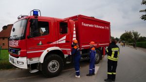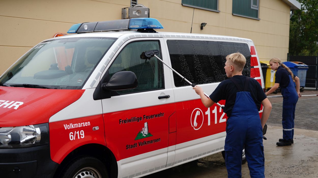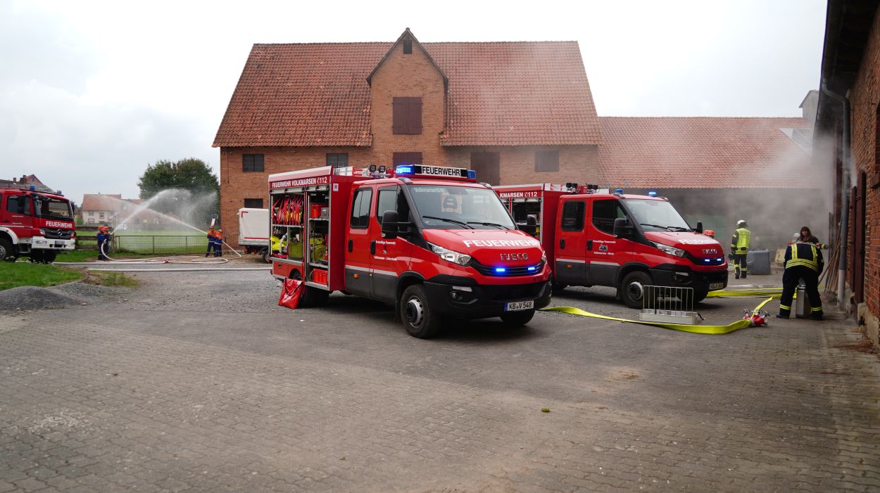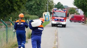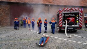 Volkmarsen – Einen Tag Einsätze fahren wie die Großen? Diese Möglichkeit hatten am Wochenende rund 60 Mitglieder der Jugendfeuerwehr aus Volkmarsen. Am so genannten BF-Tag (Berufsfeuerwehr Tag) konnten die „Brandschützer der Zukunft“ in den Arbeitsalltag einer Berufsfeuerwehr schlüpfen. Dienstbeginn war am Freitag, 18 Uhr. Nur eine halbe Stunde später kam schon der erste Einsatz herein und der Alarm ging in der Feuerwehrhalle los. Verkehrsunfall auf dem Betriebsgelände der Raiffeisen Waren GmbH „Oberer Zollstock“ in Volkmarsen kam es über die Lautsprecher in der Feuerwehr. Einer von vielen Einsätzen in den nächsten 24 Stunden. Neben der technischen Rettung waren auch Personensuche, ausgelöste Brand-Melde-Anlage in einer Logistikhalle und Unterstützung Rettungsdienst. Aber nicht nur Einsätze waren wichtig, die Jugendliche übernachten auch in der Feuerwehr, reinigten die Fahrzeuge und aßen zusammen. Am Samstag ertönte dann gegen 13 Uhr das letzte Mal der Alarm. F3 Brand in einem landwirtschaftlichen Anwesen im Steinweg. Bereits auf der Anfahrt konnte man den Qualm sehen. Schnell bauten die Brandschützer eine Wasserversorgung auf, um das Feuer schnell zu löschen. In einer verqualmten Scheune galt es, verletzte Personen zu finden und zu retten. Nach dem Einsatz war der Tag um 16.30 Uhr zu Ende.