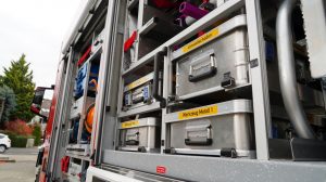 Vellmar – Der Landkreis Kassel hat einen neuen Rüstwagen (RW). Dieses Fahrzeug ist bei der Feuerwehr in Vellmar stationiert und ersetzt ein 34 Jahre alten Rüstwagen. Dieses Fahrzeug wird vorwiegend für die schwere technische Hilfeleistung wie bei Verkehrsunfällen mit PKW und LKW, Straßenbahn und auch bei Bauunfällen in Tiefbau und Hochbau verwendet. Das Fahrzeug verfügt außerdem über eine Ladebordwand. Diese wurde auf Wunsch verbaut, damit die Beladung schnell und flexibel mit Rollcontainern ergänzt werden kann. Dies ist besonders von Vorteil für Straßenbahnunfälle. Zudem ist auch eine 90 Meter lange Winde verbaut. Derzeit werden die Vellmarer Kräfte umfassend geschult & in das neue Fahrzeug eingewiesen Mit der neusten Technik ist die Feuerwehr Vellmar und der Landkreis für die Zukunft bestens vorbereitet.