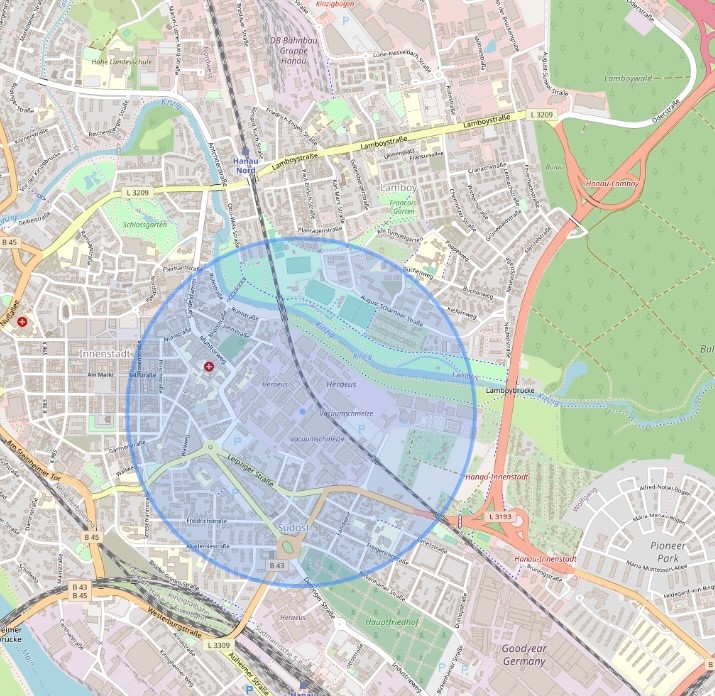 Hanau – Die Werkfeuerwehr des Unternehmens Heraeus hat am Dienstag auf dem Werkgelände an der Heraeusstraße eine 250-Kilo-Weltkriegsbombe gefunden. Der Kampfmittelräumdienst des Regierungspräsidiums Darmstadt hat daraufhin das Gelände gesichert. Die mechanische Entschärfung der Bombe erfolgt am morgigen Mittwochvormittag. Die Evakuierung beginnt ab 8 Uhr Der Sicherheitsbereich wurde in Abhängigkeit von den örtlichen Gegebenheiten auf 750 Meter um die Fundstelle vom Kampfmittelräumdienst festgelegt. Dies hat große Auswirkungen auf die Innenstadt: So muss unter anderem das Klinikum Hanau aus Sicherheitsgründen teilevakuiert werden. Auch einige Schulen, Kindertagesstätten und das Altenhilfezentrum Bernhard Eberhard sind betroffen. Des Weiteren Geschäfte und Büros im ausgewiesenen Sicherheitsradius. Die Sperrung der Straßen sowie die Evakuierung der Anwohnerinnen und Anwohner wird aktuell vorbereitet. Geschätzt werden rund 16.000 Menschen von der Evakuierung betroffen sein. Im Sicherheitsradius befindlich und daher geschlossen sind am Mittwoch zudem die Anne-Frank-Schule, die Brüder-Grimm-Schule sowie die Ludwig-Geissler-Schule, die sich am Außenrand des Sicherheitsradius befindet und sich daher entschieden hat aufgrund der Straßensperrungen ebenfalls zu schließen.