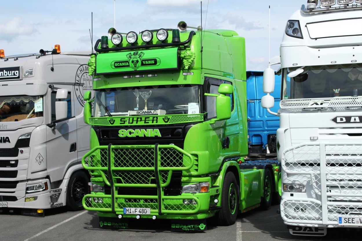 Lohfelden – Üer 400 LKW waren in diesem Jahr auf der Rüssel Truck-Show zu bestaunen. Seit Freitagmittag reisten Zahlreiche LKW an, um ihre Trucks zur Show zu stellen. Auch in diesem Jahr wurde die Rüssel Truck-Show zugunsten dem „Verein für Krebskranke Kinder Kassel e.V.“ veranstaltet. 31.907 Euro wurden am Samstagmittag übergeben (- wir berichteten -) . Auch in diesem Jahr gab es für groß und klein viel zu sehen. Am Samstagabend gegen 20:00 Uhr begann dann die Lichtershow, alle LKW leuchteten für mehrere stunden auf dem Lohfeldener Rüssel. Noch bis Sonntag Nachmittag kann die Rüssel Truck-Show besucht werden, bevor gegen 17:00 Uhr alle Fahrer ihre Heimreise antreten.