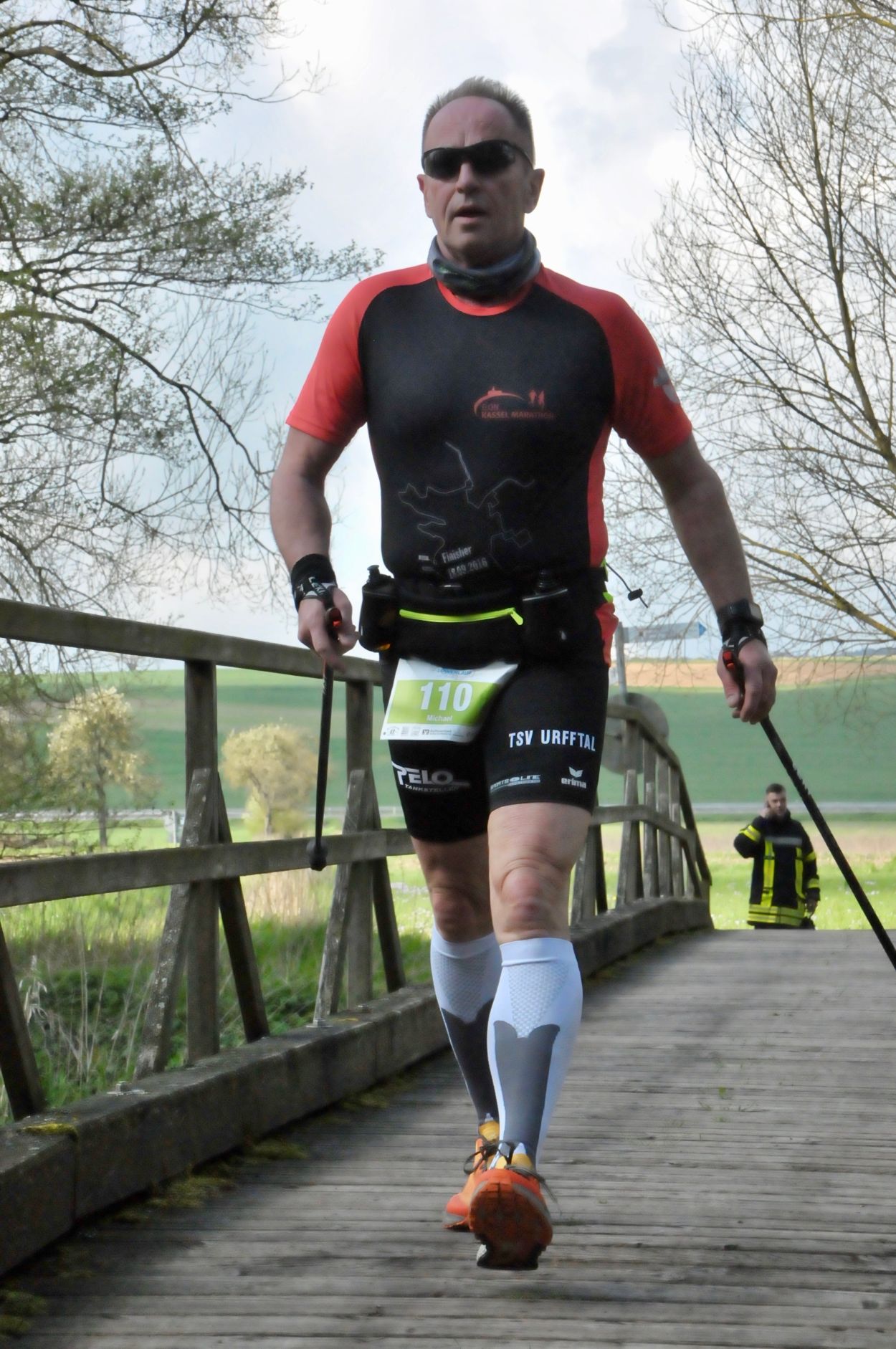 Auch die Halbmarathonstrecke war sehr anspruchsvoll. Zunächst begann die Strecke sehr flach und schnell, führte fast schon schmeichelnd schön an der Schwalm entlang. Im weiteren Verlauf ging es dann über Nieder- und Oberurff zurück in den Kurpark. Von dort an mauserte sich die zweite Hälfte des Halbmarathon zu einer echten Herausforderung. Bis nach Wenzigerode galt es jetzt etliche Höhenmeter zu bewältigen. Einmal oben angekommen, entspannten sich die Gesichter der Wanderer, Walker und Läufer schnell. Denn von dort an ging es fast nur noch Bergab. Auf den letzten Metern wurden die Athleten im Kurpark von den Zuschauern und Sportler noch einmal ordentlich angefeuert. Wer konnte aktivierte noch einmal seine letzten Energiereserven.