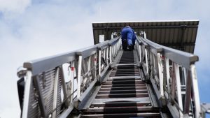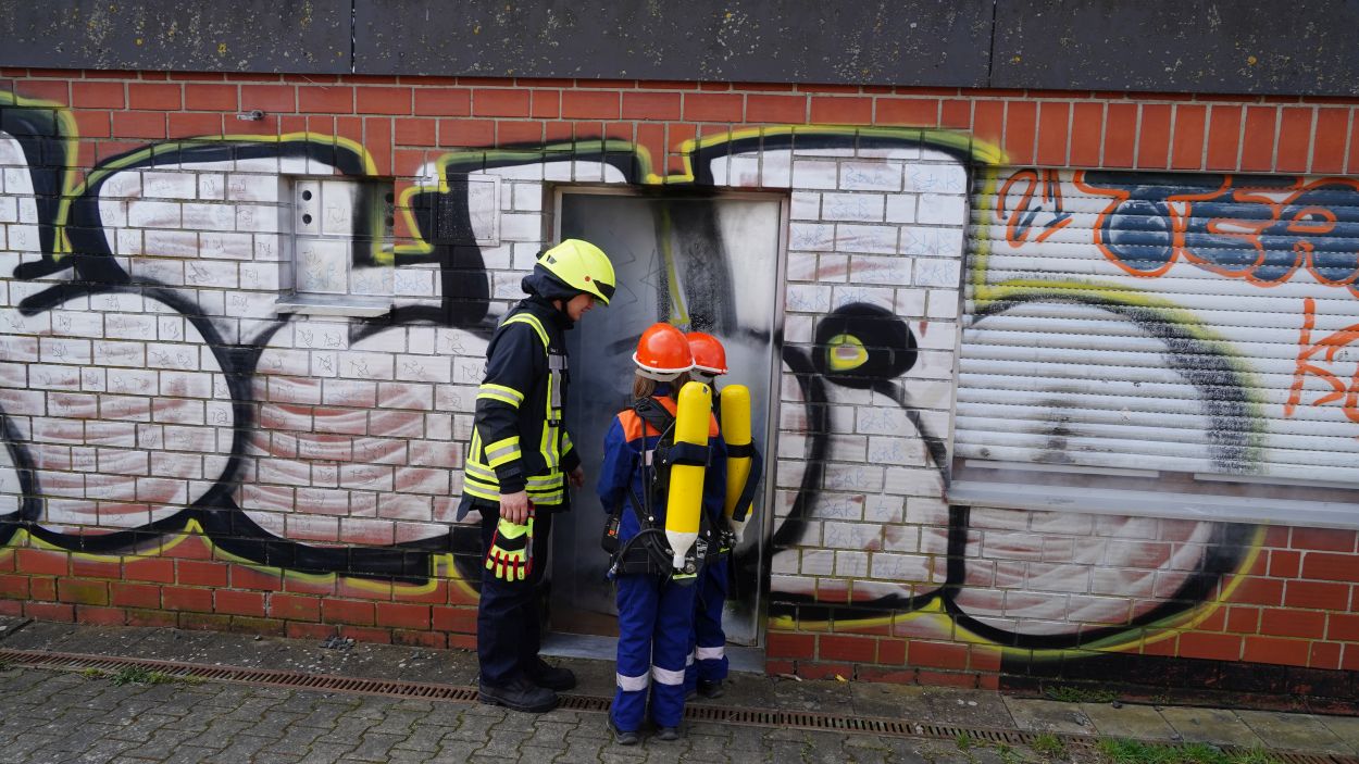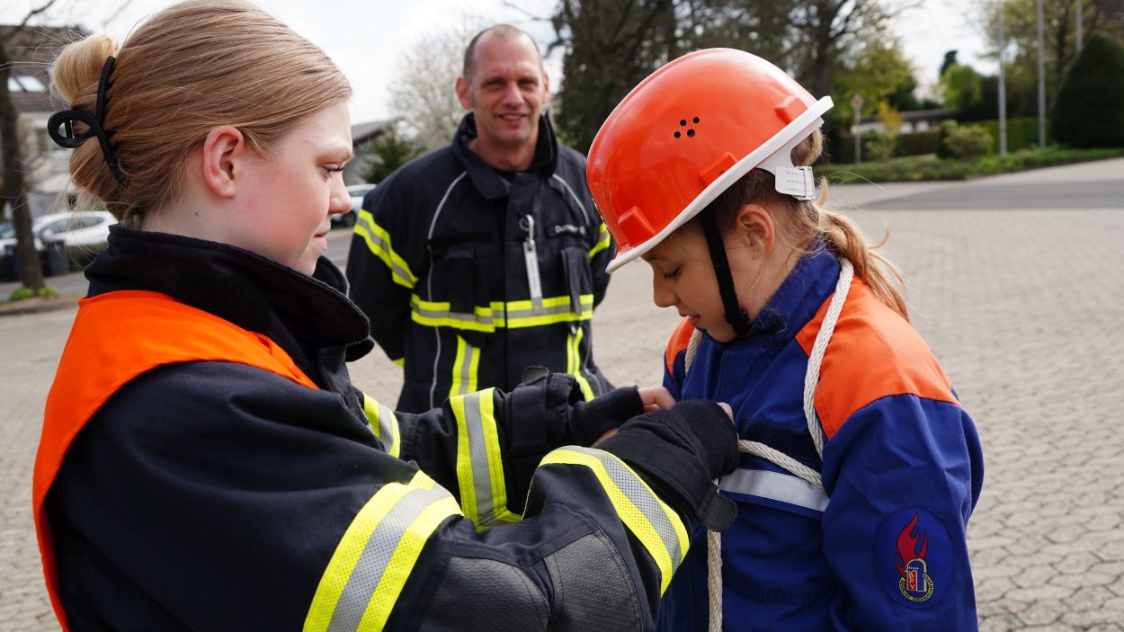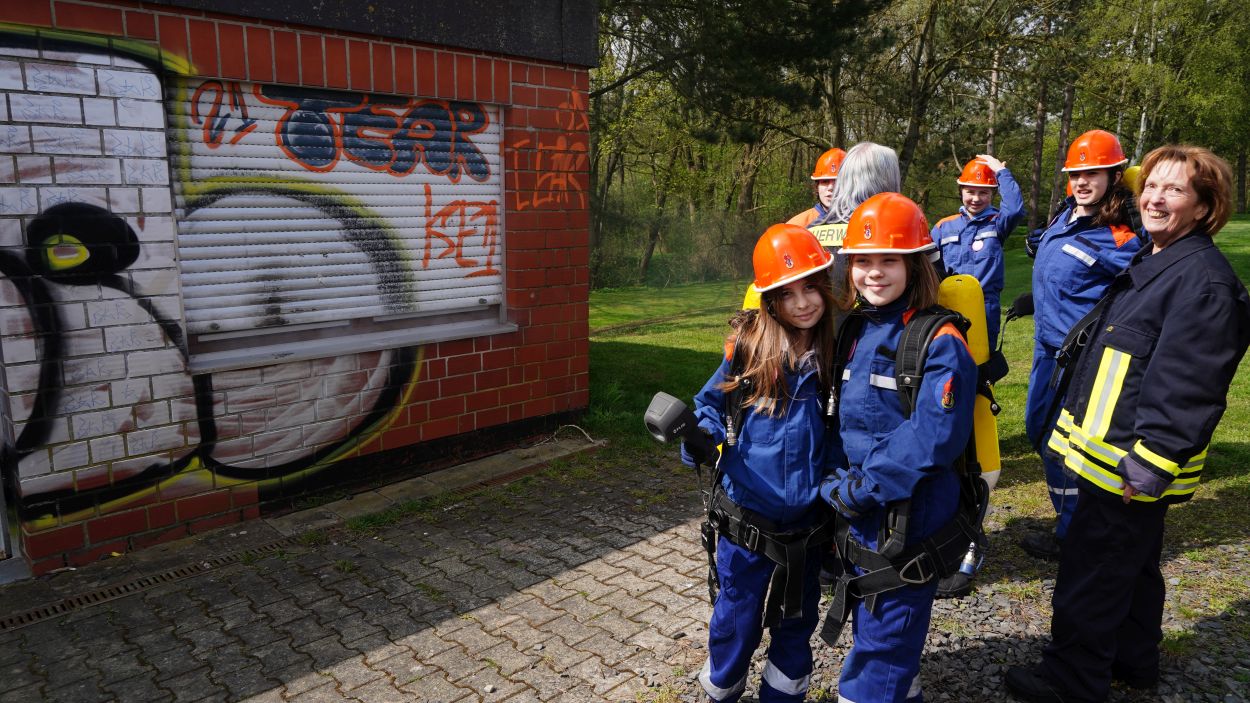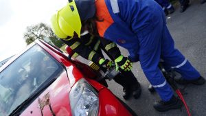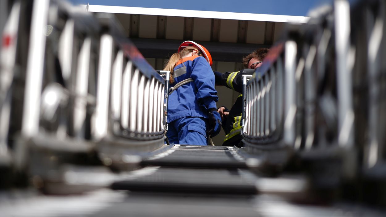 Bereits an der zweiten Station kam schon schweres Gerät zum Einsatz. Hier wurde ein Verkehrsunfall mit eingeklemmter Person dargestellt. Mit Helm, Visier und Handschuhe wurde zuerst die Scheibe abgeklebt und mit einem Federkorn zum Platzen gebracht und dann entfernt. Danach kam Schneid- und Spreizgerät zum Einsatz und die Tür wurde vom Fahrzeug abgetrennt. Bei dem schweren Gerät waren auch die Mitglieder der Feuerwehr zur Hilfe da. In luftiger Höhe ging es an Station 3. Hier kam auch die Drehleiter zum Einsatz. Höhenangst sollte man hier nicht haben, denn es ging rauf auf einen 15 Meter Turm. Mit einem Seil, gut gesichert, mit einem Rettungsknoten ging es dann die Leiter hoch. An der letzten Stadtion ging es dann mit einem Löschfahrzeug zum Festplatz. Hier wurde ein Brand in einem Gebäude simuliert. Im stark verrauchten Raum wurde auch ein Dummy versteckt, der gefunden werden musste. Mit einer Atemschutzattrappe speziell für Kinder und einer Wärmebildkamera gingen die Mädchen dann zu zweit auf die Rettungsmission. Mit Spaghetti Bolognese ging der Tag auch gegen 14 Uhr zu Ende. Auch wenn die Arbeit der Feuerwehr nicht auf jeden Geschmack der Teilnehmer gestoßen ist, war es dennoch ein aufregender Tag. Denn genau dafür ist der Girlsday auch gedacht.