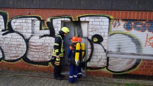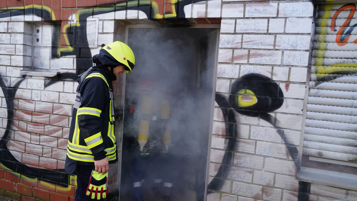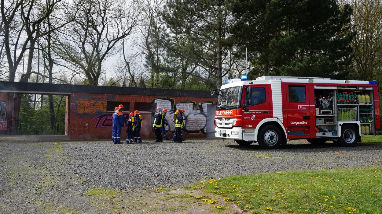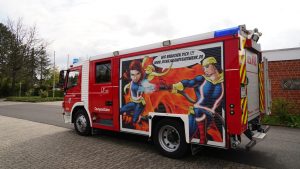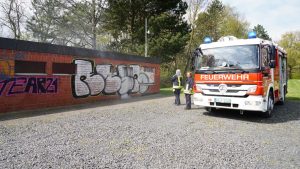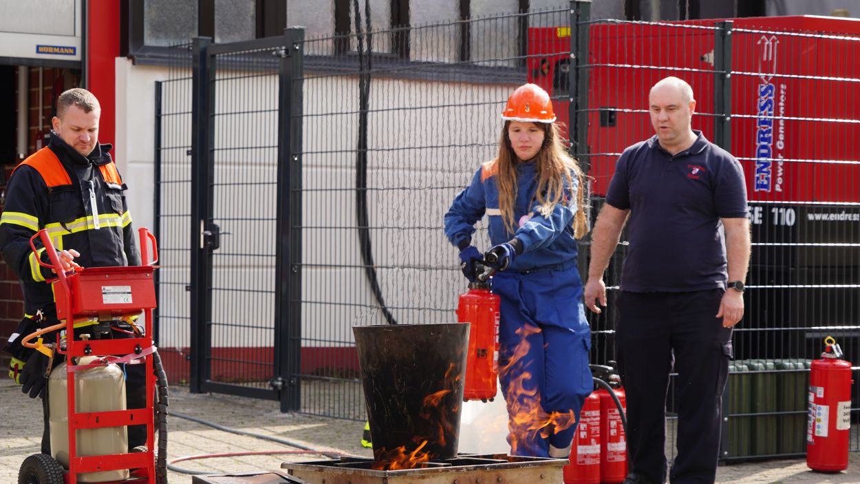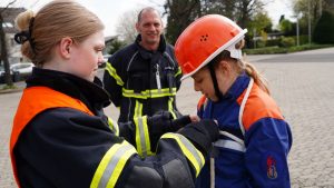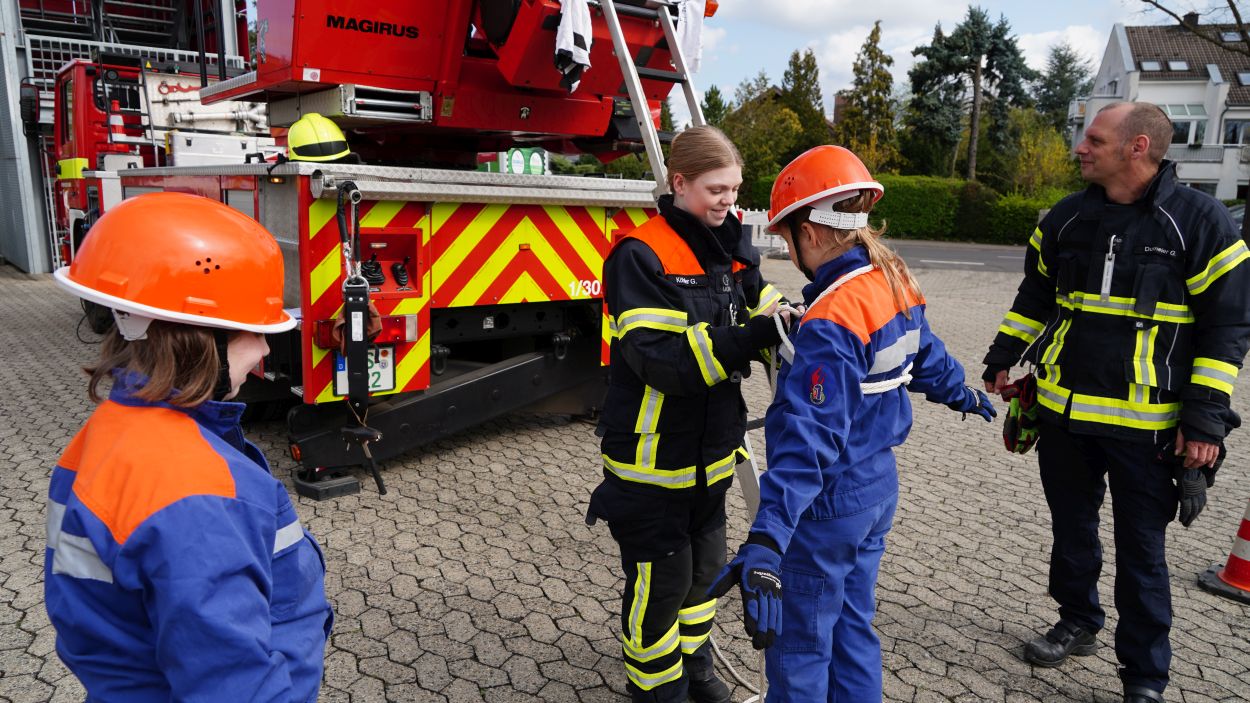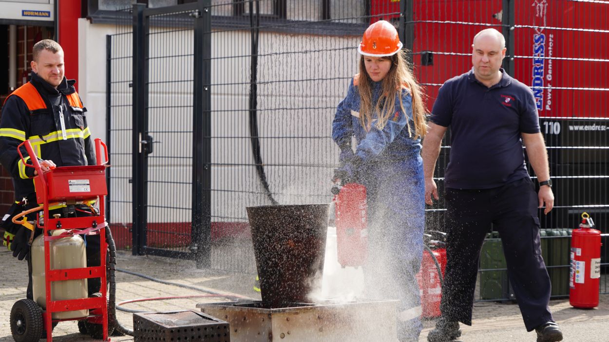 Vellmar – 23 junge Mädchen aus Stadt und Landkreis Kassel hatten am Donnerstag zum Girlsday die Möglichkeit, in den Beruf der Feuerwehr hineinzuschnuppern. Neben Feuer löschen und Personenrettung wurde auch an schweren Geräten geübt. Geplant und von Geraldine Köhler organisiert, ging es bereits um 8 Uhr mit einem Kennenlern-Frühstück los. Um 9 Uhr wurden die Mädchen aufgeteilt und es ging zu vier Übungsstationen. An der ersten Station wurde gezeigt, mit welchen Mittel man am besten ein Feuer unter Kontrolle bringt, auch das Zielen mit einem Schlauch wurde geübt. Ein Gasbrand wurde simuliert und musste mit Feuerlöschern unter Kontrolle gebracht werden.