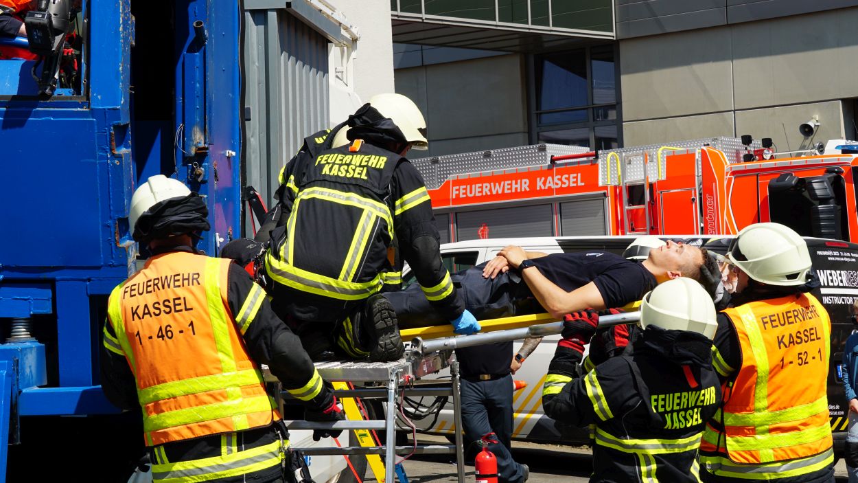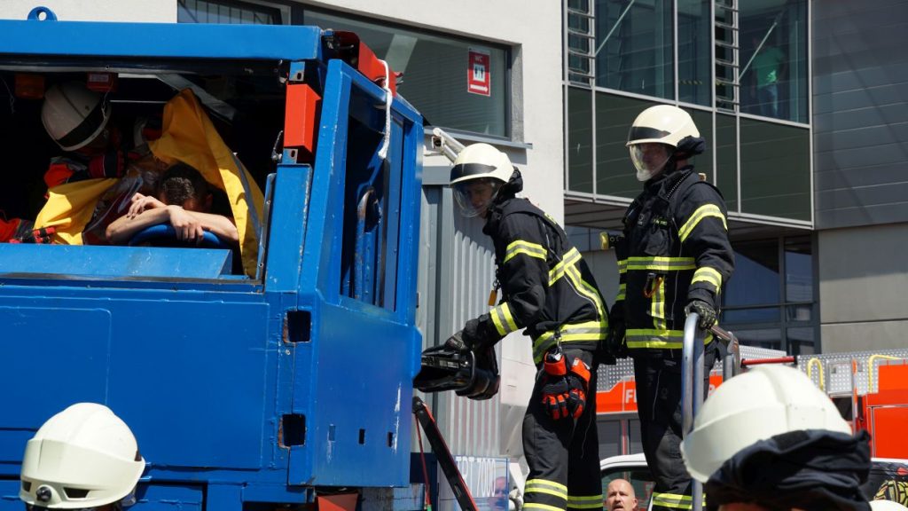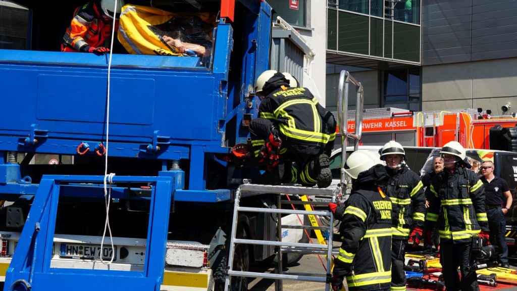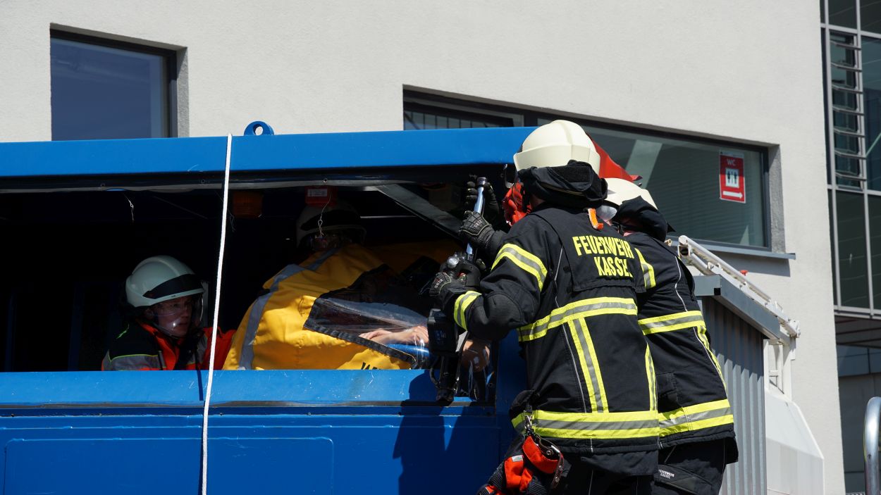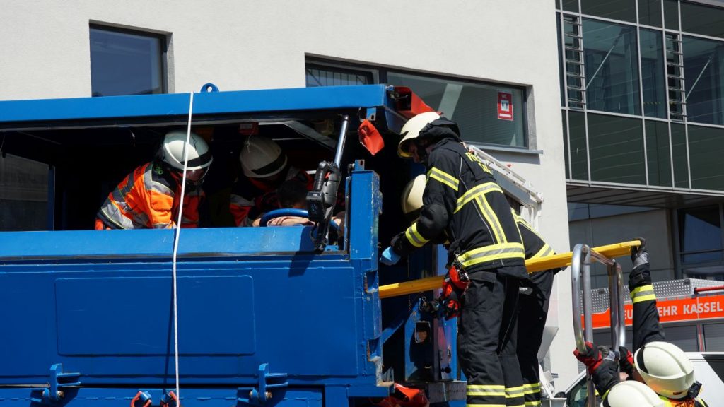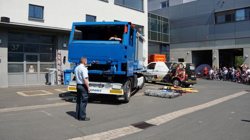 Kassel – Zahlreiche Besucher besuchten am Sonntag den Tag der offenen Tür bei der Berufsfeuerwehr Kassel. Neben einer Führung durch das Gebäude wurden auch die verschiedenen Fahrzeuge präsentiert und die Besucher konnten so einen Einblick in die Arbeit der Feuerwehr bekommen. Auf dem Innenhof konnten die Besucher sehen, wie die Feuerwehr eine Person nach einem LKW-Unfall aus dem Fahrerhaus rettet. Obwohl ein realer größerer Einsatz die Berufs- und Freiwilligen Feuerwehren am Nachmittag gegen 15.30 Uhr erreichte (- wir berichteten -), konnte der Tag wie geplant um 18 Uhr beendet werden.