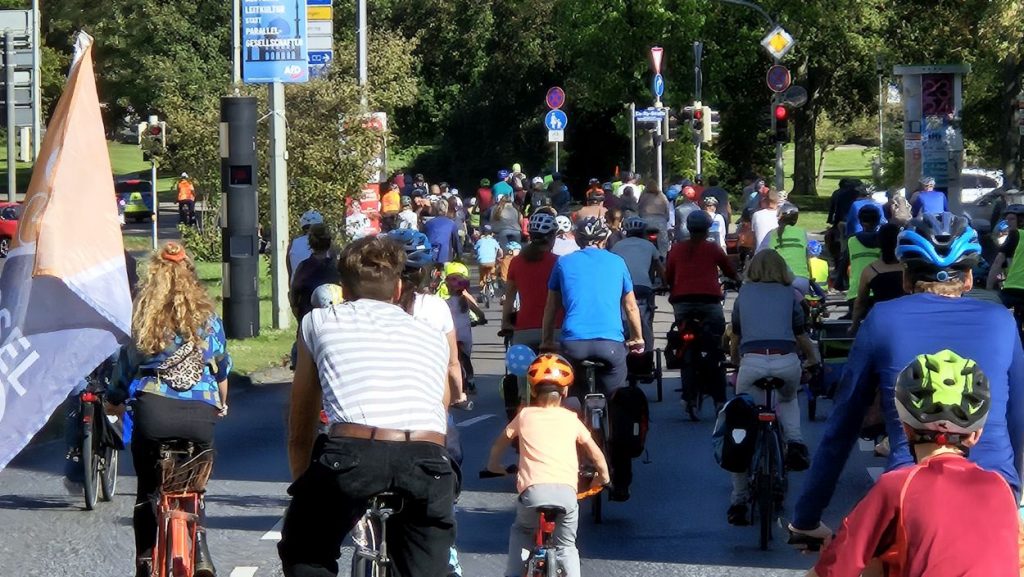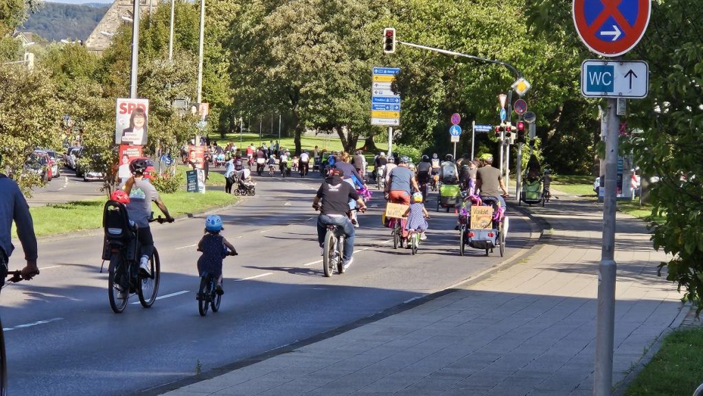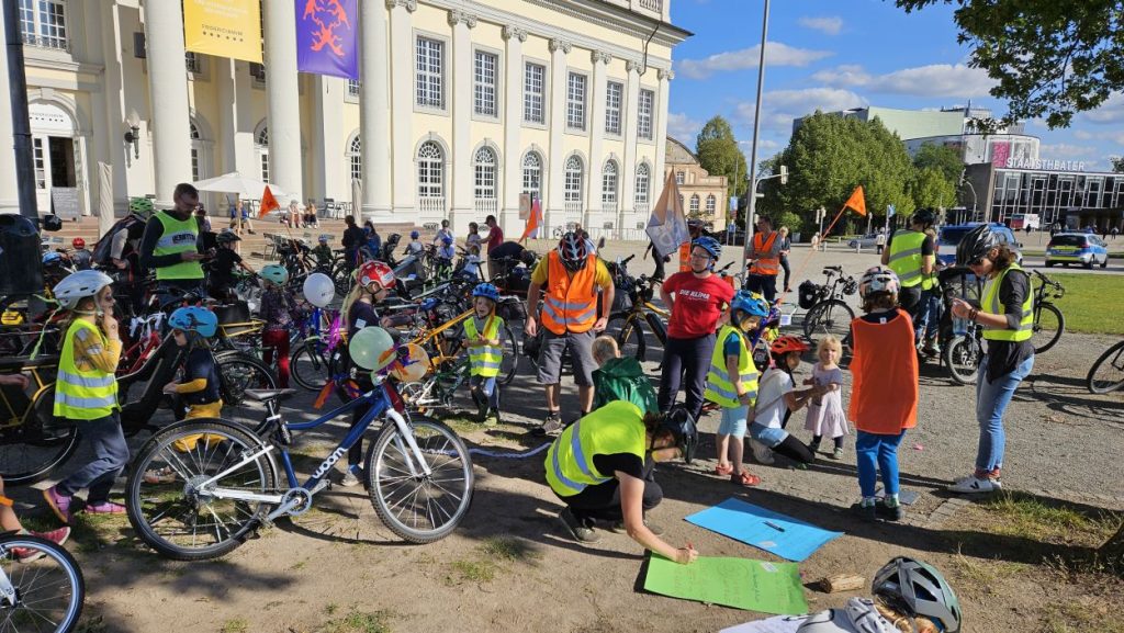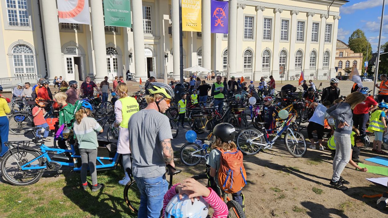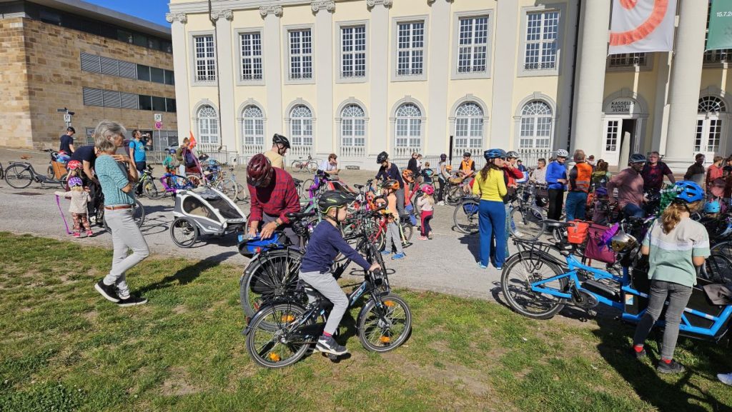 Kassel – Zu einer Familien-Fahrraddemo trafen sich Kinder und Eltern am Sonntag am Friedrichplatz in Kassel. Dies ist eine von vielen bundesweiten Aktionen der „Kidical-Mass“. Unter dem Motto „Straßen sind für alle da“ wünschten sich die Teilnehmer sichere Radwege. Auf Plakaten wurden ihre Wünsche niedergeschrieben. Anschließend ging die Tour mit hunderten Fahrrädern durch die Kasseler Innenstadt bis zuletzt in den Philosophenweg, wo sie auf Oberbürgermeister Sven Schoeller trafen, um ihn die Plakate zu übergeben.