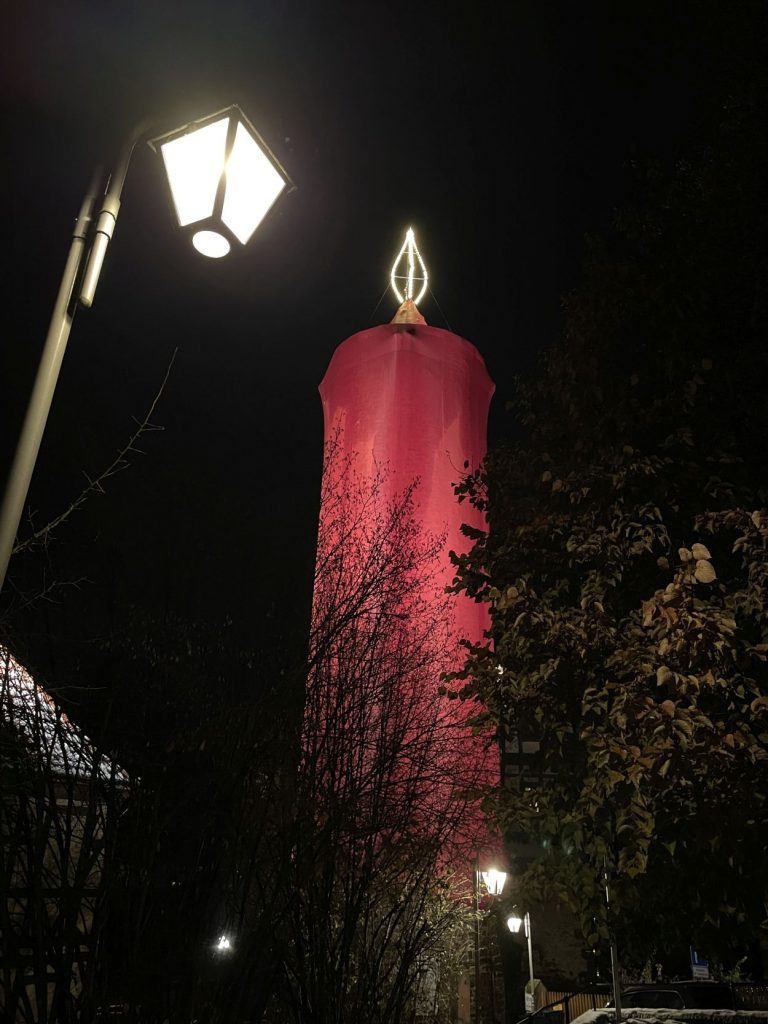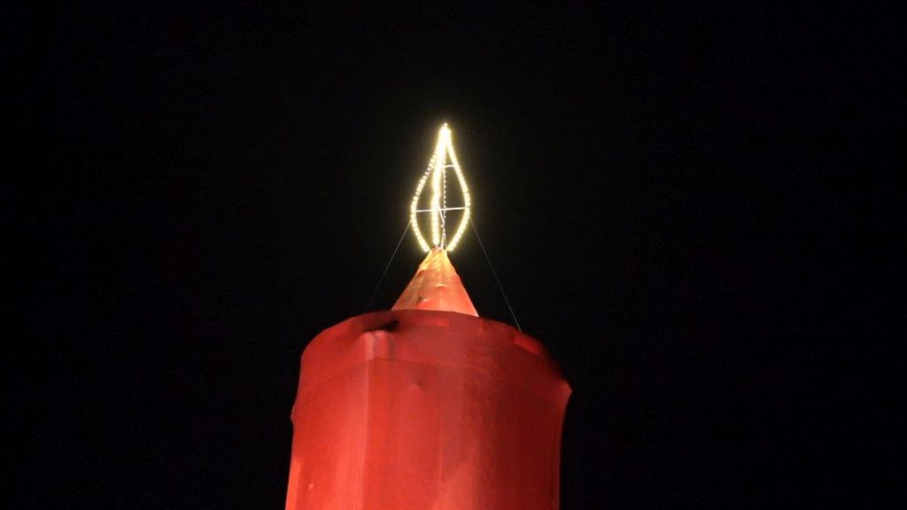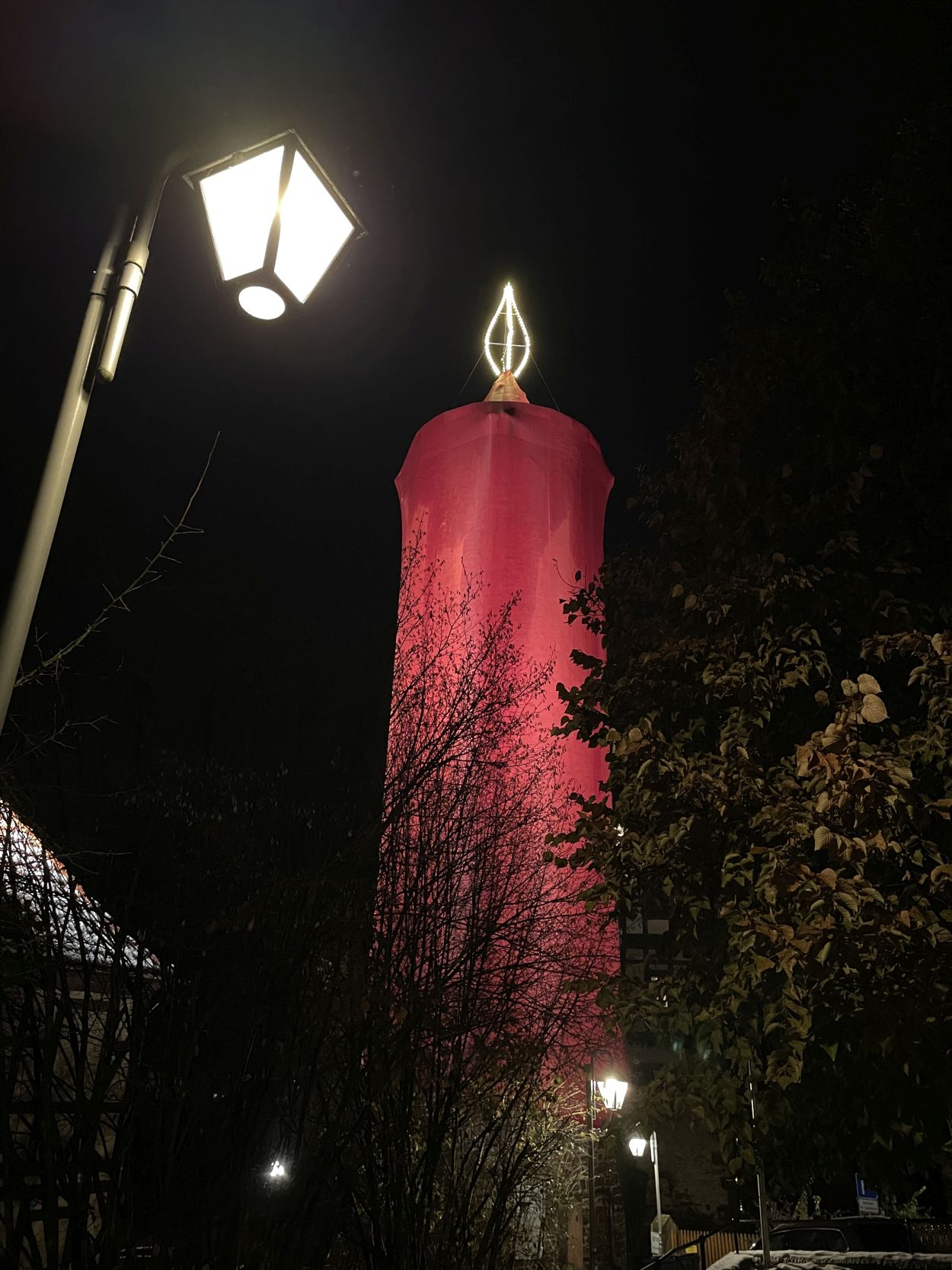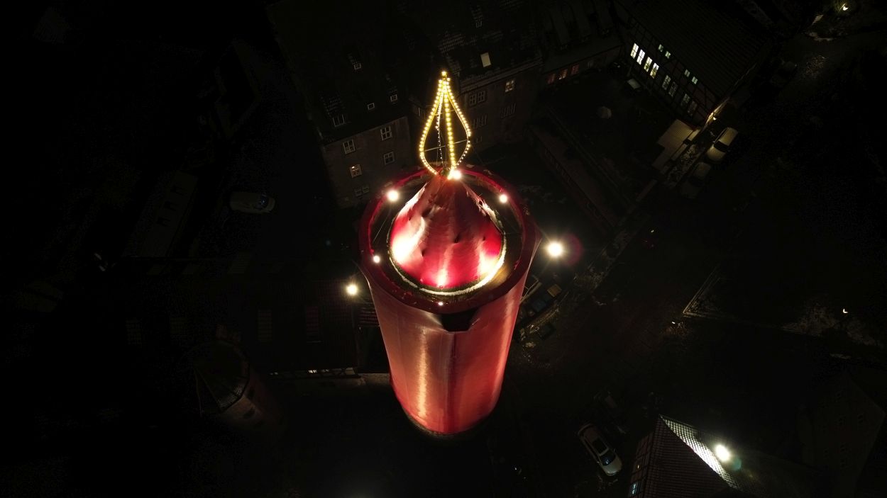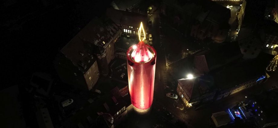 Schlitz – Sie ist 42 Meter groß und steht seit 1992 im Guinness-Buch der Rekorde. Die Schlitzer Weihnachtskerze in Mittelhessen ist die größte Kerze, die nicht aus Wachs besteht. Seit 1991 wird jedes Jahr im November der Turm der Hinterburg in ein rotes Tuch gehüllt. Der Turm selbst ist 36 Meter hoch und darauf kommt eine 6 Meter hohe Flamme aus 140 Glühlampen. An die Turmspitze kommt man mit einem Aufzug im Inneren des Turms. Die Kerze und der Ausblick dient als besondere Attraktion im Vogelsbergkreis.