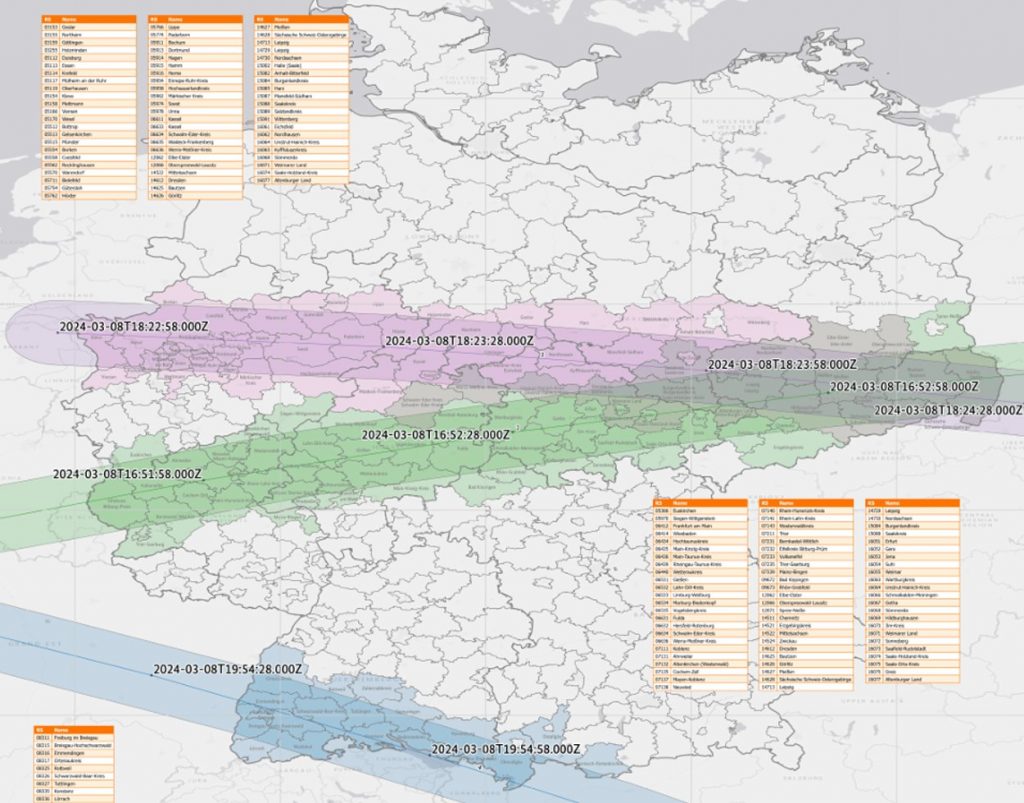In den folgenden Zeiten soll das Objekt über Deutschland fliegen: