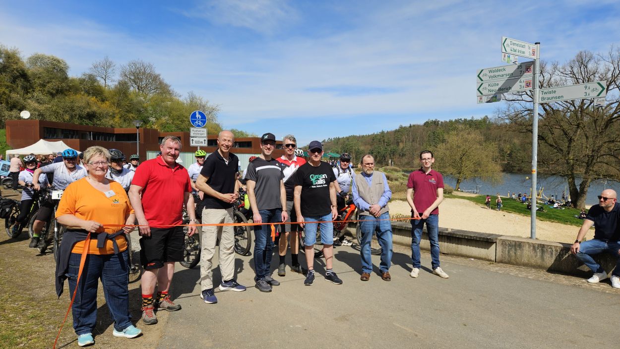 Korbach, Twiste, Warburg – Am Samstag wurde um 14 Uhr am Twistesee der neue Radweg eröffnet. Die Hauptroute von Korbach nach Warburg erstreckt sich über 48,7 km. Die Alternativroute, die von Twiste über Bad Arolsen zum Twistesee führt, ist 11 km lang. Am Samstag fuhren zwei Gruppen jeweils in Korbach und Warburg los, um sich gegen 13.30 Uhr zur Eröffnung am Twistesee zu treffen. Eröffnet wurde der Radweg von den ersten Kreisbeigeordneten Karl Friedrich Frese, dem 1. Stadtrat von Bad Arolsen Udo Jost und Hendrik Vahle, Bürgermeister von Volkmarsen. Der Rotary-Club Korbach-Bad Arolsen war mit zwei Fahrrad-Rikschas vor Ort und informierte Interessierte zum Thema „Radeln ohne Alter “. Es hat einige Jahre gedauert, bis der Twiste-Radweg umgesetzt werden konnte, umso mehr freute sich die Arbeitsgruppe, dass er im letzten Jahr fertiggestellt werden konnte.
