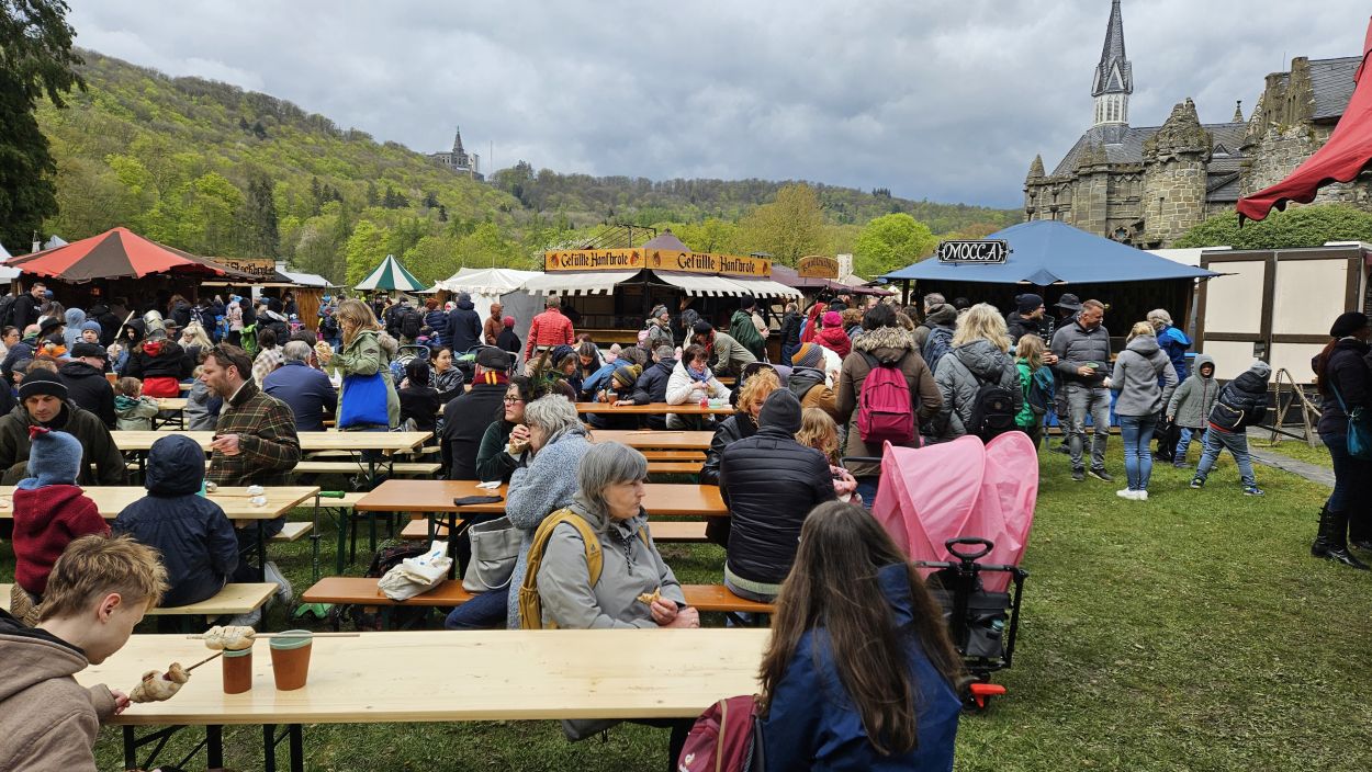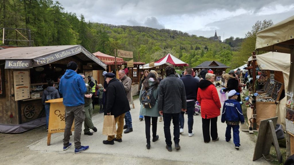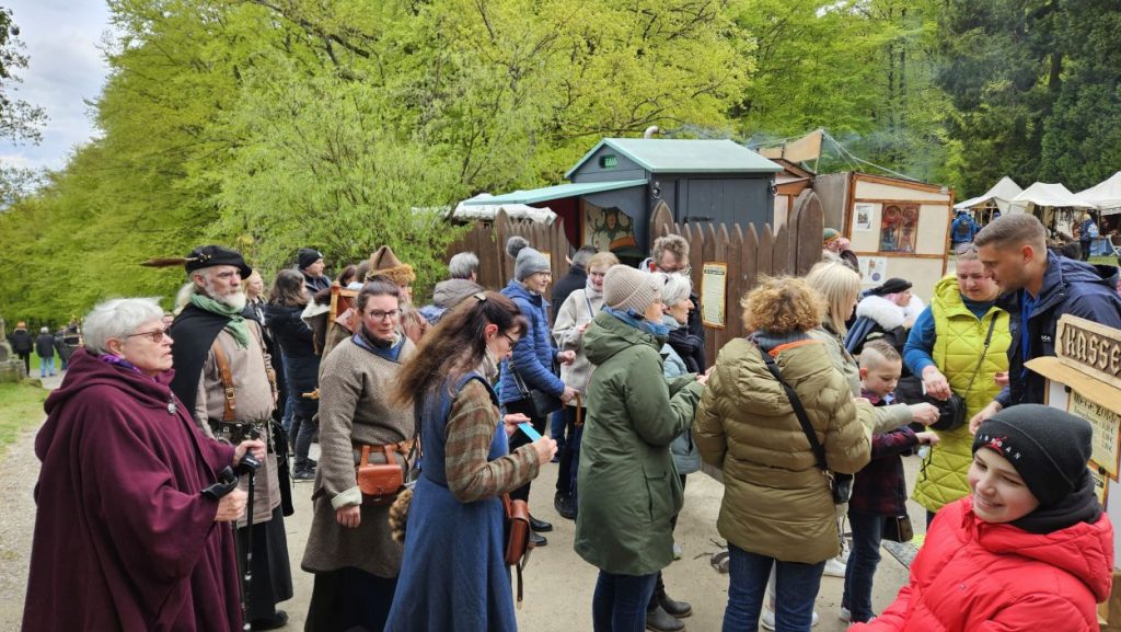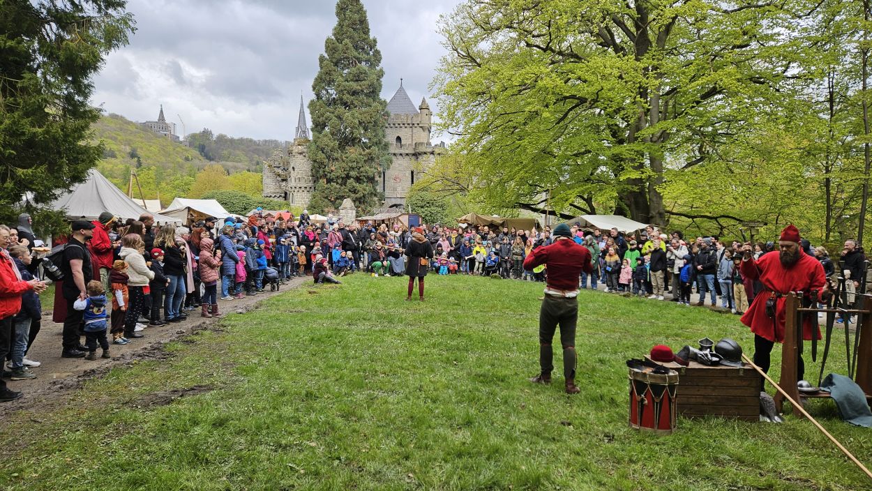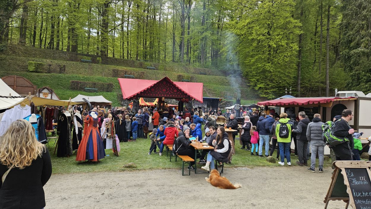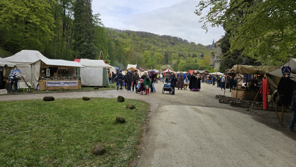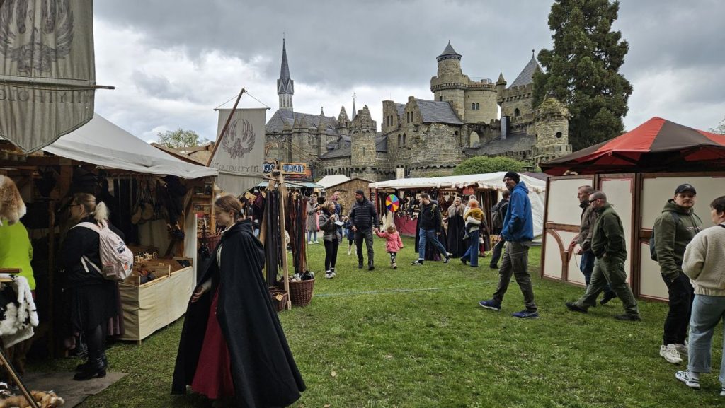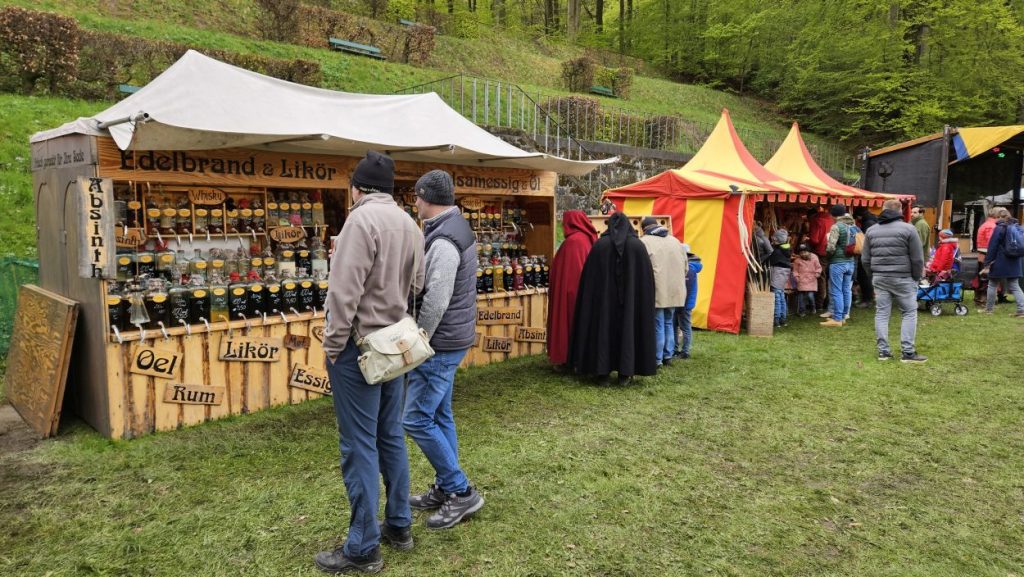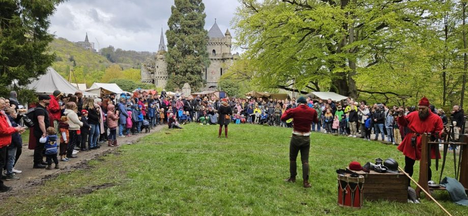 Kassel – Am Fuße der Löwenburg im Bergpark Wilhelmshöhe findet dieses Wochenende wieder der traditionelle Mittelaltermarkt statt. Um die Burg herum sind rund 50 mittelalterliche Stände – Handwerker, Krämer und Mundschenke – und Ritter mit ihren Zelten. Daneben läuft auf einer Bühne ein feines mittelalterliches Programm. Die Bands „Tanzwut“ und „Rapauken“ spielen auf, die Gaukler und Comödianten „Forzarello“ zeigen ihre witzigen Jonglagen, Puppentheater gibts im „Theatrum Diaboli“, Spielmann Disphonicus singt Lieder über die Liebe und Drachen und hoch über den Köpfen der Zuschauer lassen die Falkner ihre Tiere kreisen. Auf der Ritterwiese kommt es hin und wieder zu einer ritterlichen Rauferei.