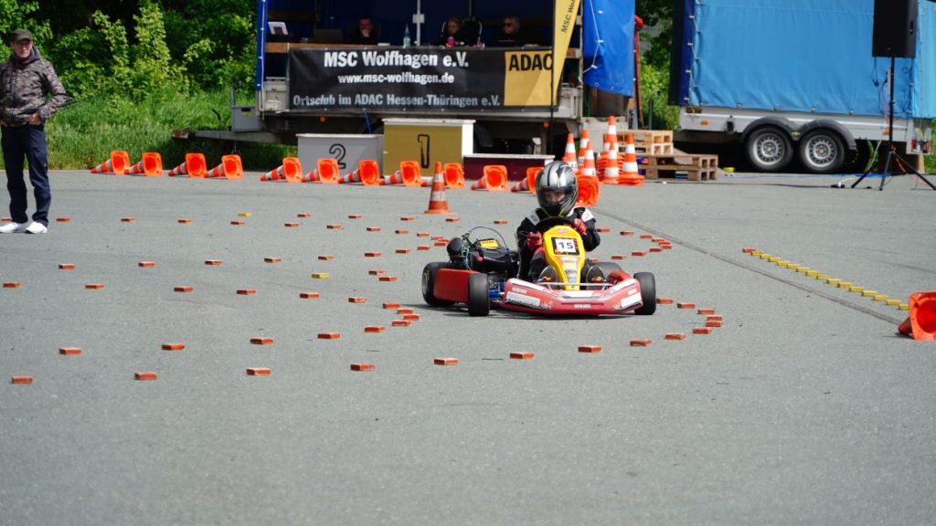 Wolfhagen – Auf dem SVG Autohof bei Wolfhagen-Niederelsungen fand am Wochenende der ADAC Jugend-Kart-Meisterschaft statt. Wenn die Mädchen und Jungen im Alter von 6 bis 25 Jahren mit ihren motorisierten Karts den Parcours durchfahren, sind Geschicklichkeit, Konzentration und Reaktionsfähigkeit gefordert. Im Training und bei Wettkämpfen lernen sie, ihr Sportgerät bei unterschiedlichen Situationen zu beherrschen. Vor einem Start müssen sie sich bei einer Begehung den Parcours sehr genau merken, damit sie die einzelnen Aufgaben in der richtigen Reihenfolge und optimalem Winkel sowie Geschwindigkeit anfahren. Nach einer Proberunde folgt die Wertung. Diese Wettbewerbe nehmen in der Nachwuchsförderung des ADAC einen wichtigen Platz ein.
