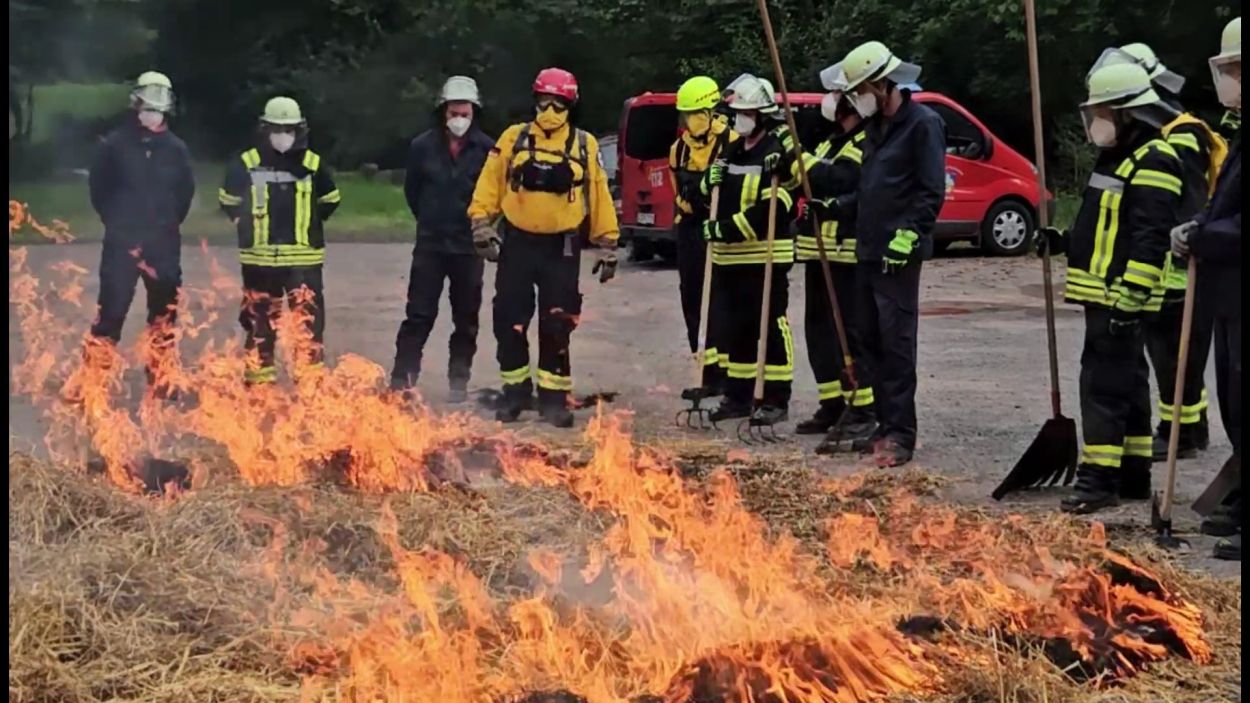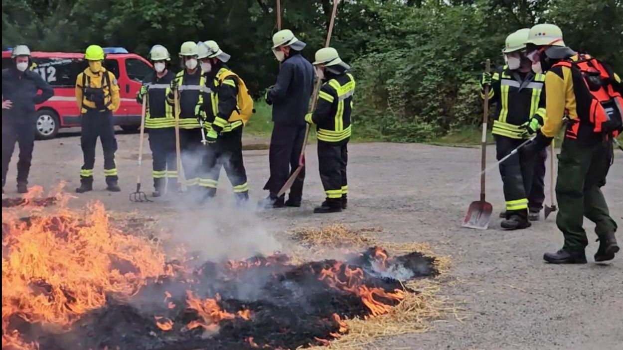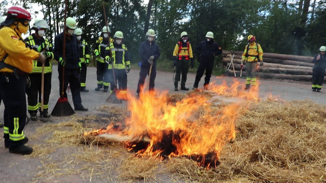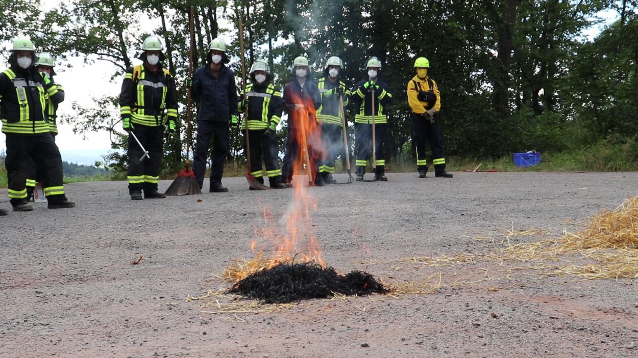 Bei besten Bedingungen wurde mit dem umfangreichen Spezialequipment möglichst realitätsnah und sicher der Umgang und das taktisch, richtige Vorgehen gelehrt und geübt. So wurden die Einsatzkräfte im richtigen Umgang mit den vorhanden Handwerkzeugen sowie dem Vorgehen mit leichten D-Schläuchen mit speziellen Waldbrandstrahlrohren im Gelände geschult. Ein Highlight bildete die Abschlussübung, bei welcher das gelernte mit „richtigen“ Feuer unter kontrollierten Bedingungen angewendet werden konnte. So musste das Feuer mit minimalen Wassereinsatz unter dem Einsatz von Handwerkzeugen und Löschrucksäcken gelöscht werden. Hier zeigte sich, dass auch kleine örtliche Feuerwehren mit wenigen Mitteln, besonders in der kritischen Erstphase des Einsatzes viel erreichen können.