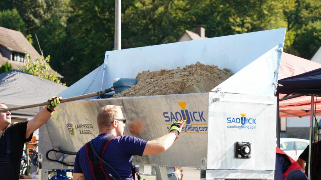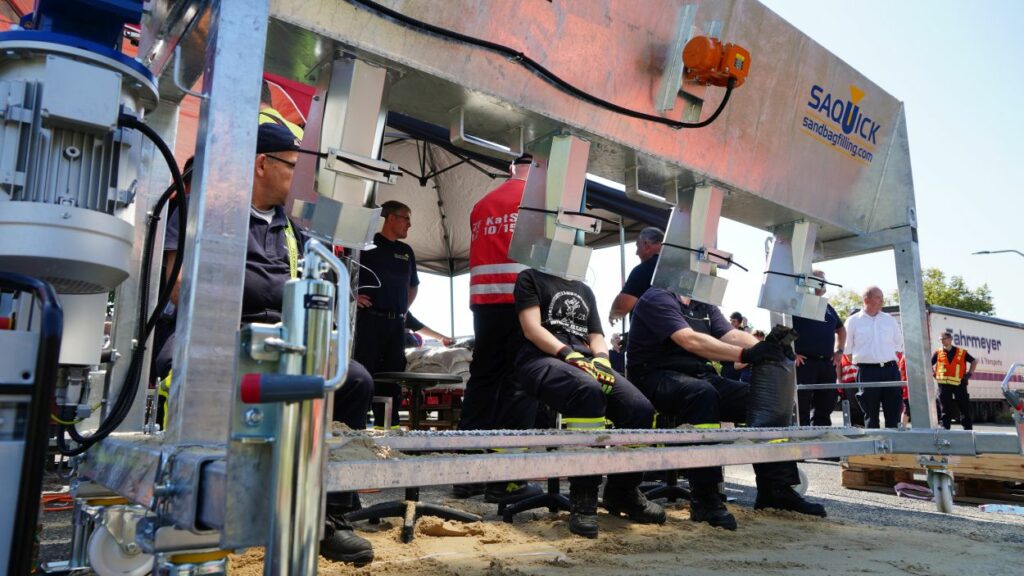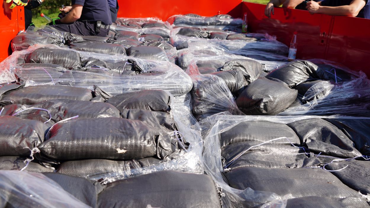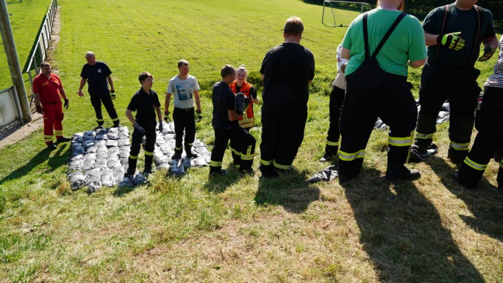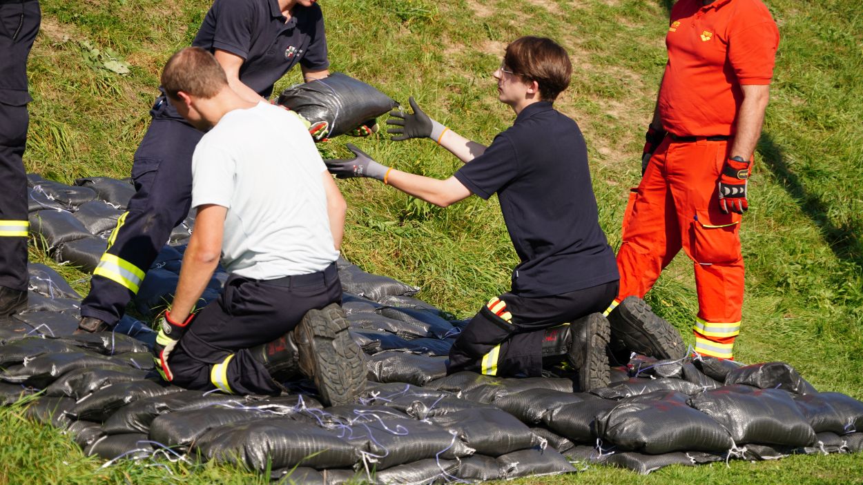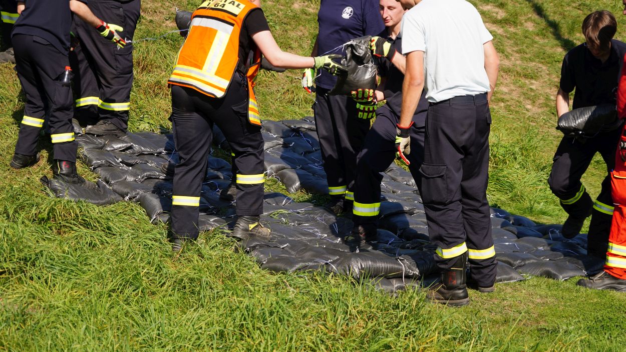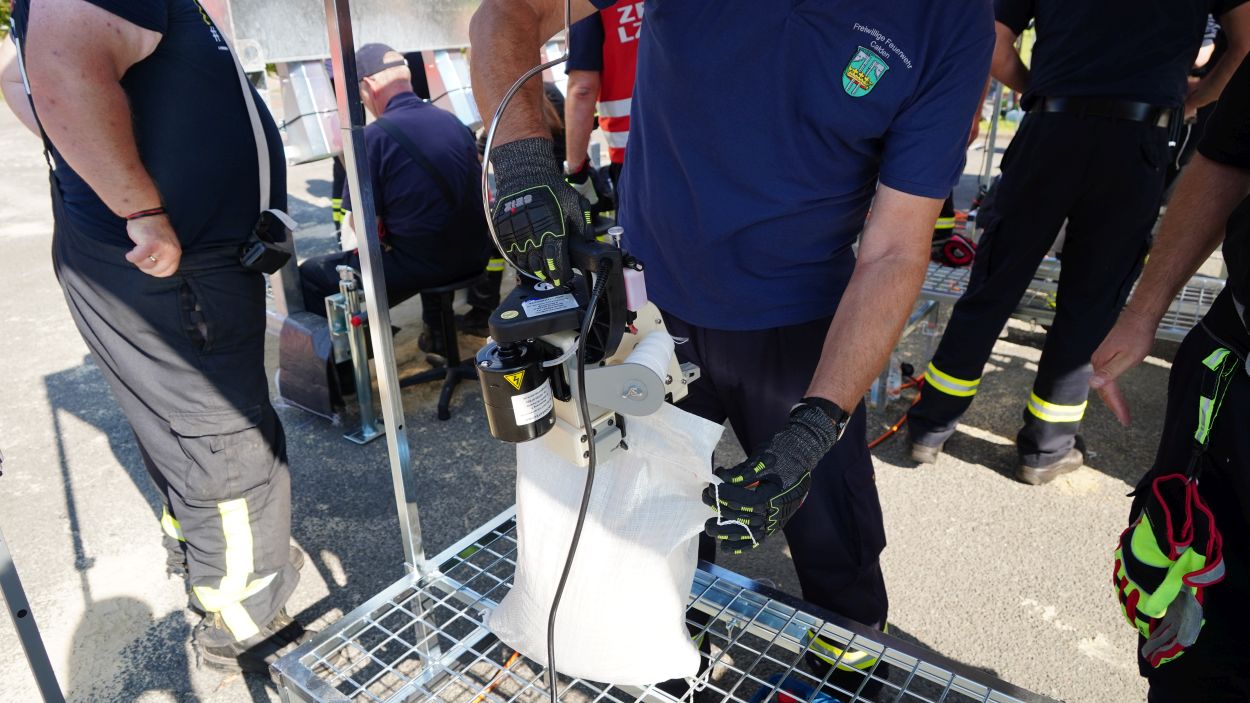 In der Übung am Samstag wurden 1.500 Sandsäcke befüllt. Diese konnten zum größten Teil wieder für den Notfall eingelagert werden. Sandsäcke, die im Real-Einsatz waren, müssen als Sondermüll entsorgt werden, da sie unter anderem mit Öl kontaminiert sein könnten.