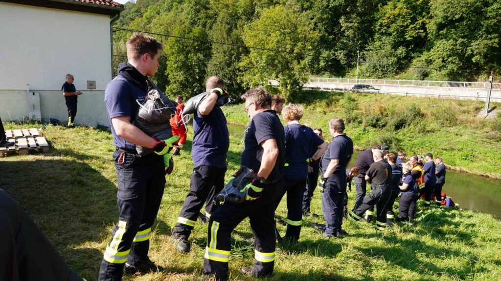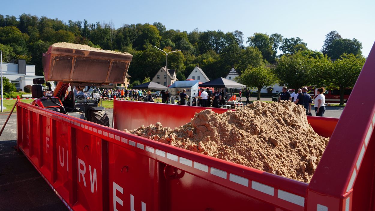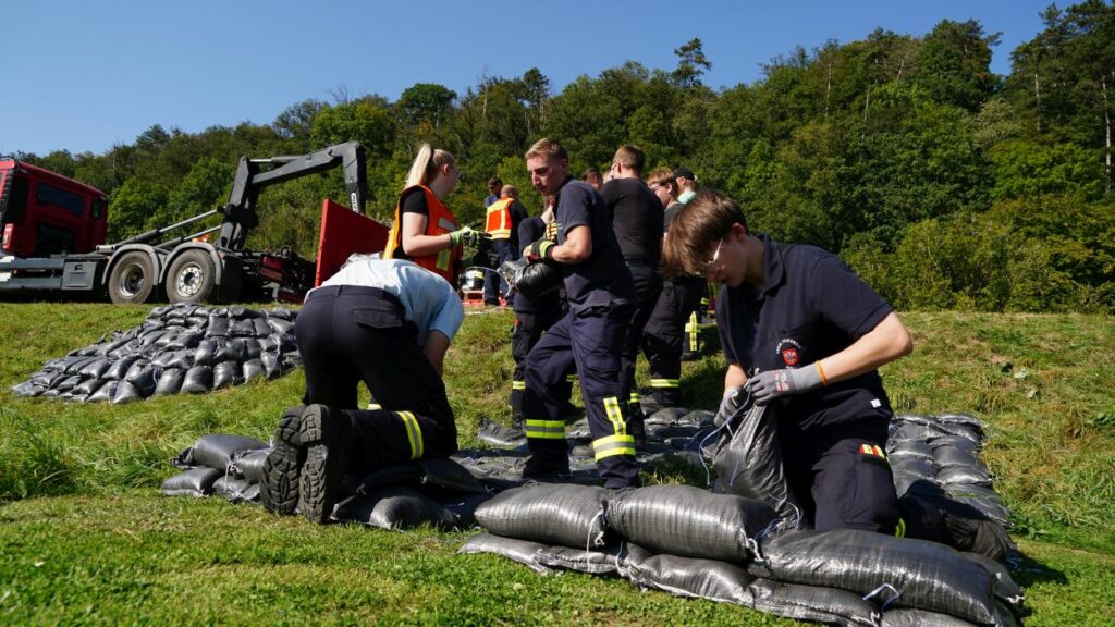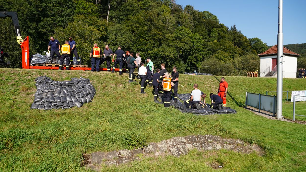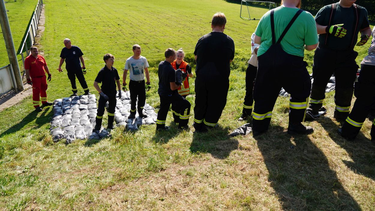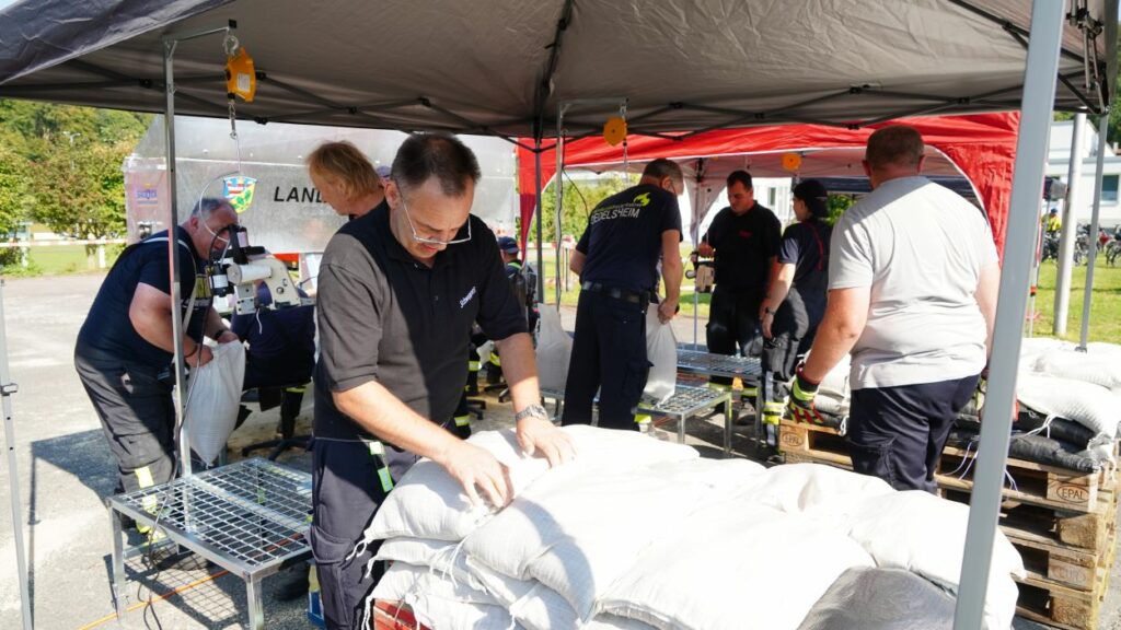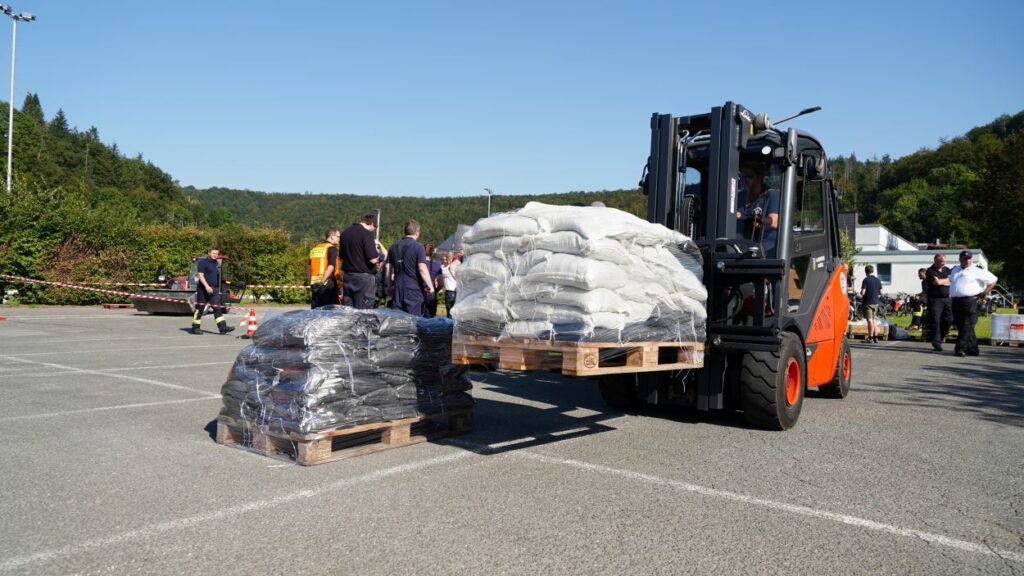 In der Übung am Samstag wurden 1.500 Sandsäcke befüllt. Diese konnten zum größten Teil wieder für den Notfall eingelagert werden. Sandsäcke, die im Real-Einsatz waren, müssen als Sondermüll entsorgt werden, da sie unter anderem mit Öl kontaminiert sein könnten.