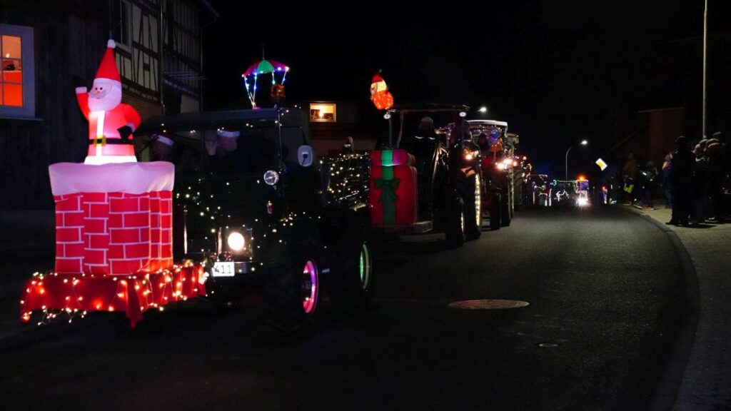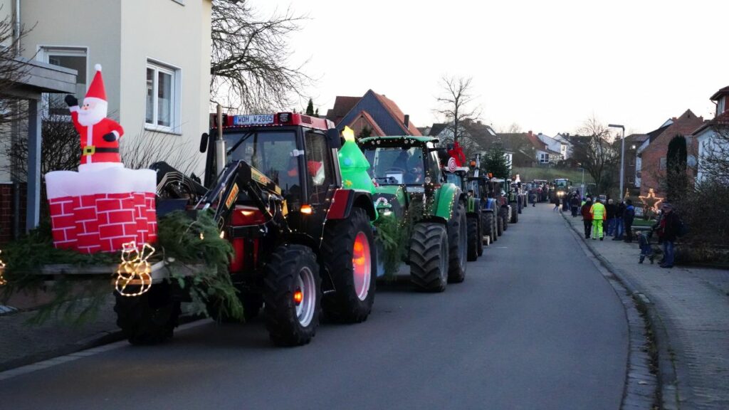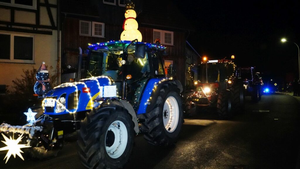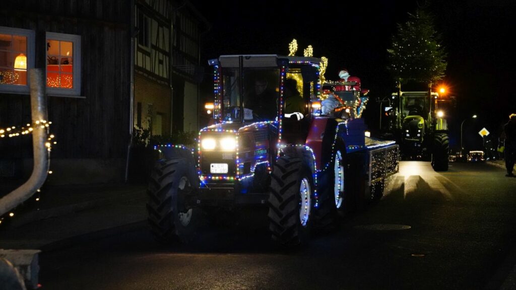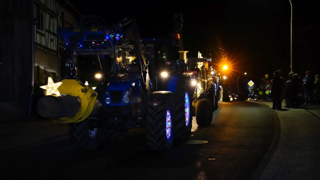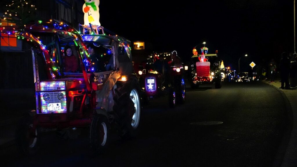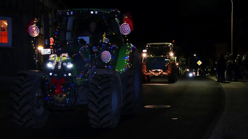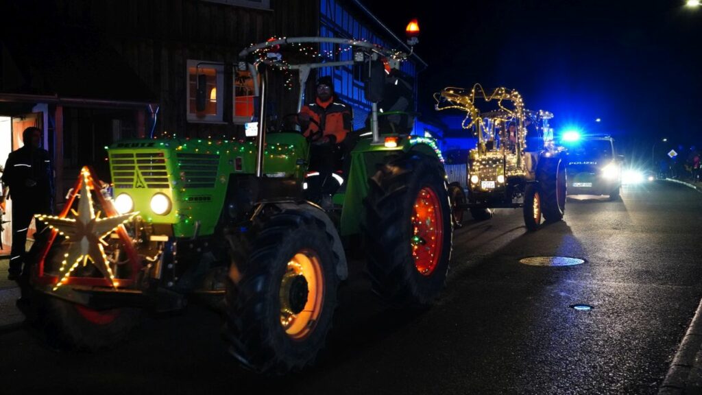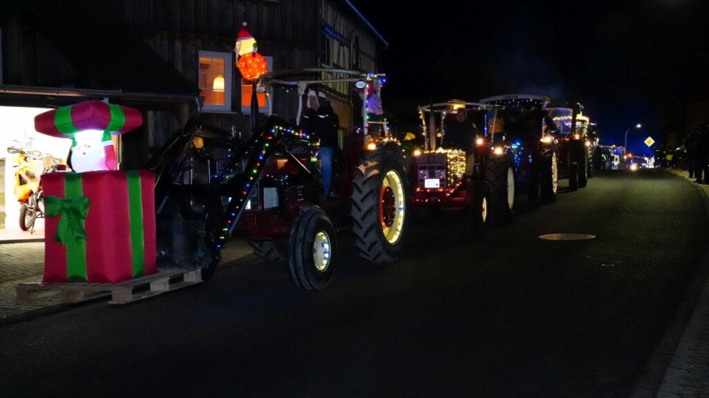 Bad Emstal – Die Landwirte in und um Balhorn haben am Samstag wieder ihre Traktoren weihnachtlich dekoriert. Unter dem Motto „Ein Funken Hoffnung – ohne Landwirte geht es nicht“ fuhren gegen 17 Uhr rund 30 geschmückte Traktoren durch die Straßen und erfreuten hunderte Zuschauer.