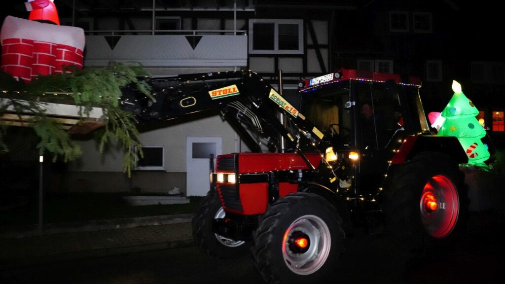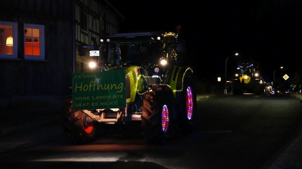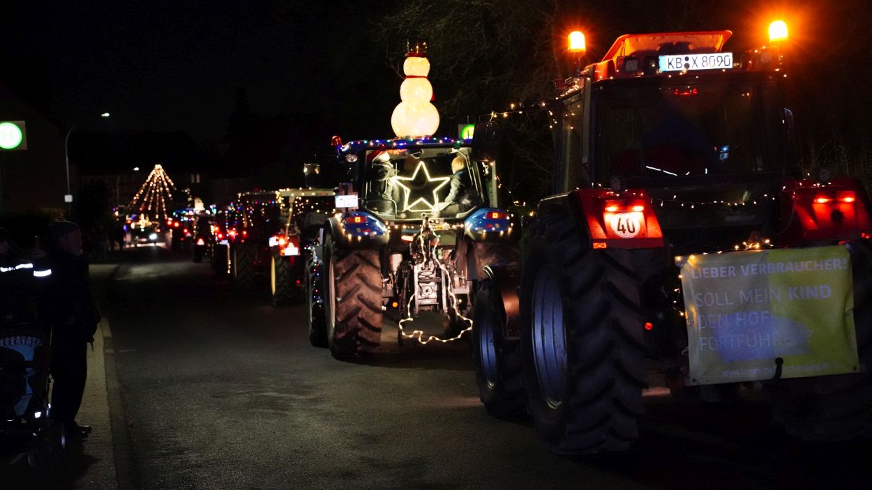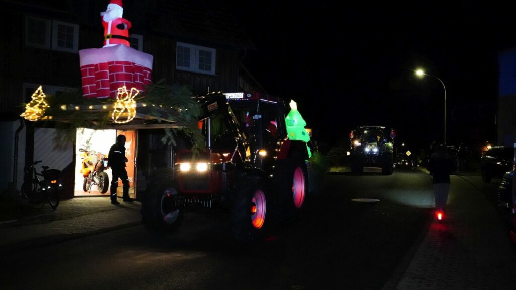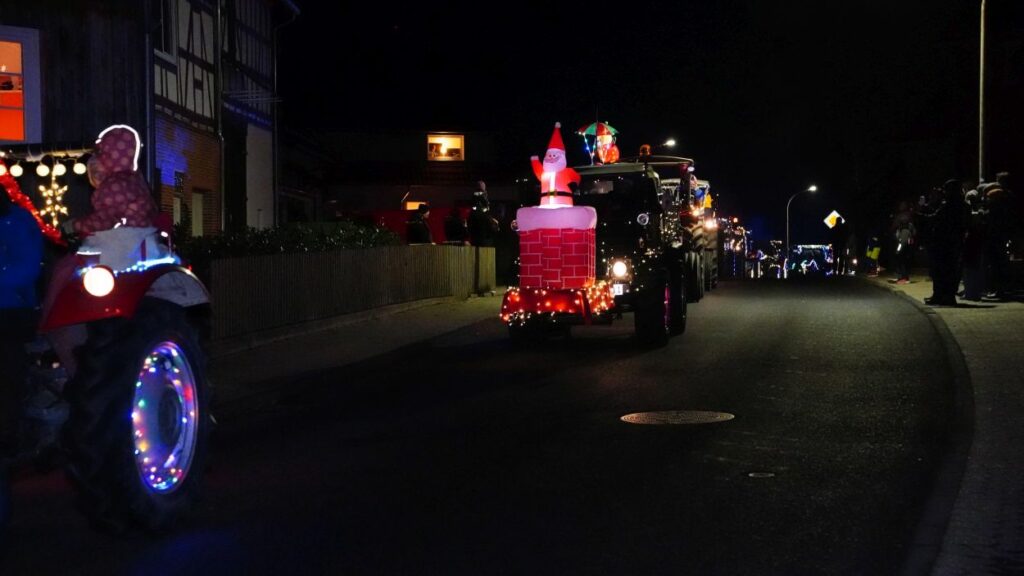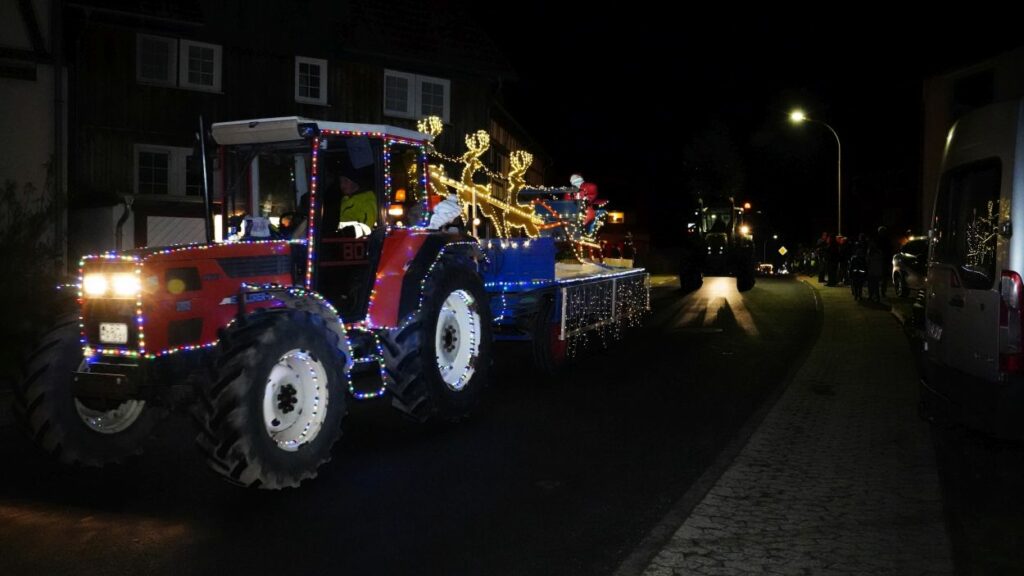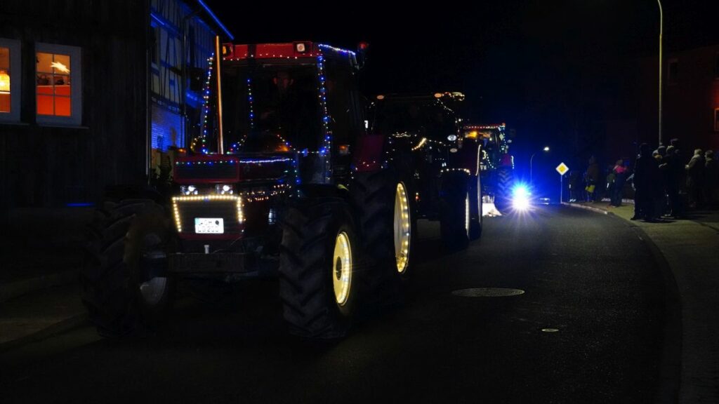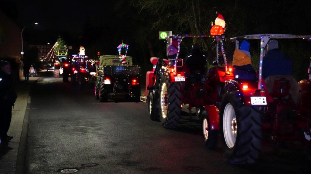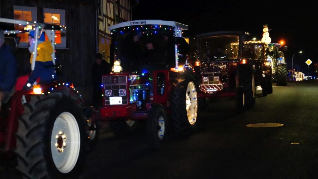 Bad Emstal – Die Landwirte in und um Balhorn haben am Samstag wieder ihre Traktoren weihnachtlich dekoriert. Unter dem Motto „Ein Funken Hoffnung – ohne Landwirte geht es nicht“ fuhren gegen 17 Uhr rund 30 geschmückte Traktoren durch die Straßen und erfreuten hunderte Zuschauer.