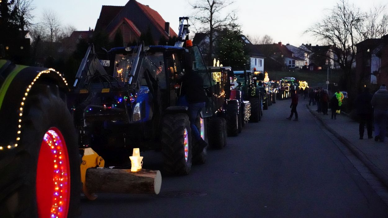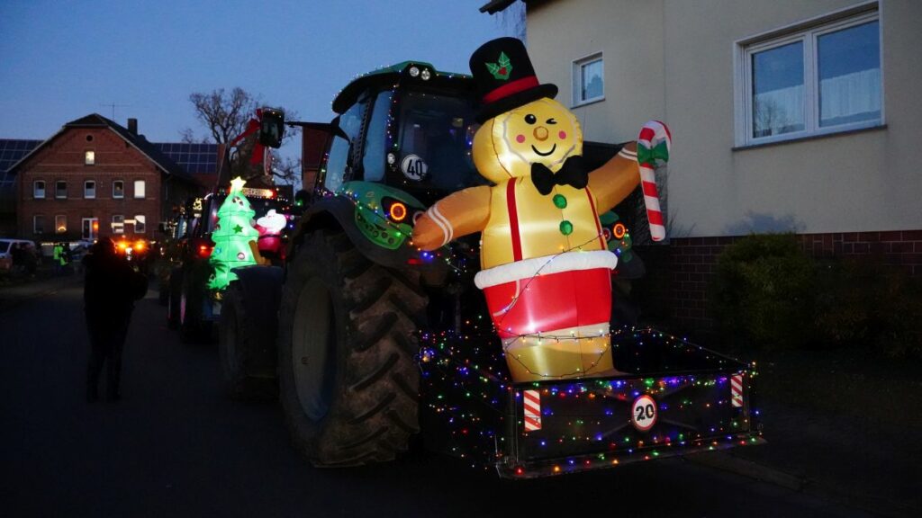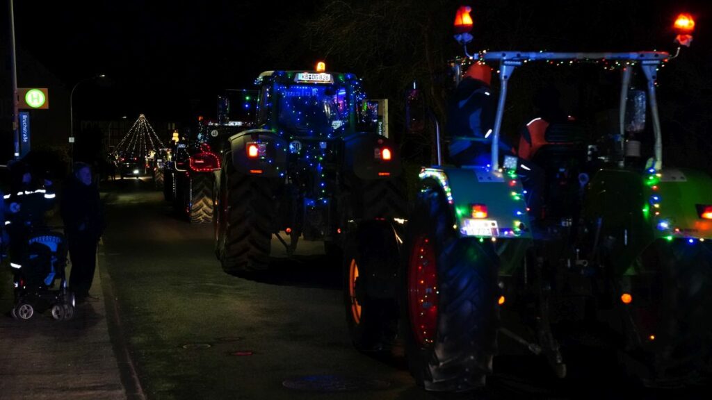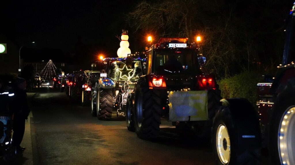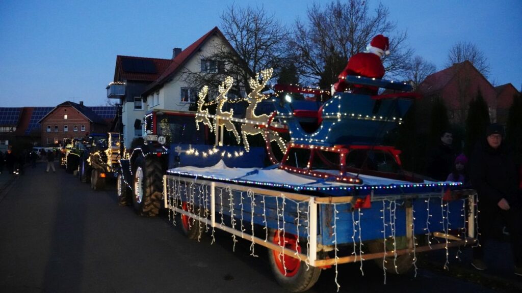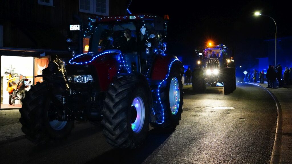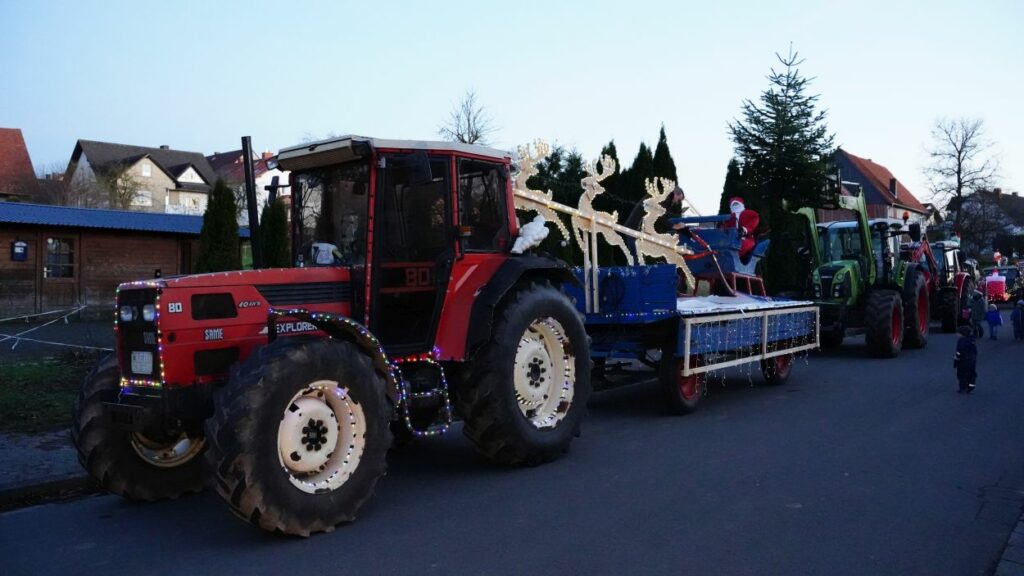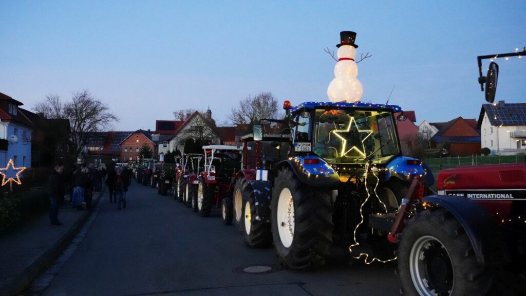 Bad Emstal – Die Landwirte in und um Balhorn haben am Samstag wieder ihre Traktoren weihnachtlich dekoriert. Unter dem Motto „Ein Funken Hoffnung – ohne Landwirte geht es nicht“ fuhren gegen 17 Uhr rund 30 geschmückte Traktoren durch die Straßen und erfreuten hunderte Zuschauer.
