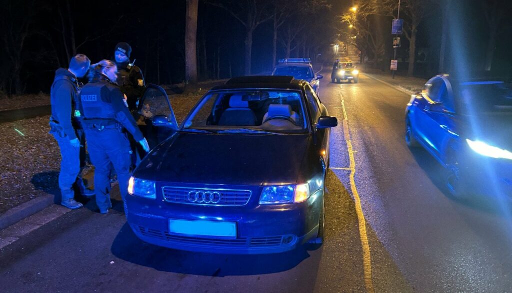Kassel – Am Donnerstagabend fiel Polizeibeamten auf der Heinrich-Schütz-Allee ein Audi A3 mit gestohlenen Kennzeichen auf. Bei dem Versuch, das Fahrzeug zu kontrollieren, versuchten die drei Insassen zu flüchten. Während ein Verdächtiger festgenommen wurde, entkamen zwei weitere in das nahegelegene Dönche-Gebiet. Die Kennzeichen am Fahrzeug wurden vor rund einer Woche im Stadtteil Waldau von einem VW gestohlen. Als zivile Beamte der EG-Tuner der Kasseler Polizei den Audi in Höhe des Westfriedhofs anhalten wollten, rannten die drei Insassen zu Fuß davon. Die Polizisten nahmen sofort die Verfolgung auf und konnten einen 16-jährigen Mann aus Kassel festnehmen. Während der Flucht warf er rund 80 Gramm Haschisch sowie eine Feinwaage, die in einem Blumenstrauß versteckt waren, weg. Die anderen beiden Männer rannten in die Dönche und konnten trotz umfangreicher Fahndungsmaßnahmen nicht mehr aufgegriffen werden. Das Fahrzeug wurde im Anschluss durchsucht und sichergestellt. Zudem fanden die Beamten bei dem Verdächtigen Bargeld in der typischen Stückelung für Drogenverkäufe. Nach den polizeilichen Maßnahmen wurde der Jugendliche wieder entlassen. Die Ermittlungen dauern an.