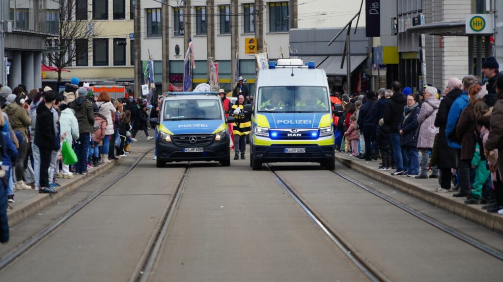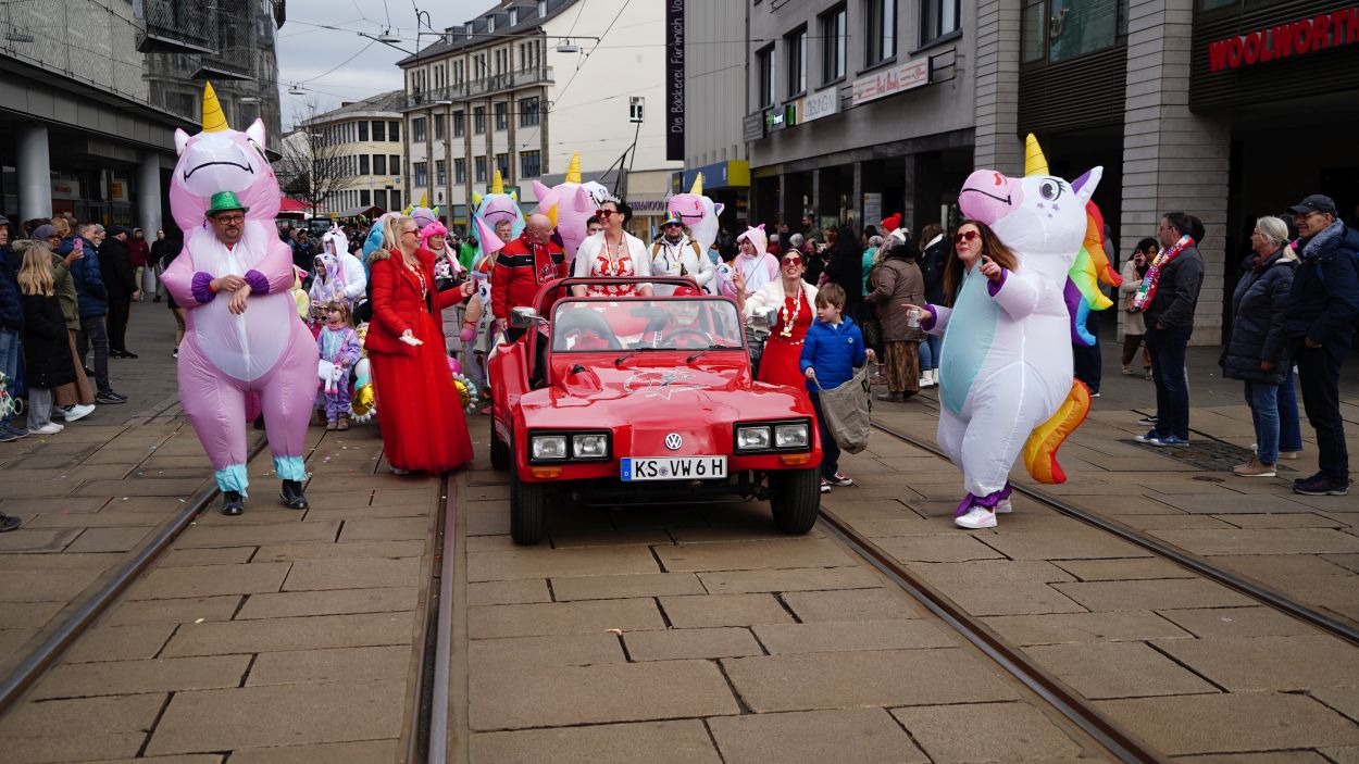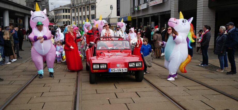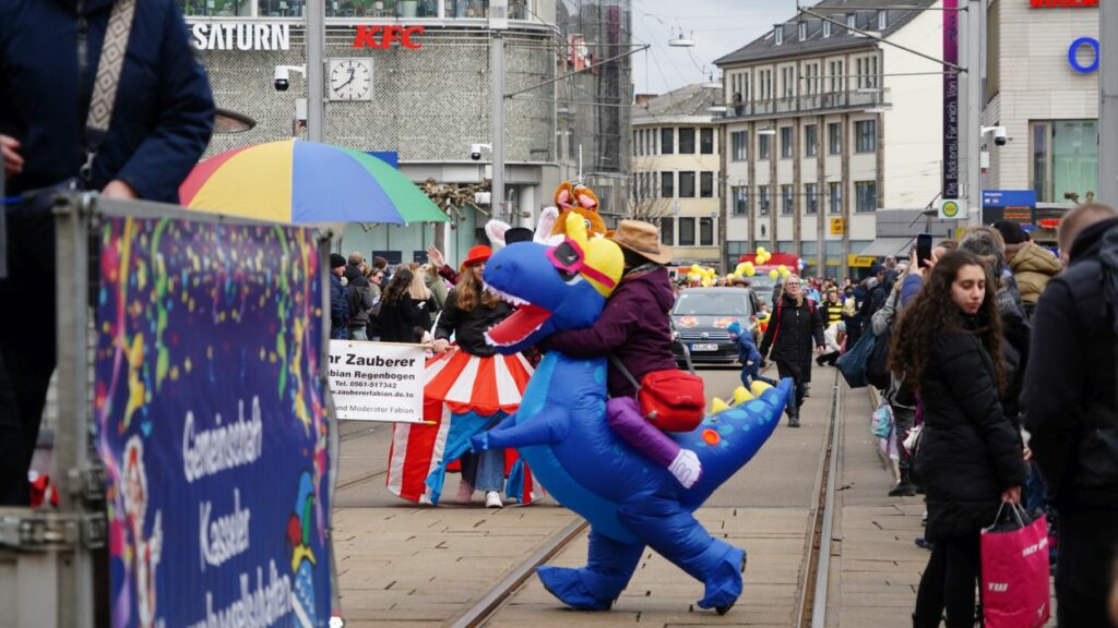 Kassel – Am Samstag zog der traditionelle Karnevalsumzug durch die Straßen von Kassel und begeisterte wieder Tausende von Zuschauern. Pünktlich um 12:11 Uhr begann der bunte Spektakelzug am Friedrichsplatz und setzte sich durch die Innenstadt in Bewegung. Mit farbenfrohen Wagen, fantasievollen Kostümen und fröhlichen Teilnehmern aus verschiedenen Karnevalsvereinen erweckte der Umzug eine ausgelassene, fröhliche Stimmung. Insgesamt waren mehr als 500 Aktive beteiligt, die in Fußgruppen, dekorierten Wagen oder mit anderen kreativen Fahrzeugen unterwegs waren. Die Umzugsroute führte durch die Oberste Gasse, den Königsplatz und die Königsstraße bis hin zum Rathaus. Überall am Wegesrand standen zahlreiche Menschen, die begeistert die Umzugsteilnehmer anfeuerten und die närrische Stimmung genossen.