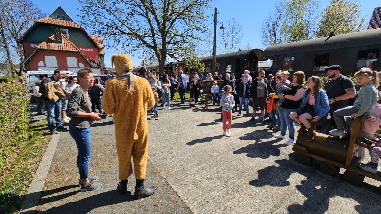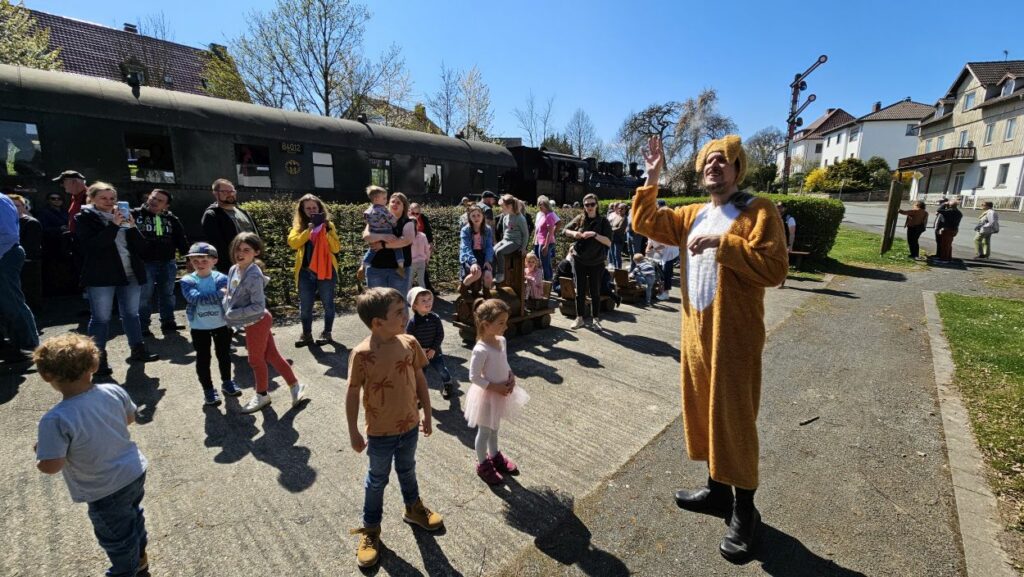 Ein unerwarteter und zugleich geheimer Gast sorgte unterwegs für große Aufregung: Der Osterhase höchstpersönlich stieg bei einem Zwischenhalt unbemerkt zu – zur Überraschung vieler kleiner Mitreisender. Als der Zug gegen 14:00 Uhr sein Ziel in Naumburg erreichte, stieg der Osterhase gemeinsam mit den Kindern aus, um mit ihnen auf große Ostereiersuche zu gehen. Die Aktion war ein voller Erfolg und zauberte nicht nur den Jüngsten ein Lächeln ins Gesicht. Eltern, Großeltern und Eisenbahnfans gleichermaßen genossen die nostalgische Fahrt in den historischen Waggons des Hessencourrier, die an vergangene Zeiten erinnerte. Die Osterfahrt ist ein fester Bestandteil im Kalender des Vereins, der mit viel Engagement und ehrenamtlicher Arbeit den Museumszug betreibt. Auch in diesem Jahr zeigte sich: Die Kombination aus historischer Eisenbahnromantik und fröhlicher Osterüberraschung ist ein Erlebnis für die ganze Familie.