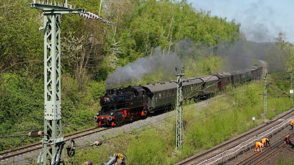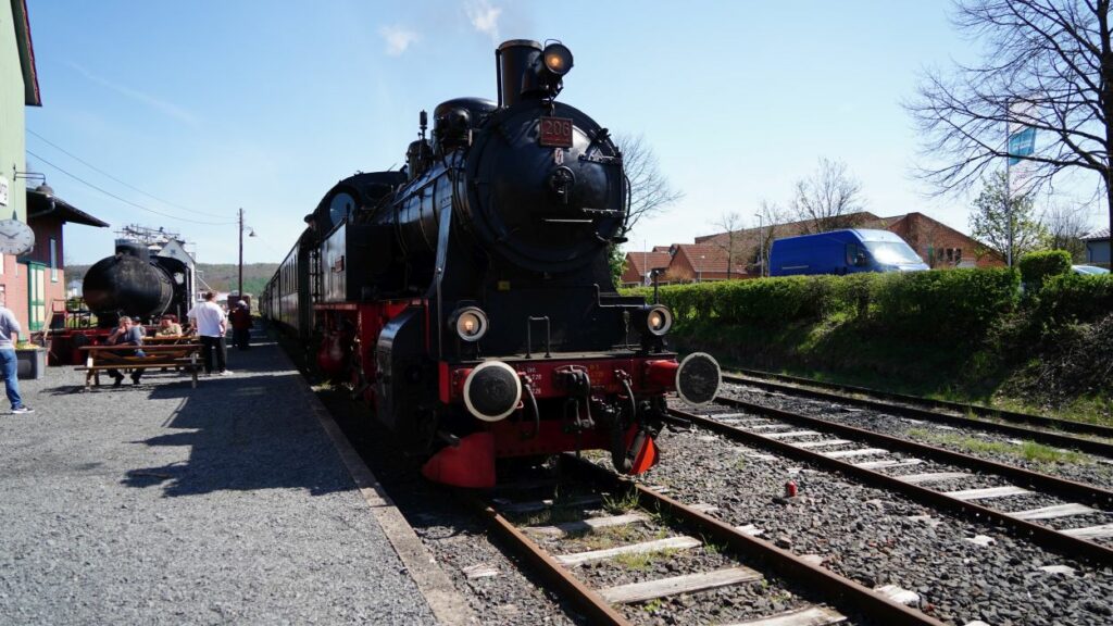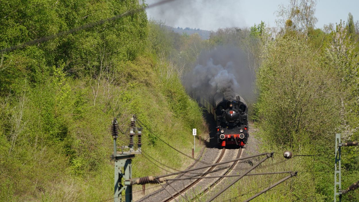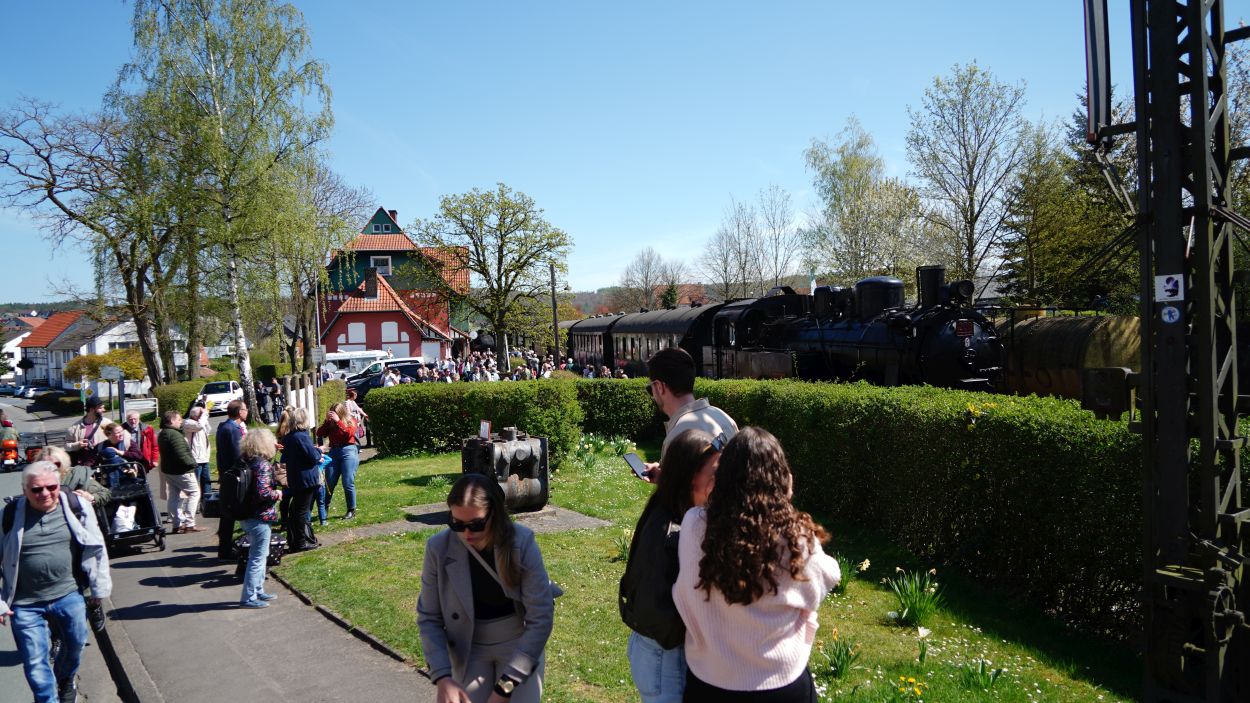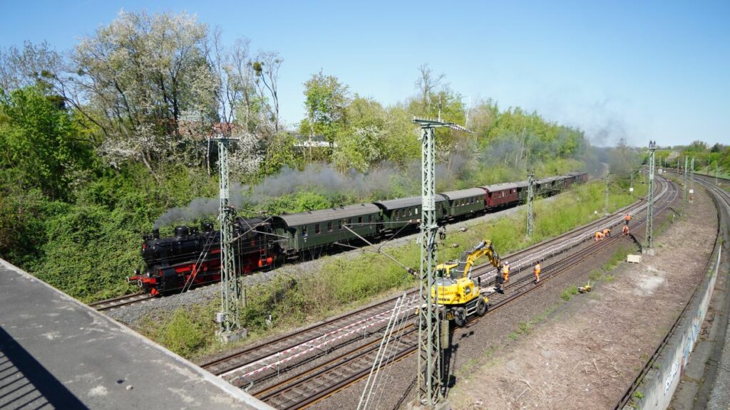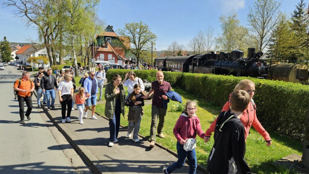 Kassel/Naumburg – Bei strahlendem Frühlingswetter machte sich am Ostersonntag der historische Hessencourrier auf eine ganz besondere Fahrt von Kassel nach Naumburg. Pünktlich um 12:10 Uhr verließ der liebevoll restaurierte Museumszug den Bahnhof in Kassel und nahm 345 gut gelaunte Fahrgäste mit auf die rund zweistündige Reise durch das blühende nordhessische Hügelland nach Naumburg – darunter 81 Kinder, die sich auf ein besonderes Osterabenteuer freuen durften.