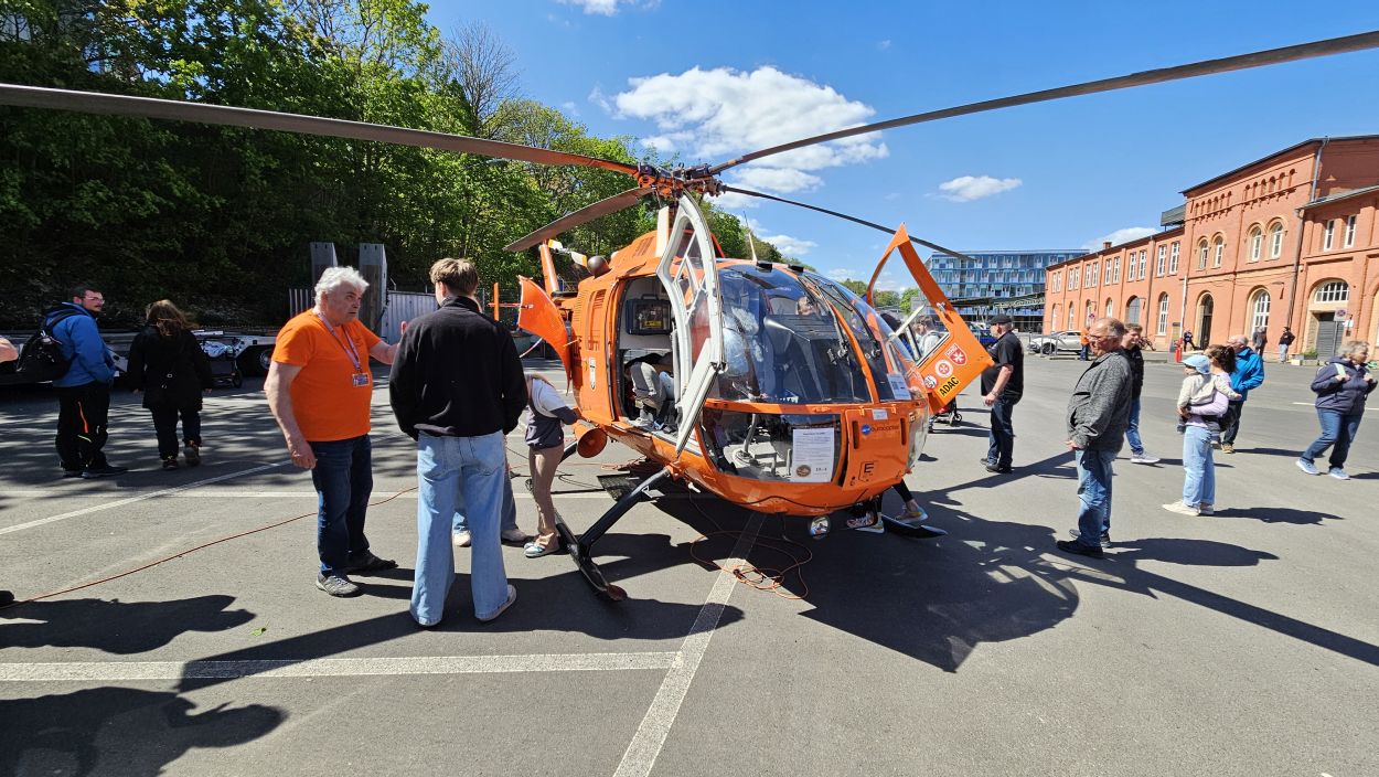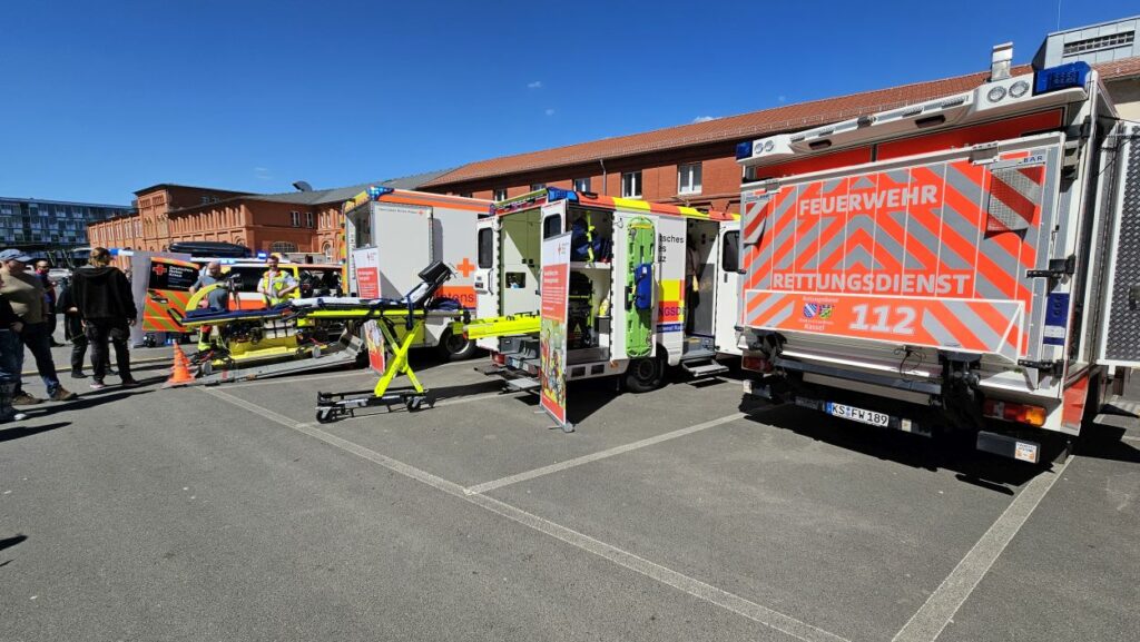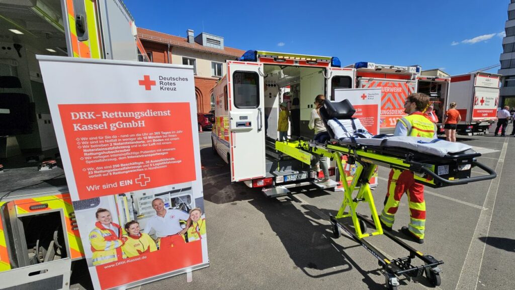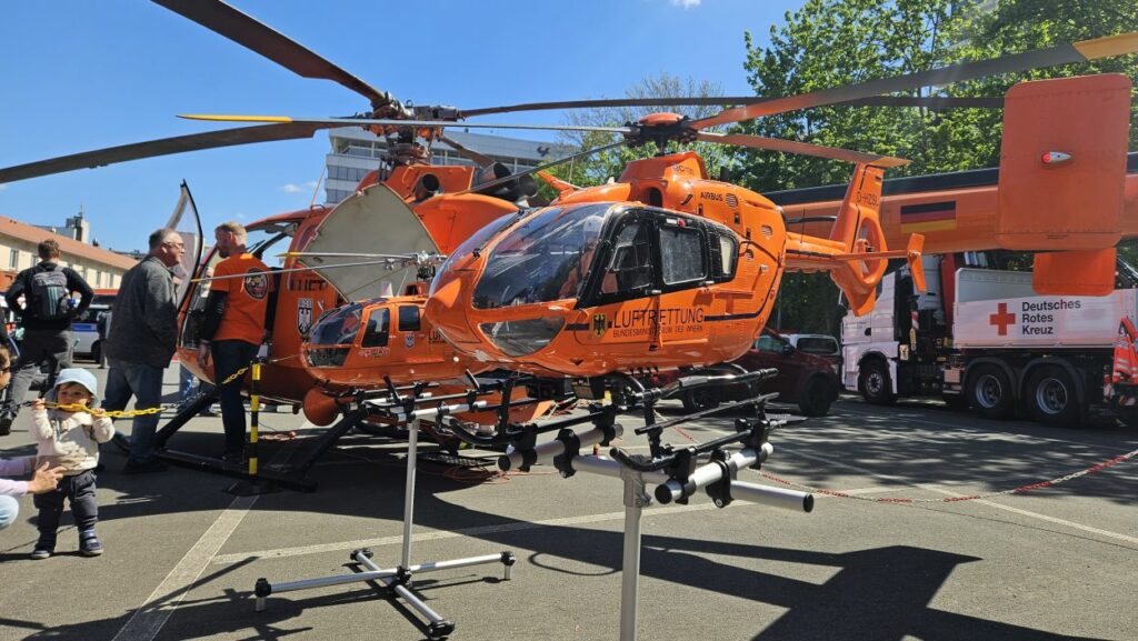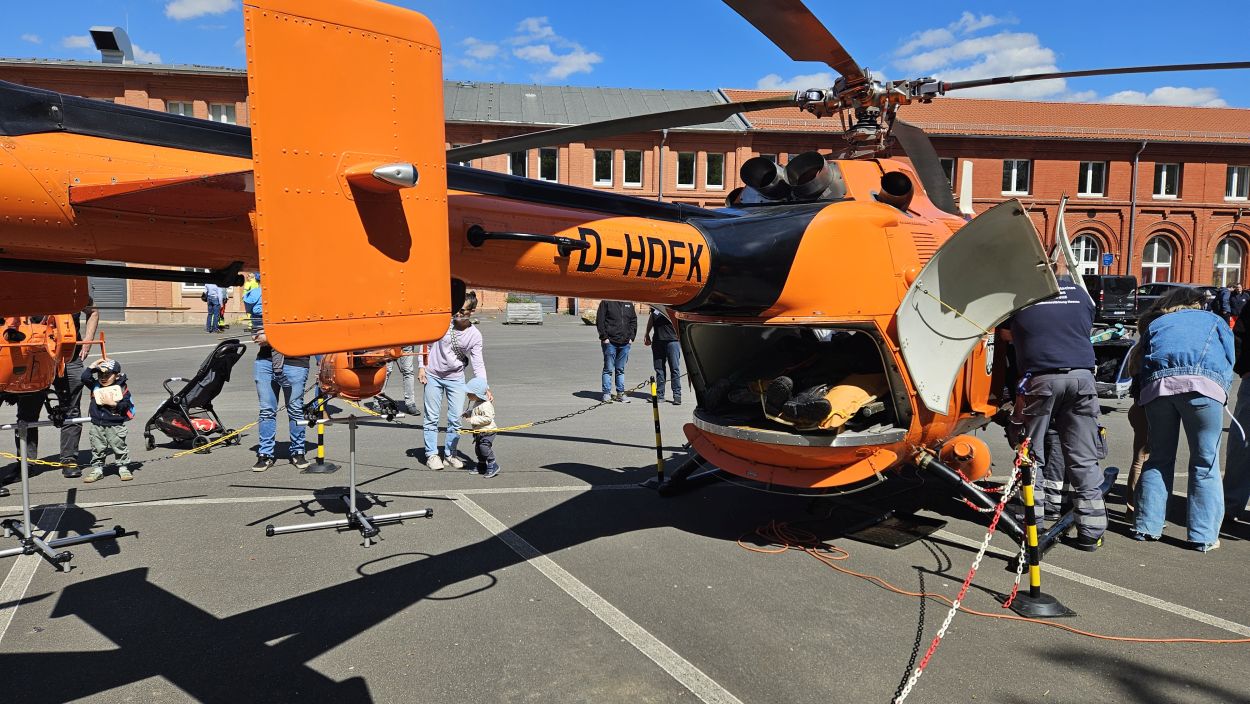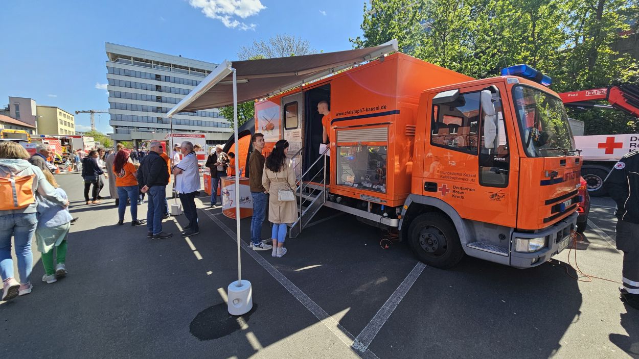 Seit 1974 war Christoph 7 über 55.000 Mal für Menschen in Nordhessen im Einsatz. Viele dieser Rettungsflüge entschieden über Leben und Tod. Auf dem Parkplatz am Südflügel des Kasseler Kulturbahnhofs präsentierten Feuerwehr, DRK, ASB, JUH und weitere Organisationen moderne und historische Rettungsmittel, darunter der legendäre BO 105, das erste Modell von Christoph 7. Neben Notarzt- und Intensivfahrzeugen wurden auch Spezialfahrzeuge wie ein Schwerlast-Rettungswagen und ein geländegängiger Krankenwagen des Zivilschutzes gezeigt. Für große und kleine Besucher gab es ein vielfältiges Programm: Ein Flugsimulator des Fördervereins Christoph 7 lud zum Probesitzen ein, während das Jugendrotkreuz mit einem Drohnenspiel Such- und Rettungsaufgaben simulierte. Kulinarisch wurde die Feier mit Kartoffelsuppe aus der Feldküche des DRK abgerundet – wahlweise vegetarisch oder klassisch mit Wursteinlage. Bei Kaiserwetter konnten die zahlreichen Besucher sich über den Zivilschutz informieren.